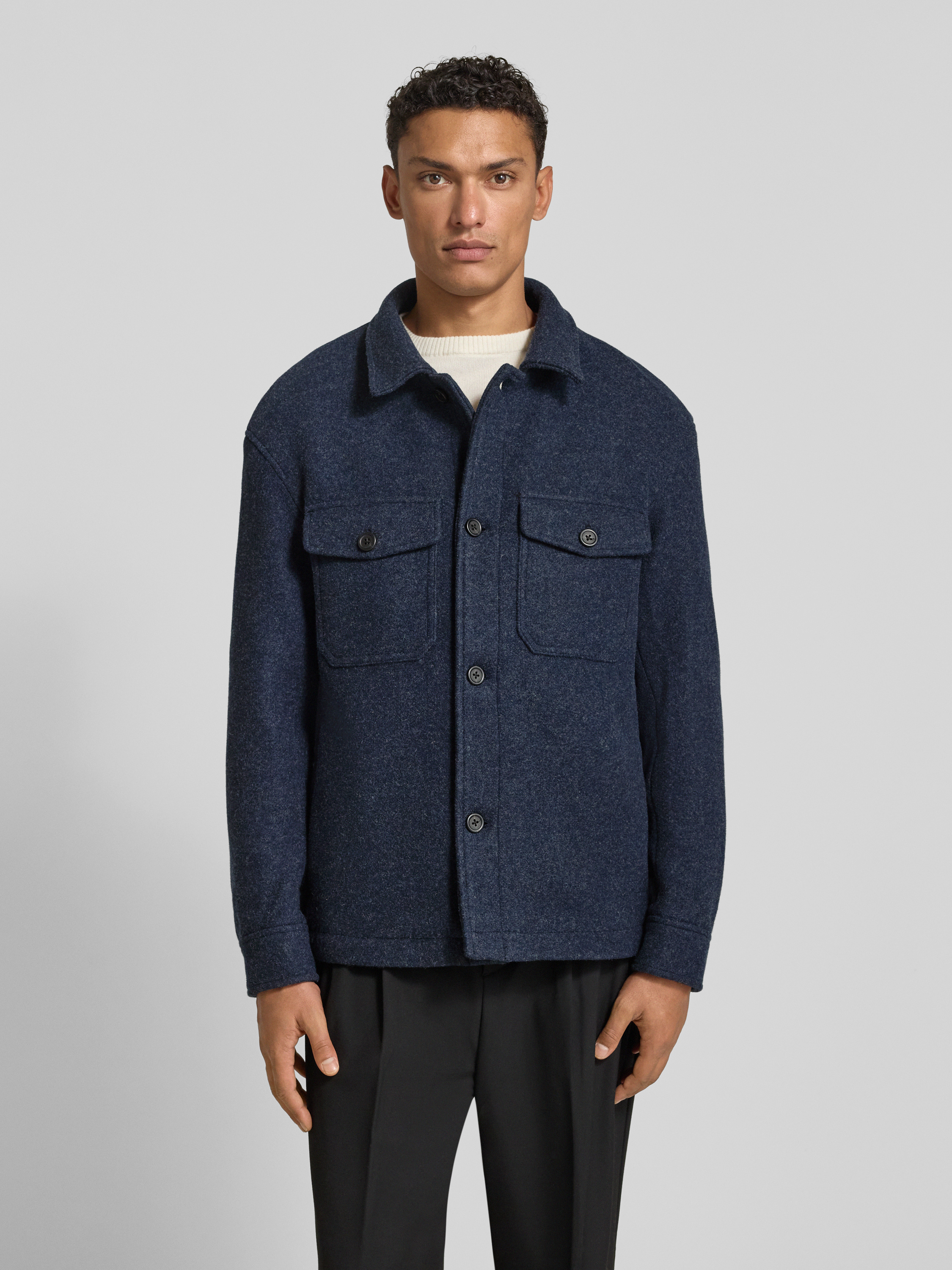 Regular fit jack met wol, model 'MITCH' in marineblauw gemêleerd