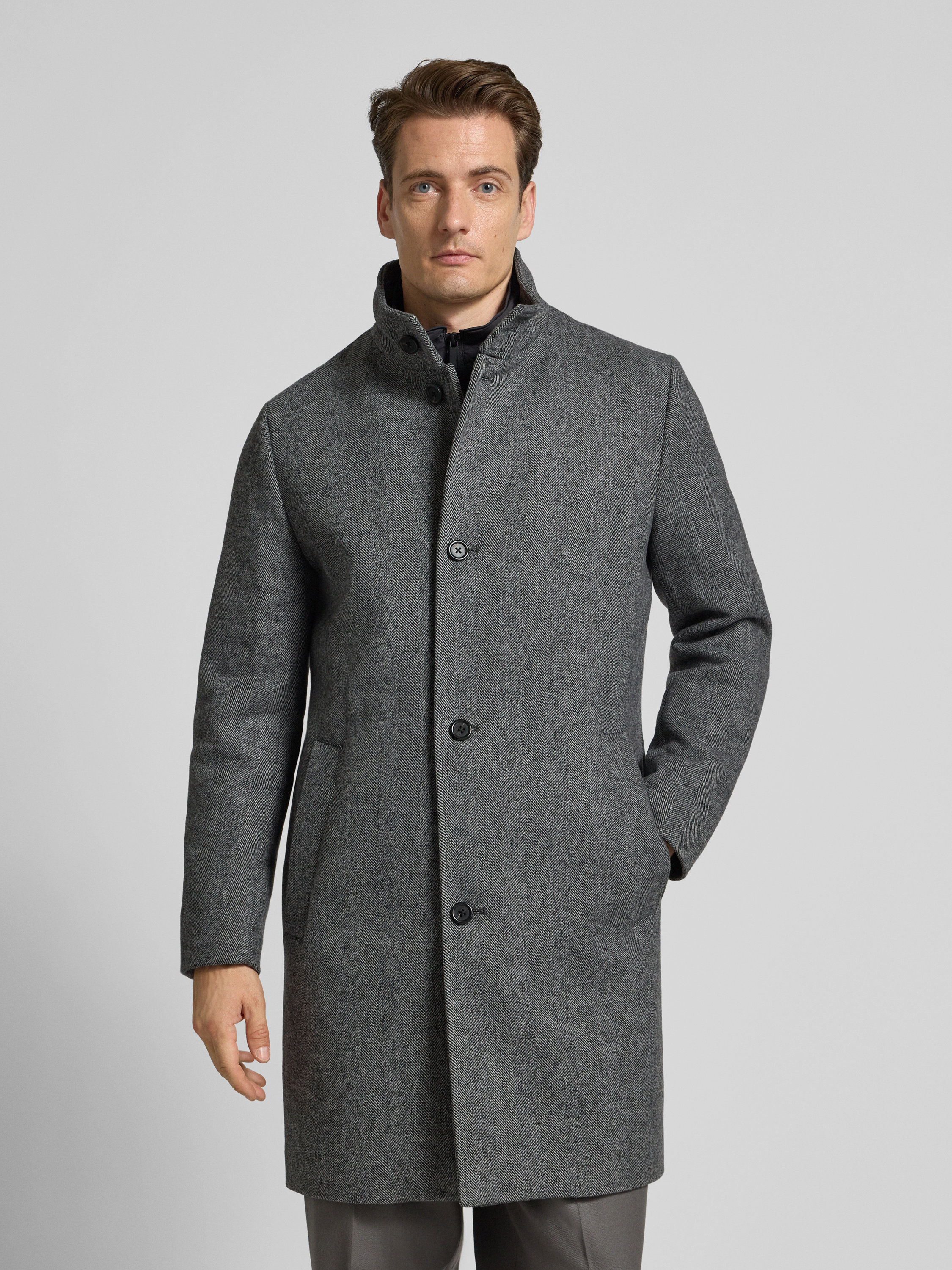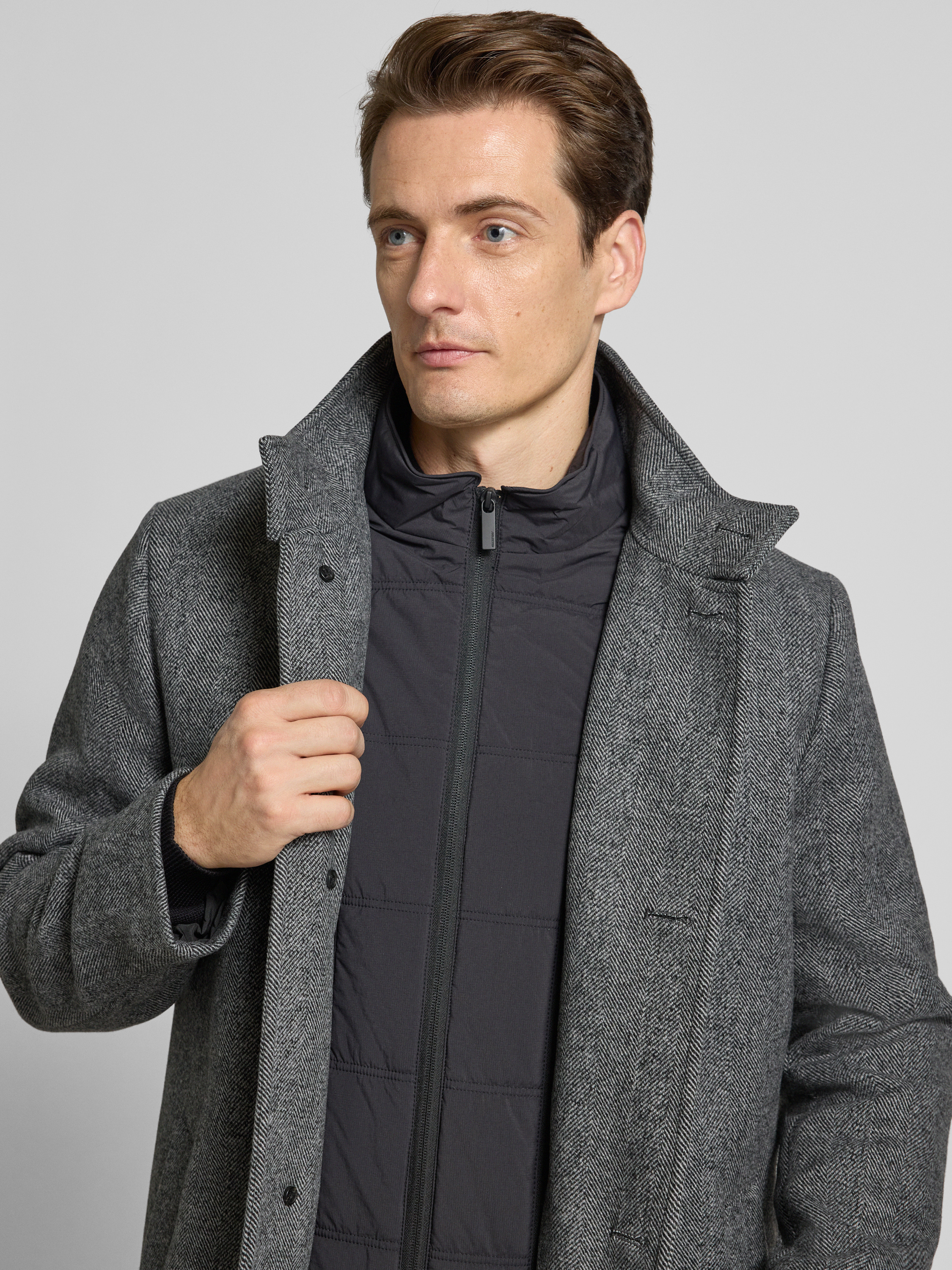 Regular fit lange wollen jas met gewatteerde inzet, model 'RAINAR' in antraciet