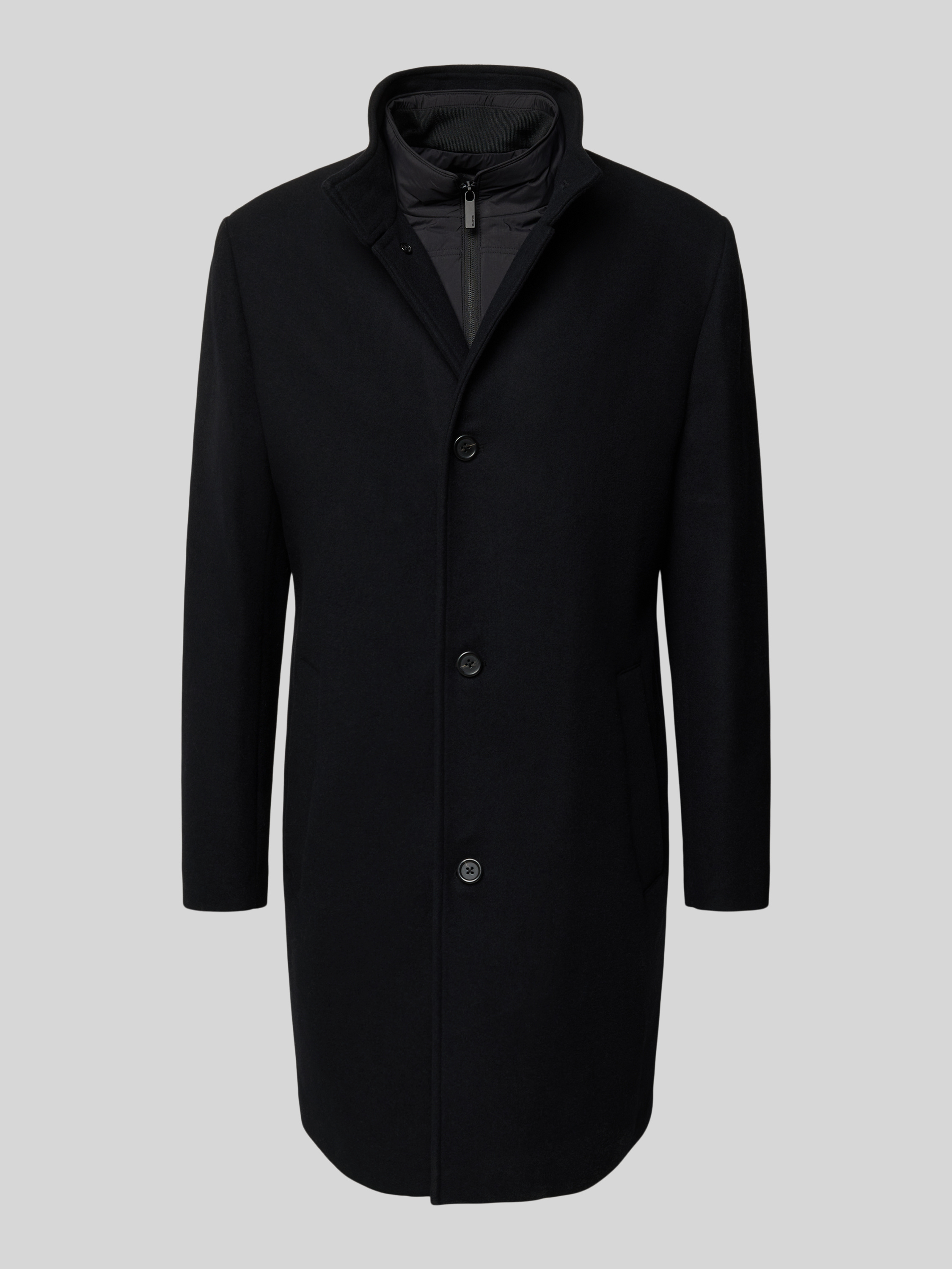 Regular fit lange wollen jas met gewatteerde inzet, model 'RAINAR' in zwart