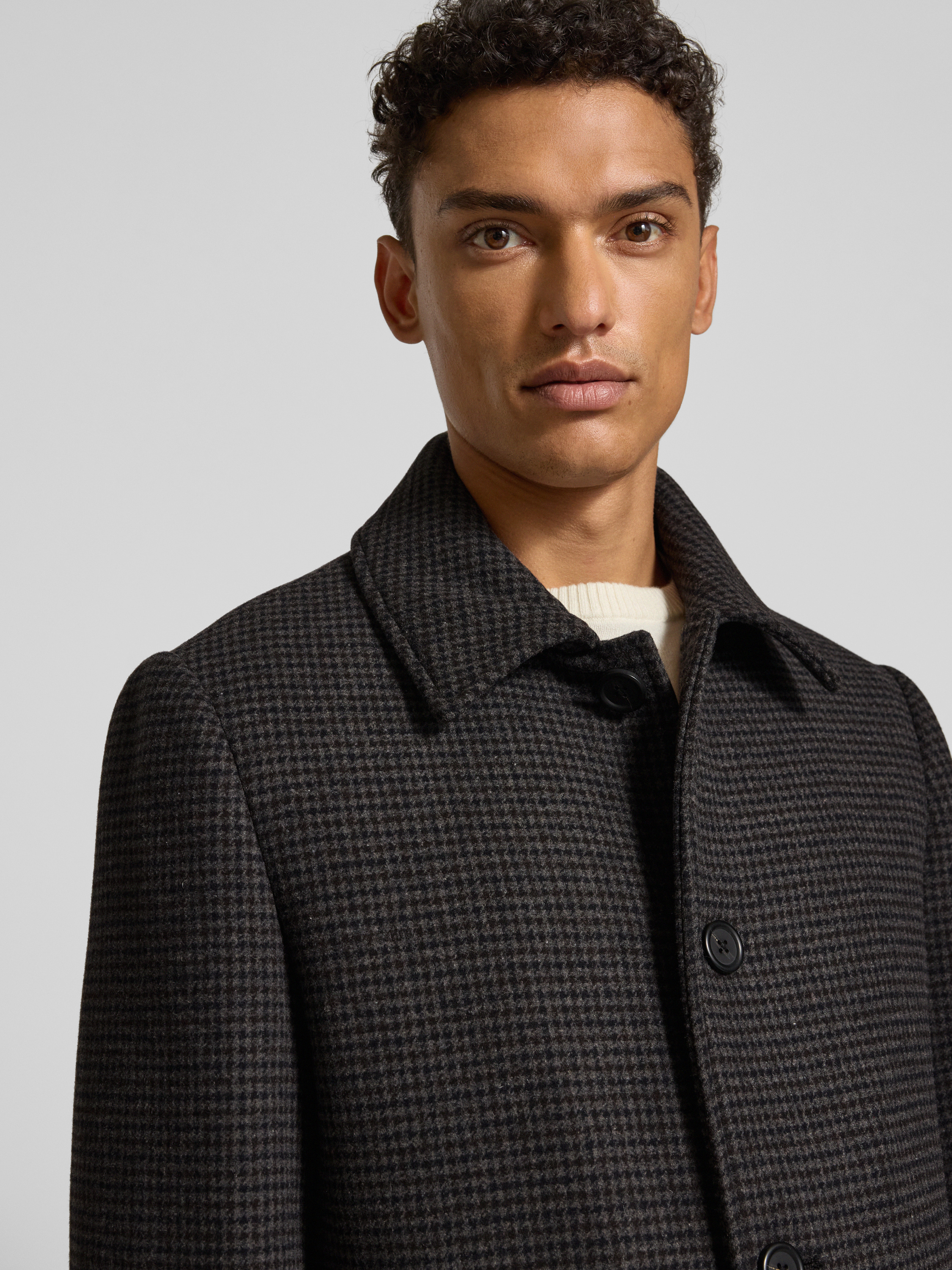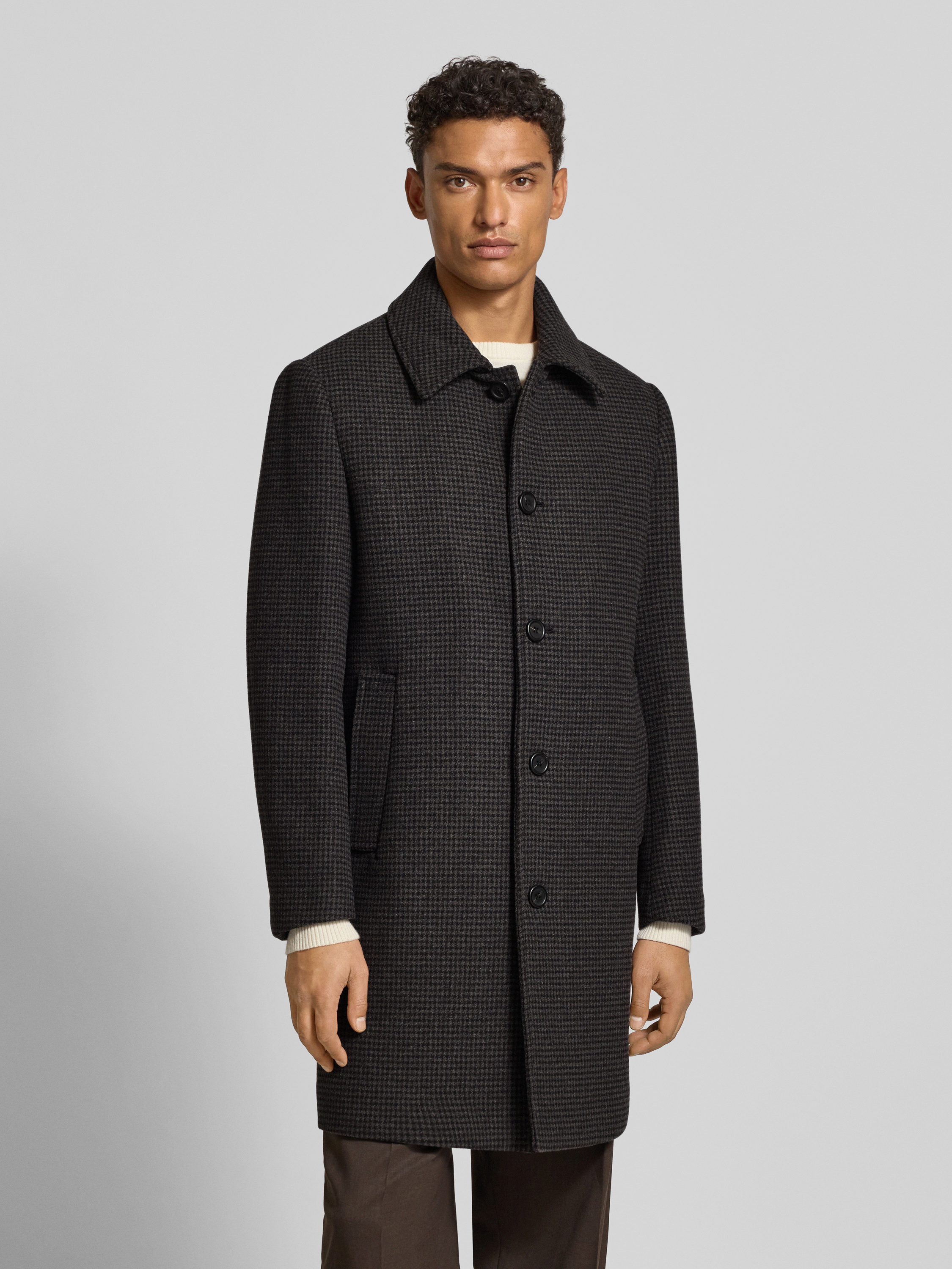Regular fit lange wollen jas met platte kraag, model 'ARCHIVE' in donkergrijs