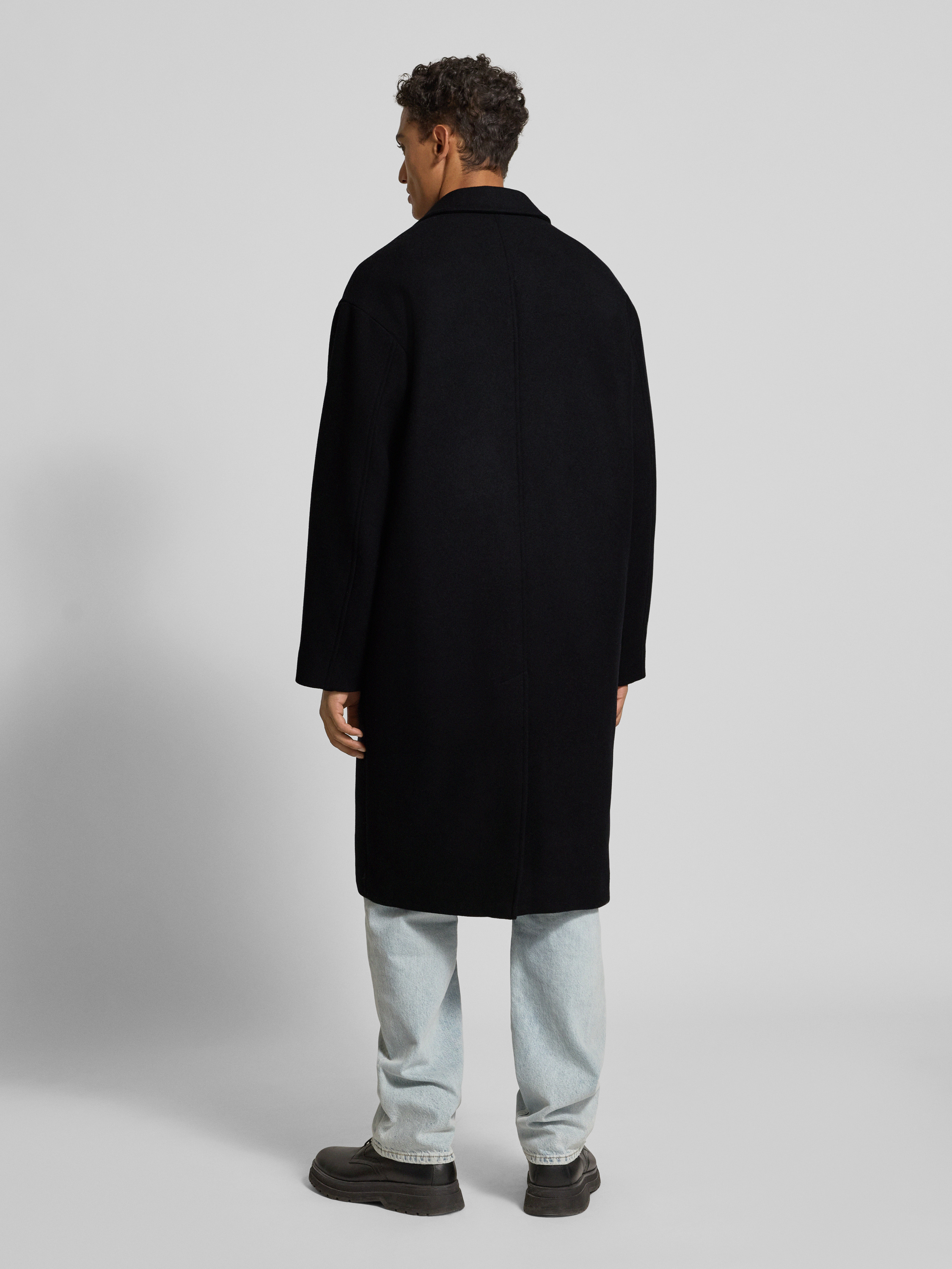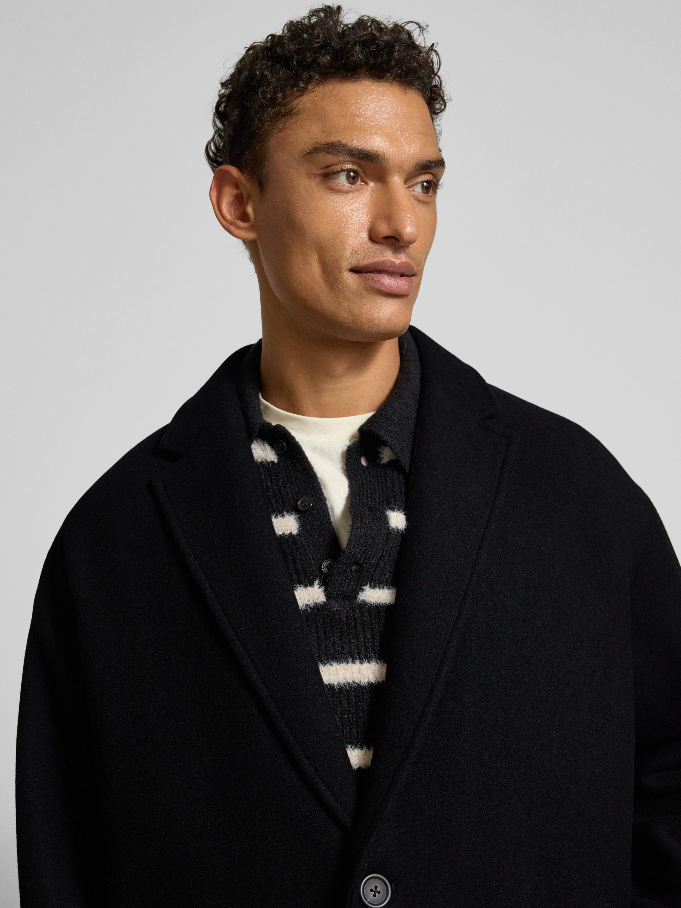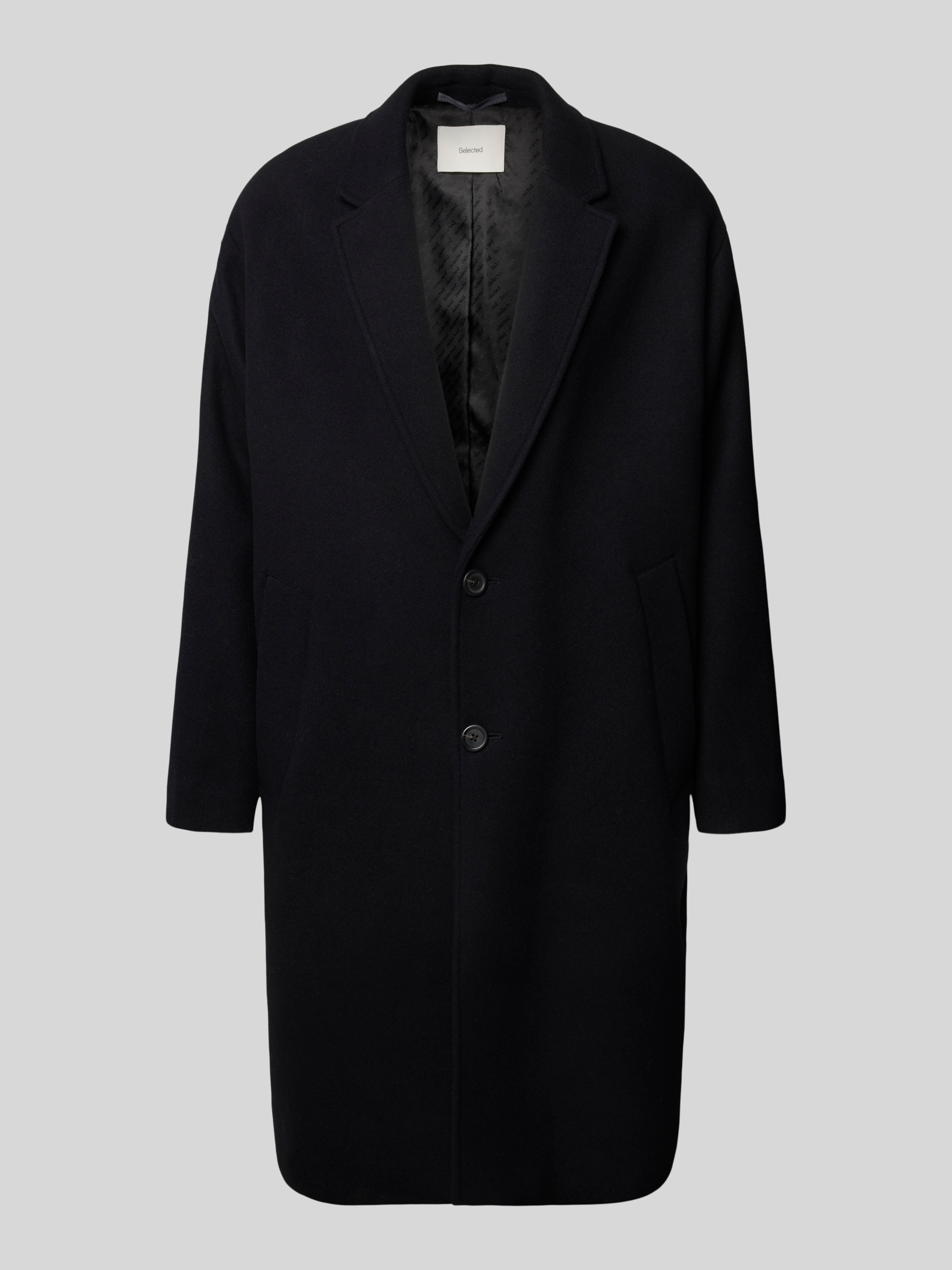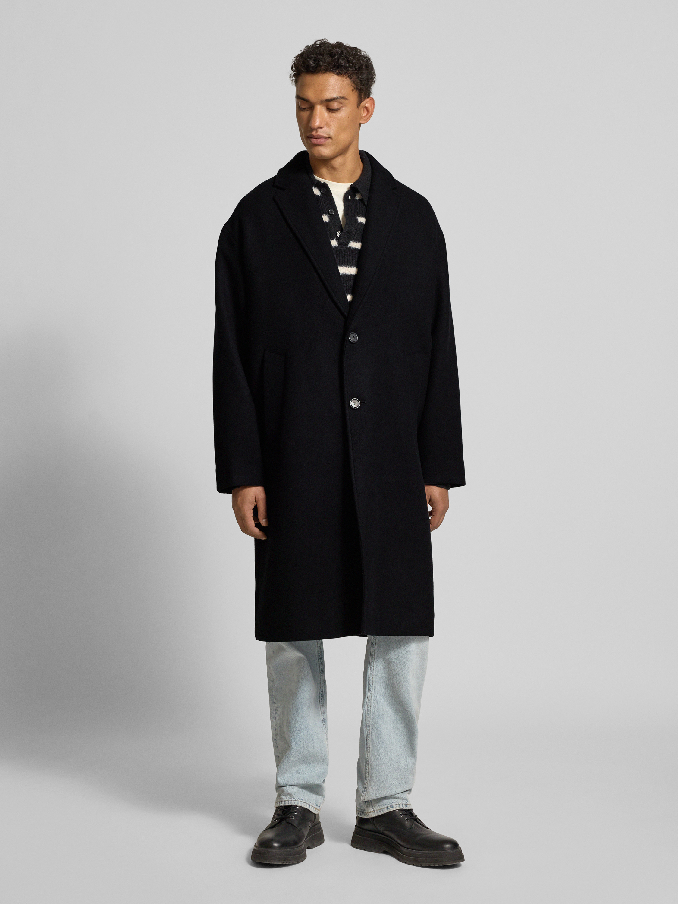 Regular fit lange wollen jas met reverskraag, model 'MILO' in zwart