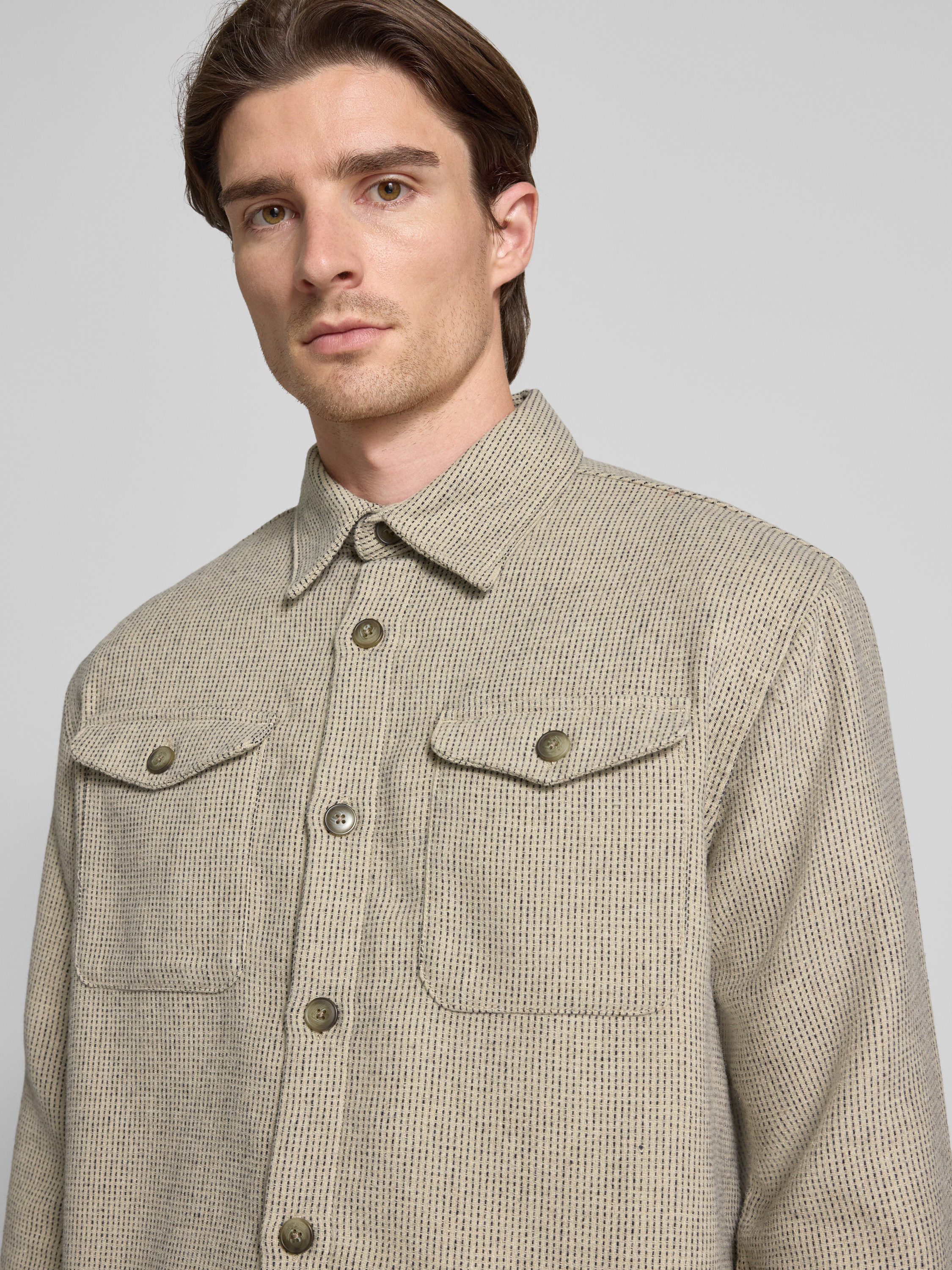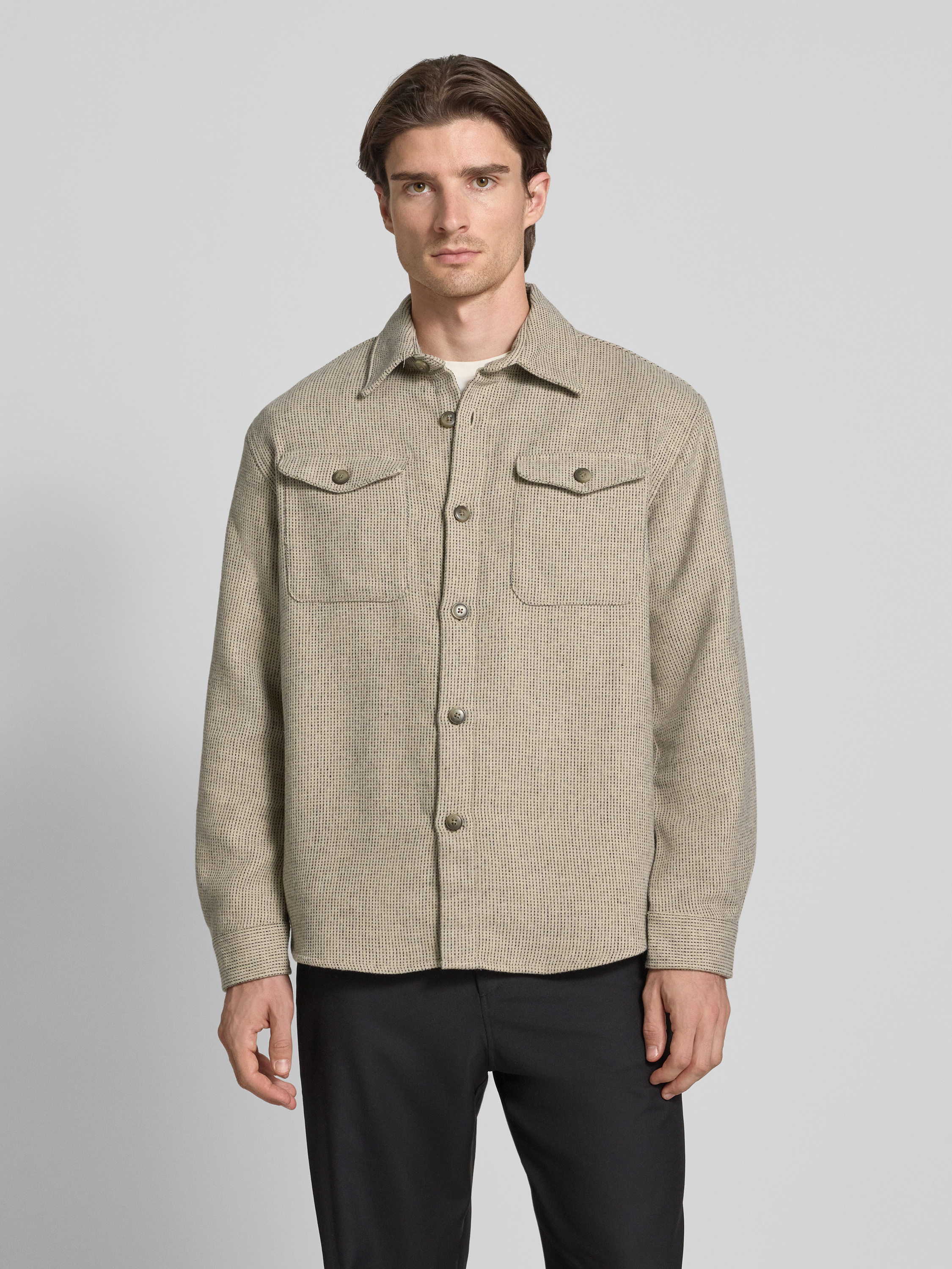 Regular fit overhemdjack met wol, model 'LOSEPABLO' in zand