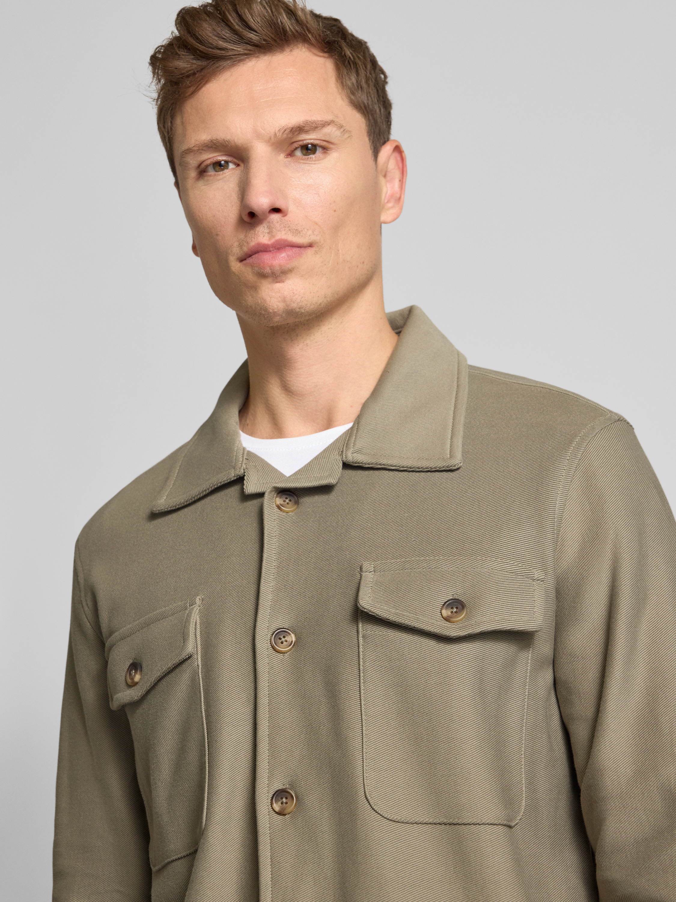 Regular fit overhemdjack van puur biologisch katoen, model 'OLIVER' in olijfgroen