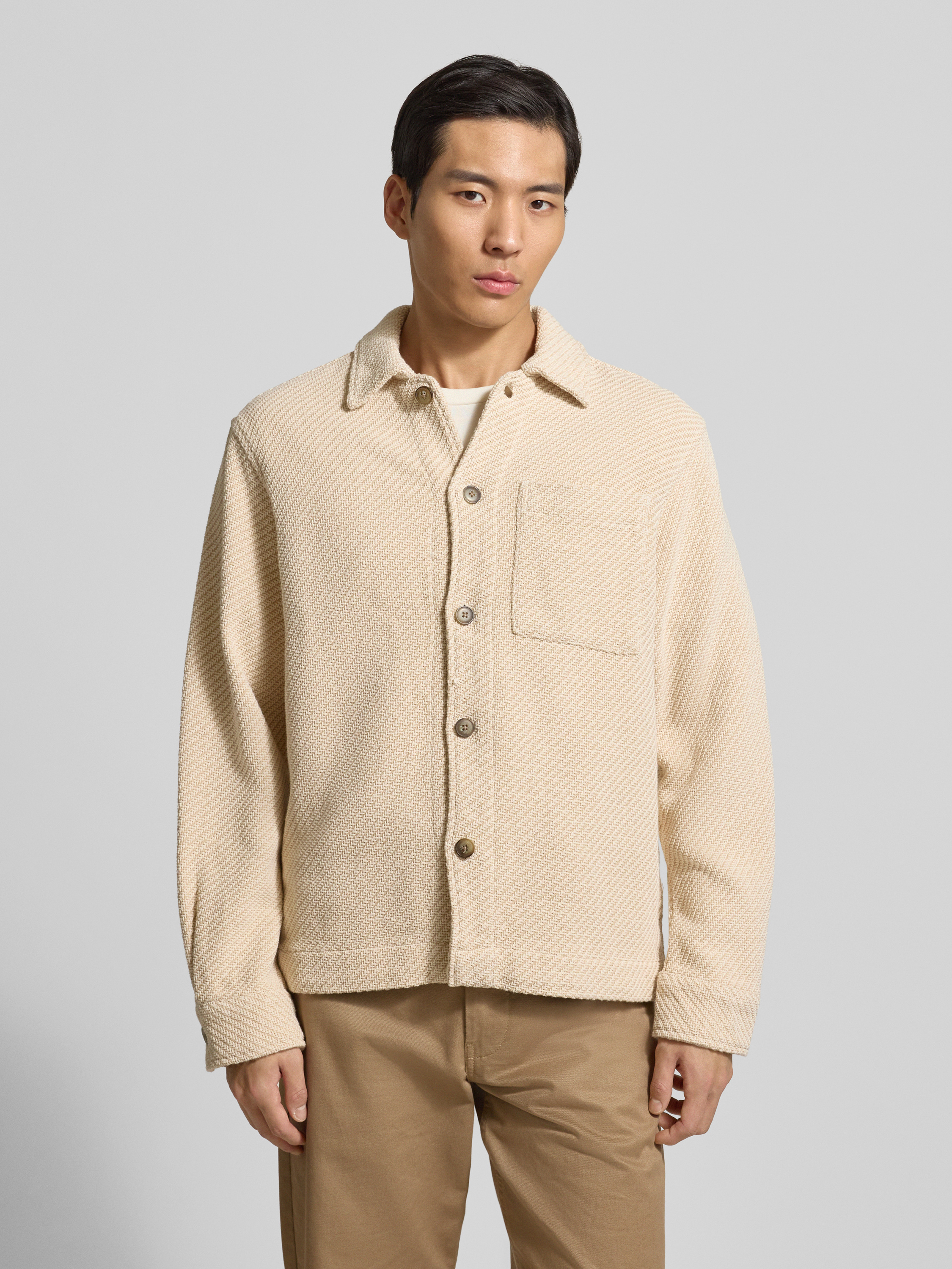 Regular fit overhemdjack van puur biologische katoenmix, model 'REGFRED' in ecru