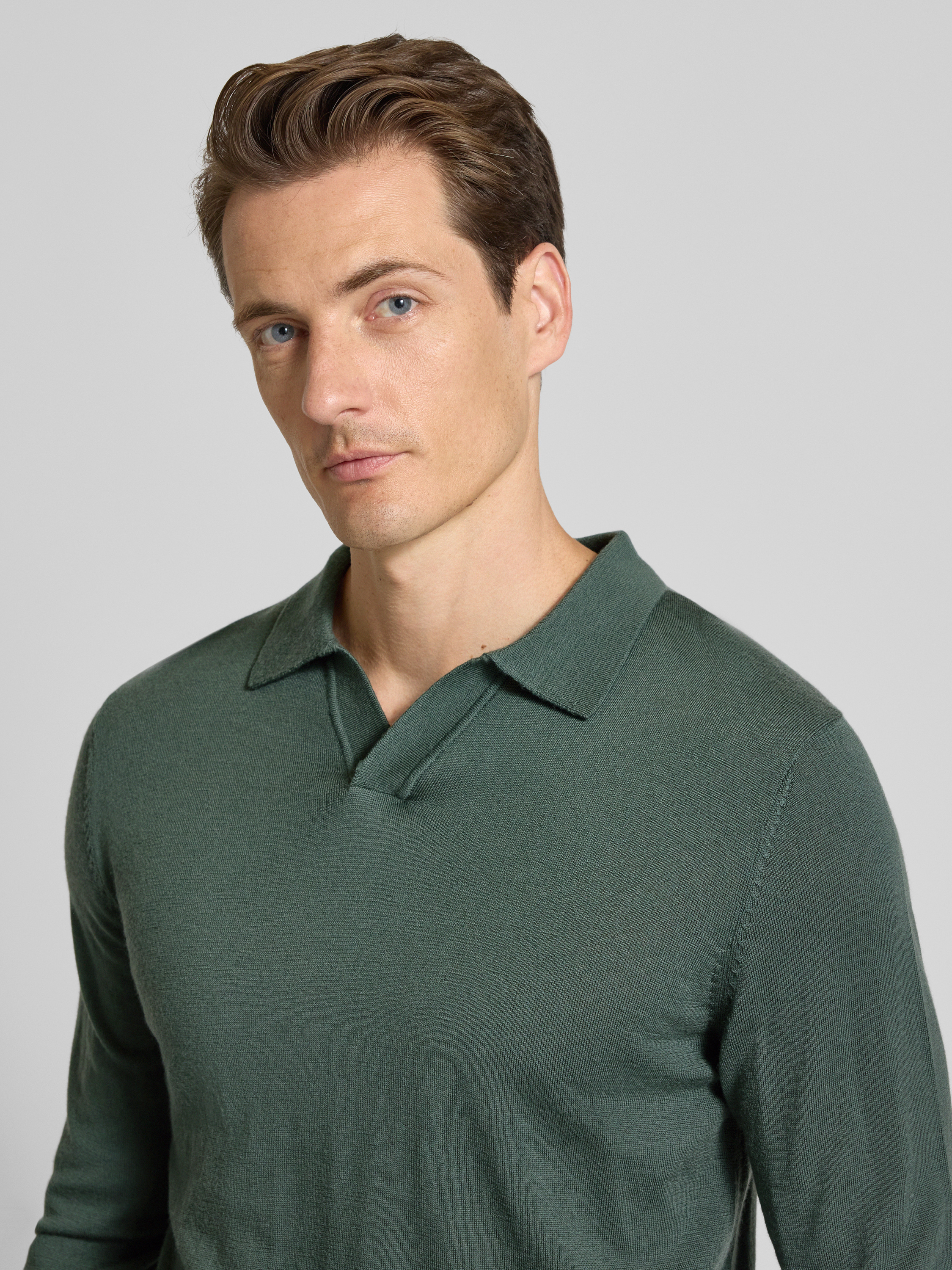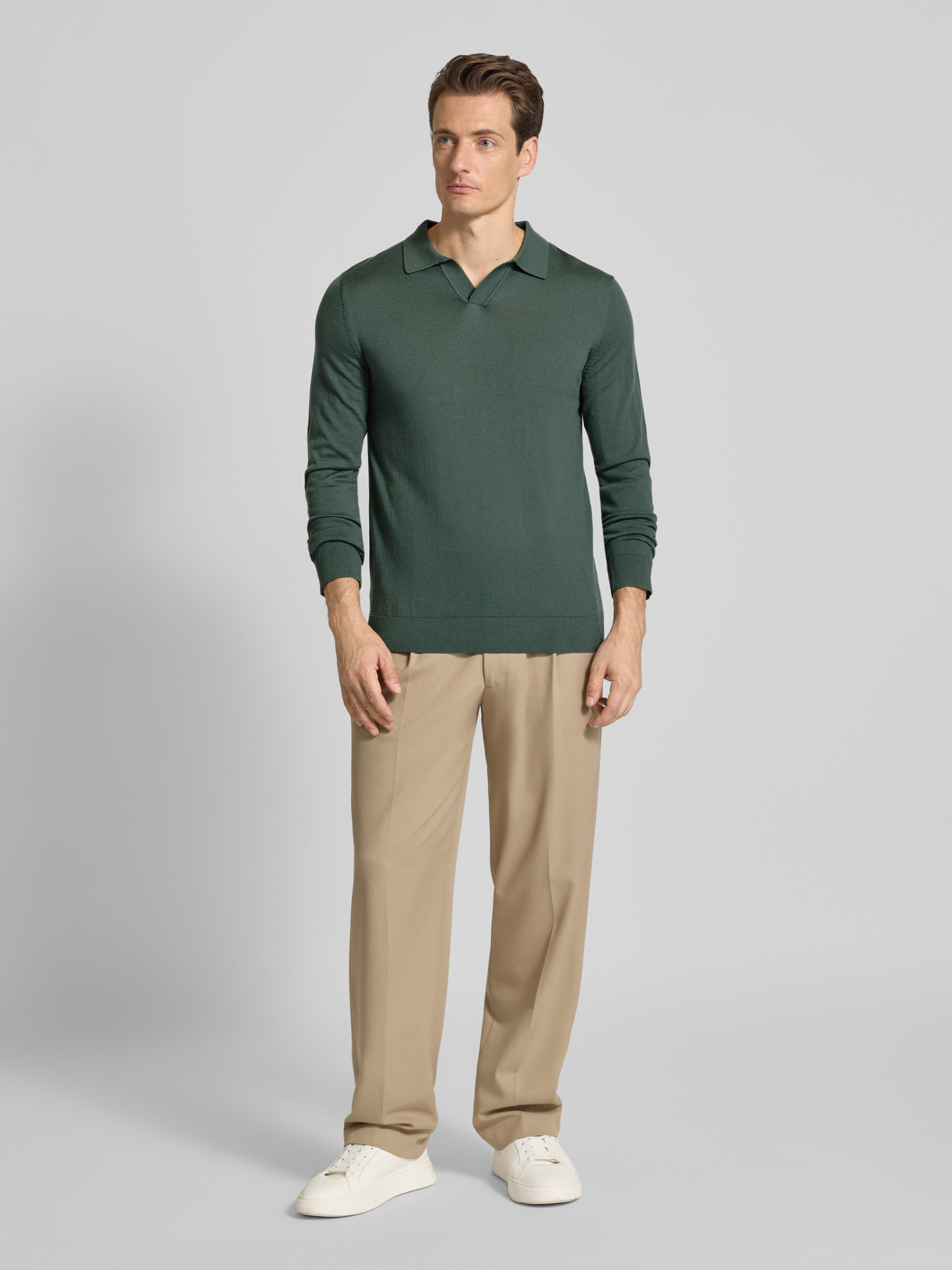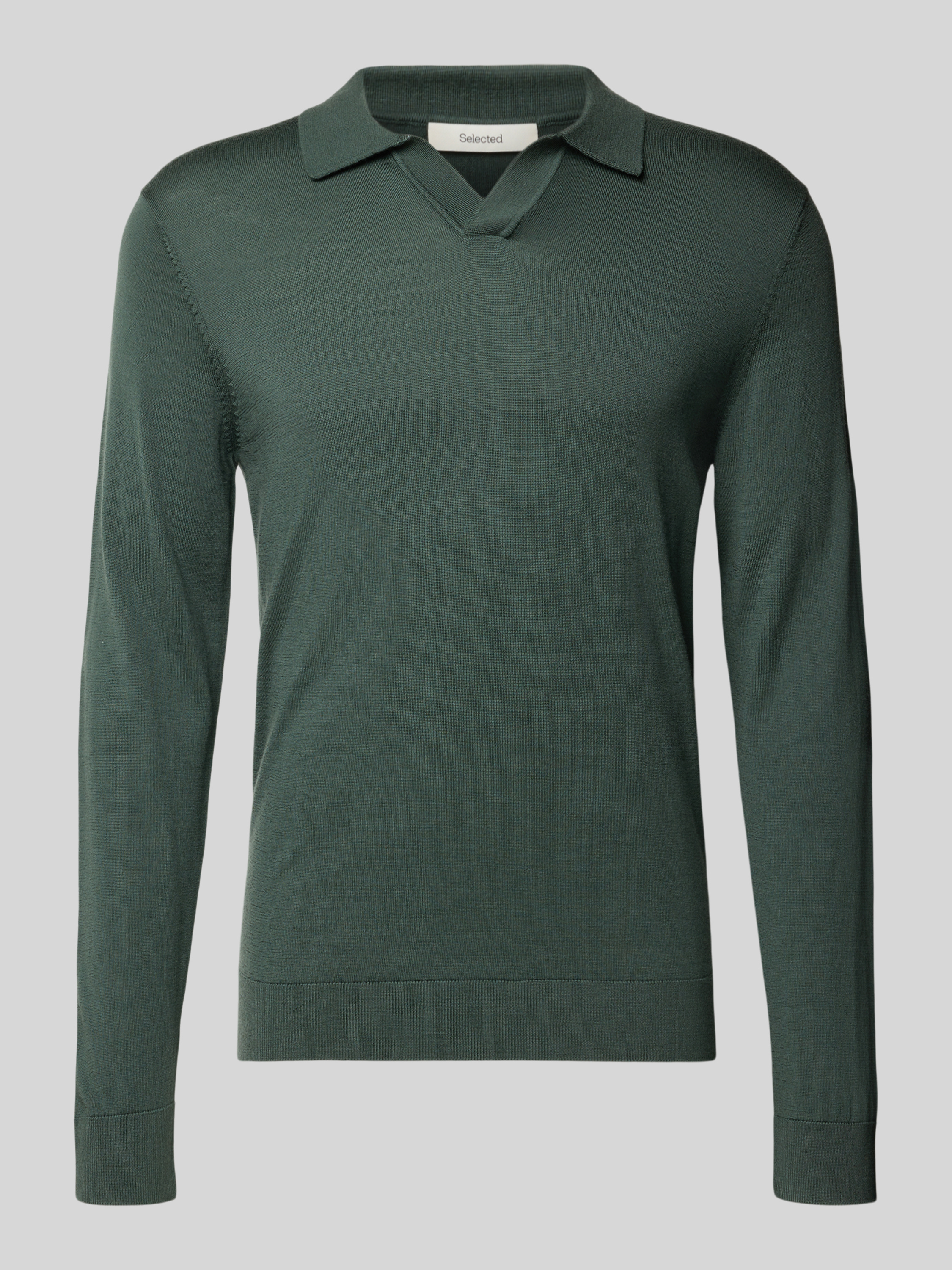 SELECTED HOMMERegular fit poloshirt van zuivere wol, model 'TRAY' in donkergroen