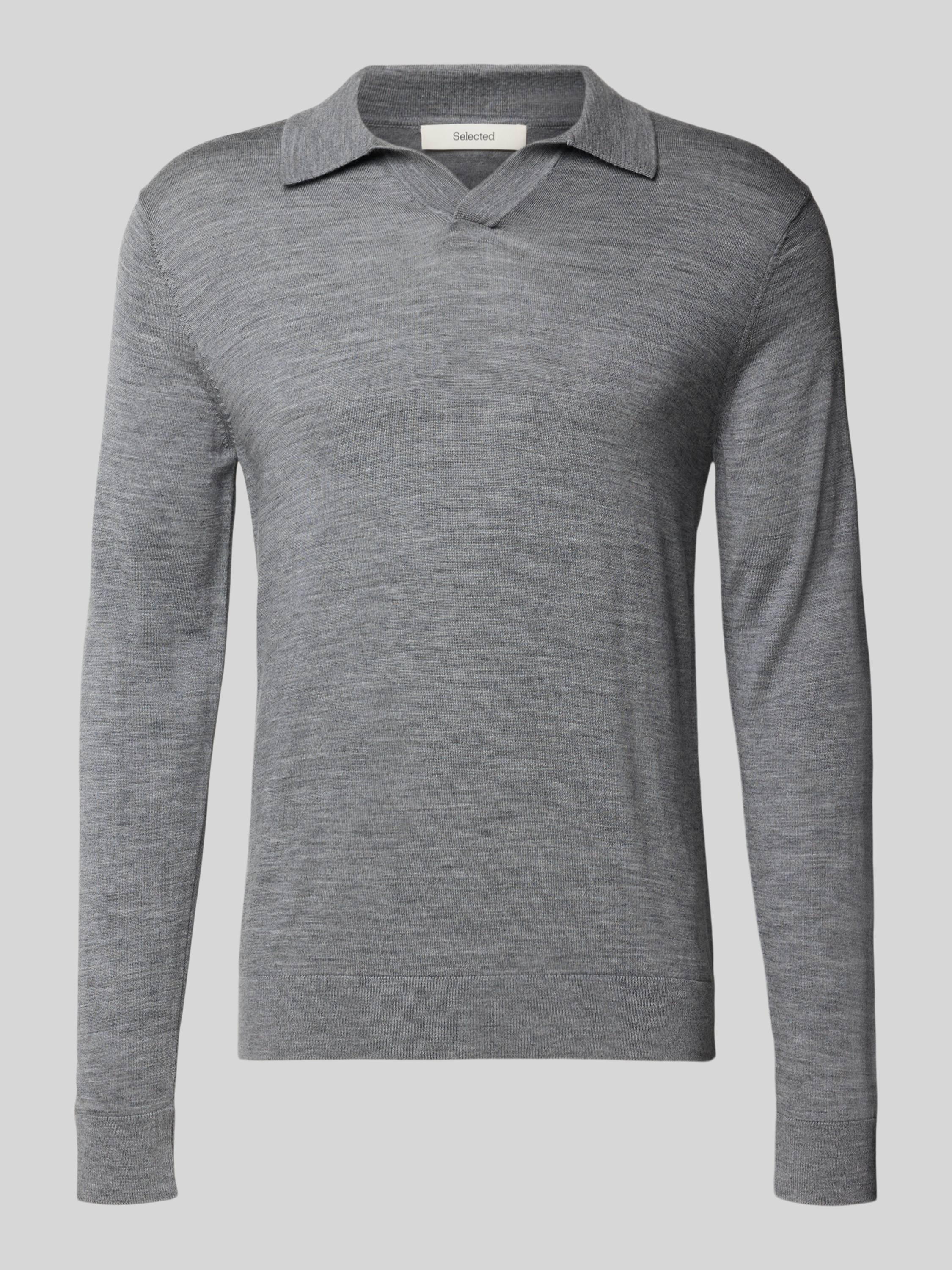SELECTED HOMMERegular fit poloshirt van zuivere wol, model 'TRAY' in middengrijs