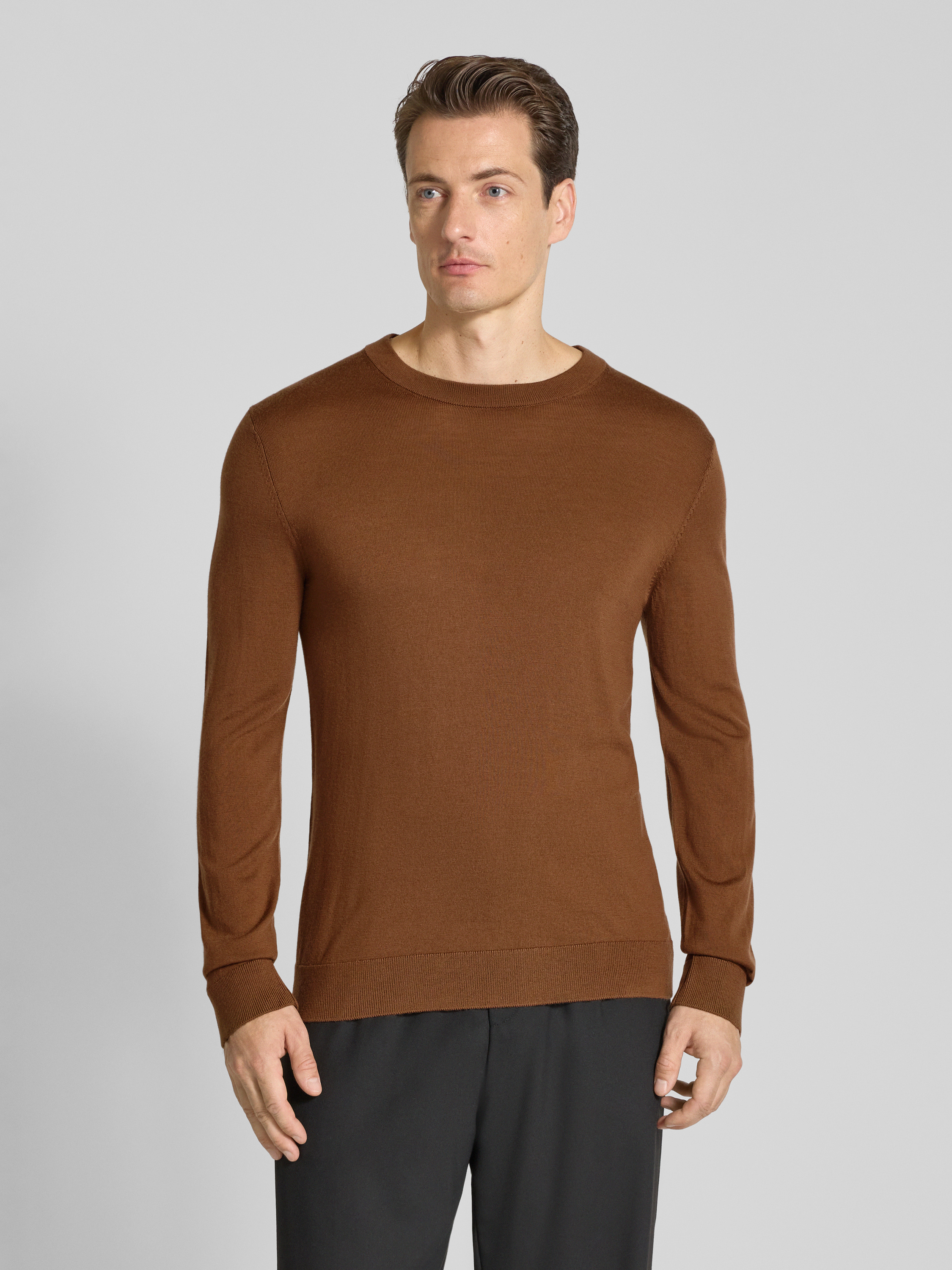 SELECTED HOMMERegular fit pullover van zuivere merinowol, model 'TRAY' in cognac