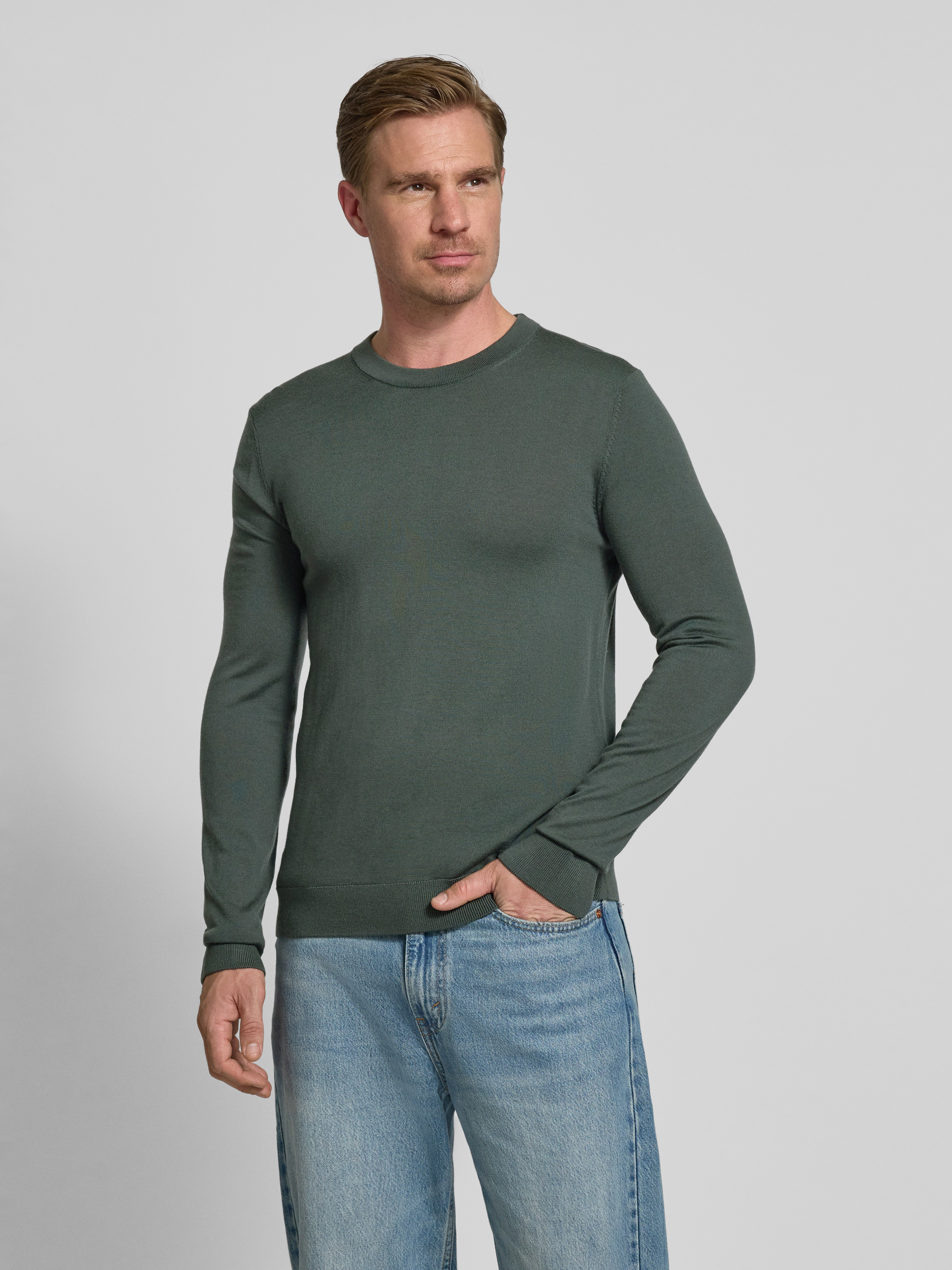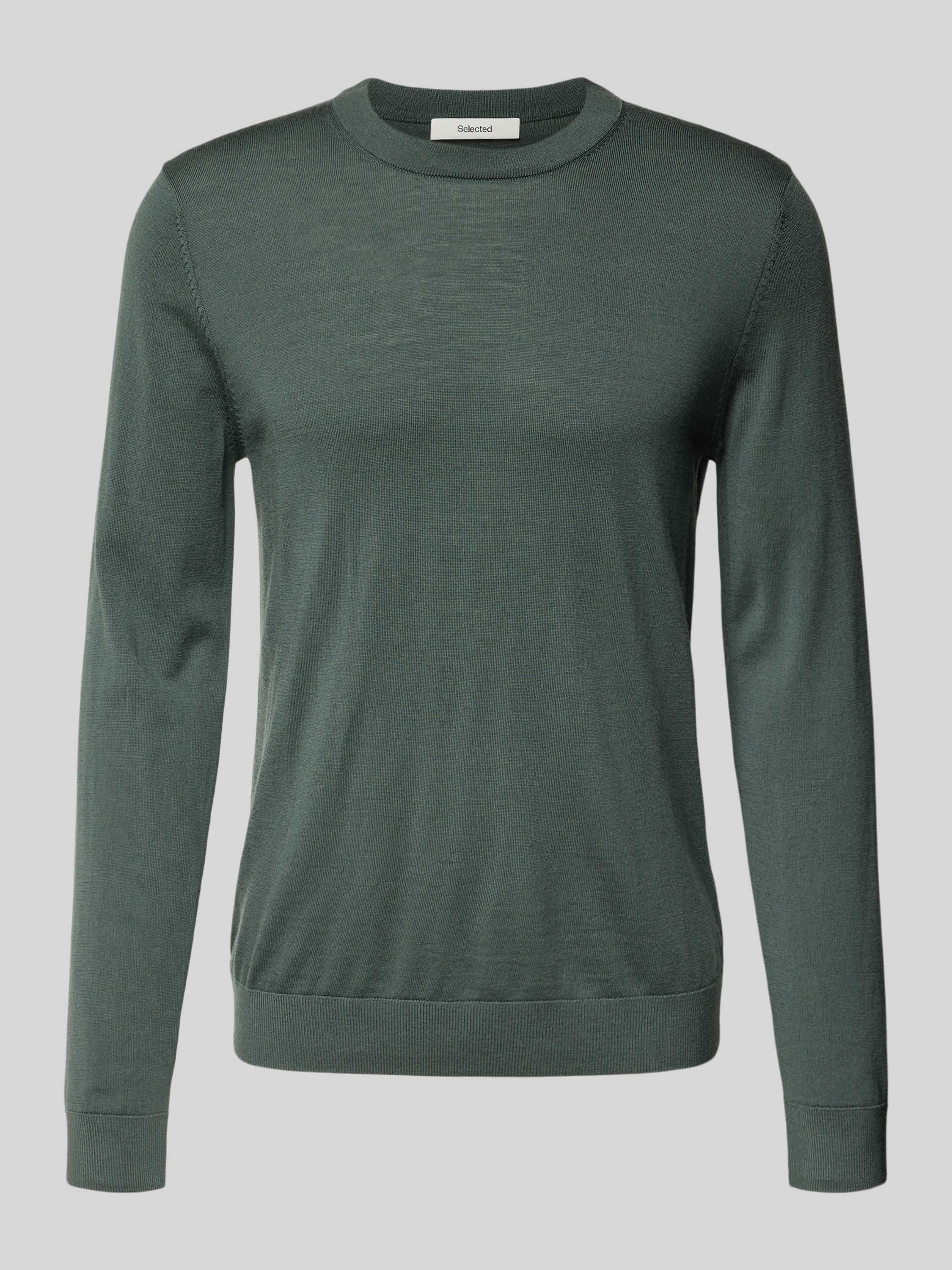 SELECTED HOMMERegular fit pullover van zuivere merinowol, model 'TRAY' in donkergroen
