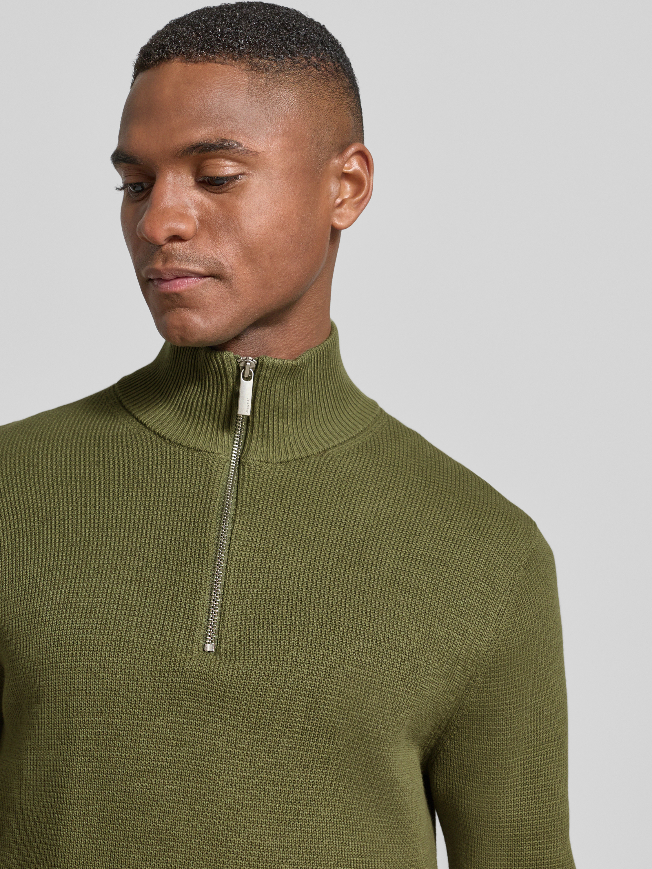 Regular fit schipperstrui van puur biologisch katoen, model 'DANE' in olijfgroen