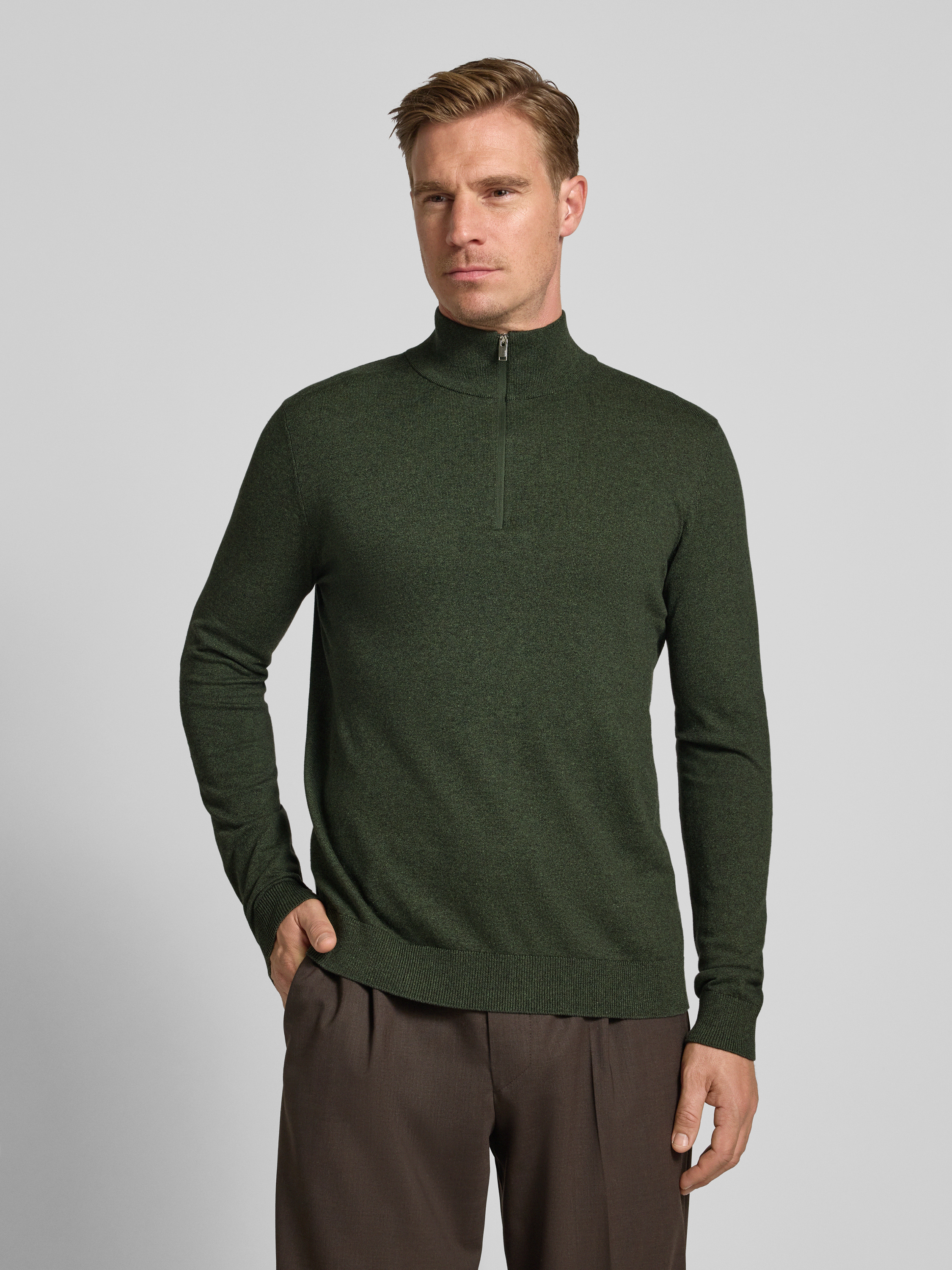 SELECTED HOMMERegular fit schipperstrui van puur katoen, model 'BERG' in olijfgroen gemêleerd