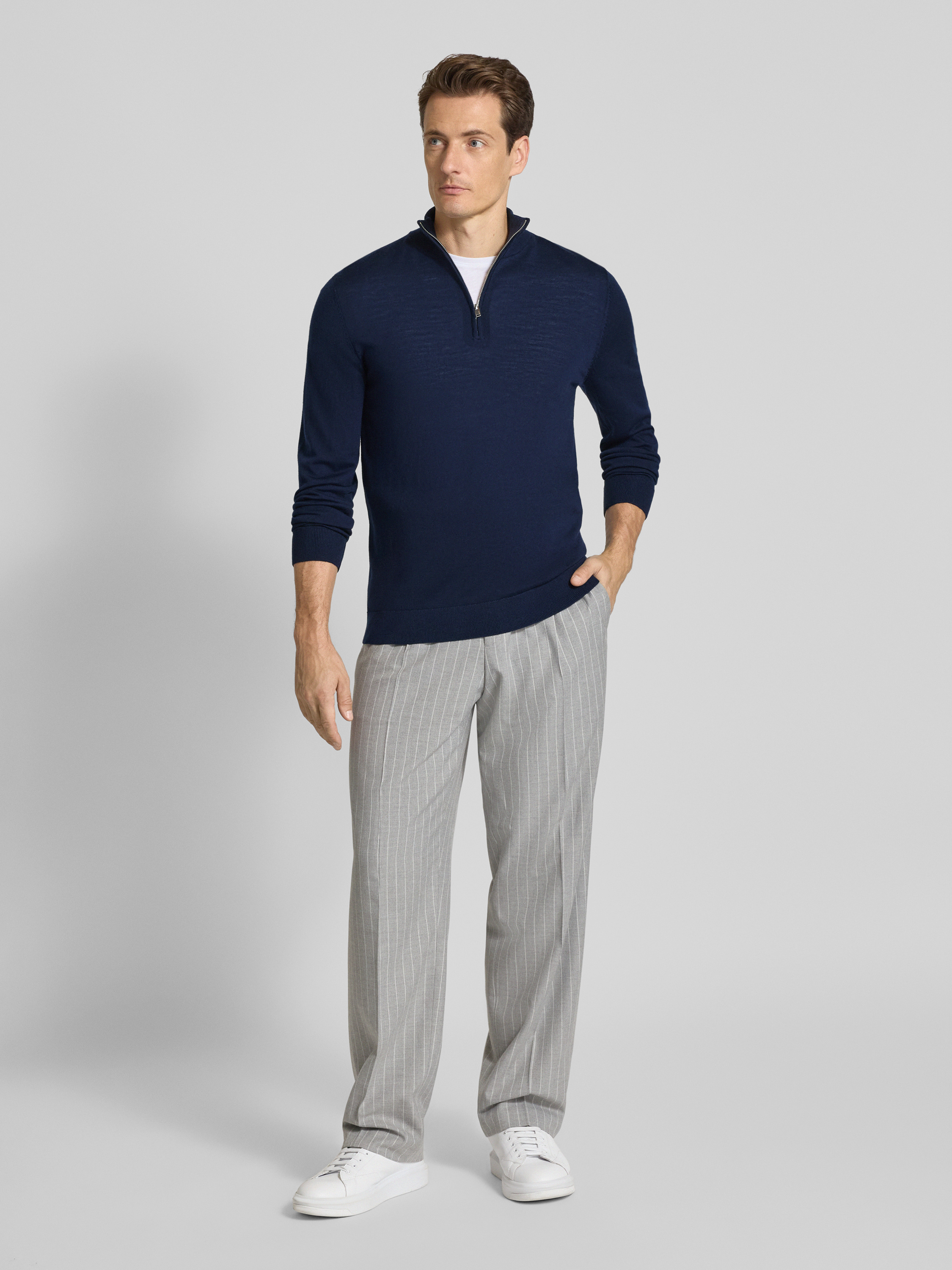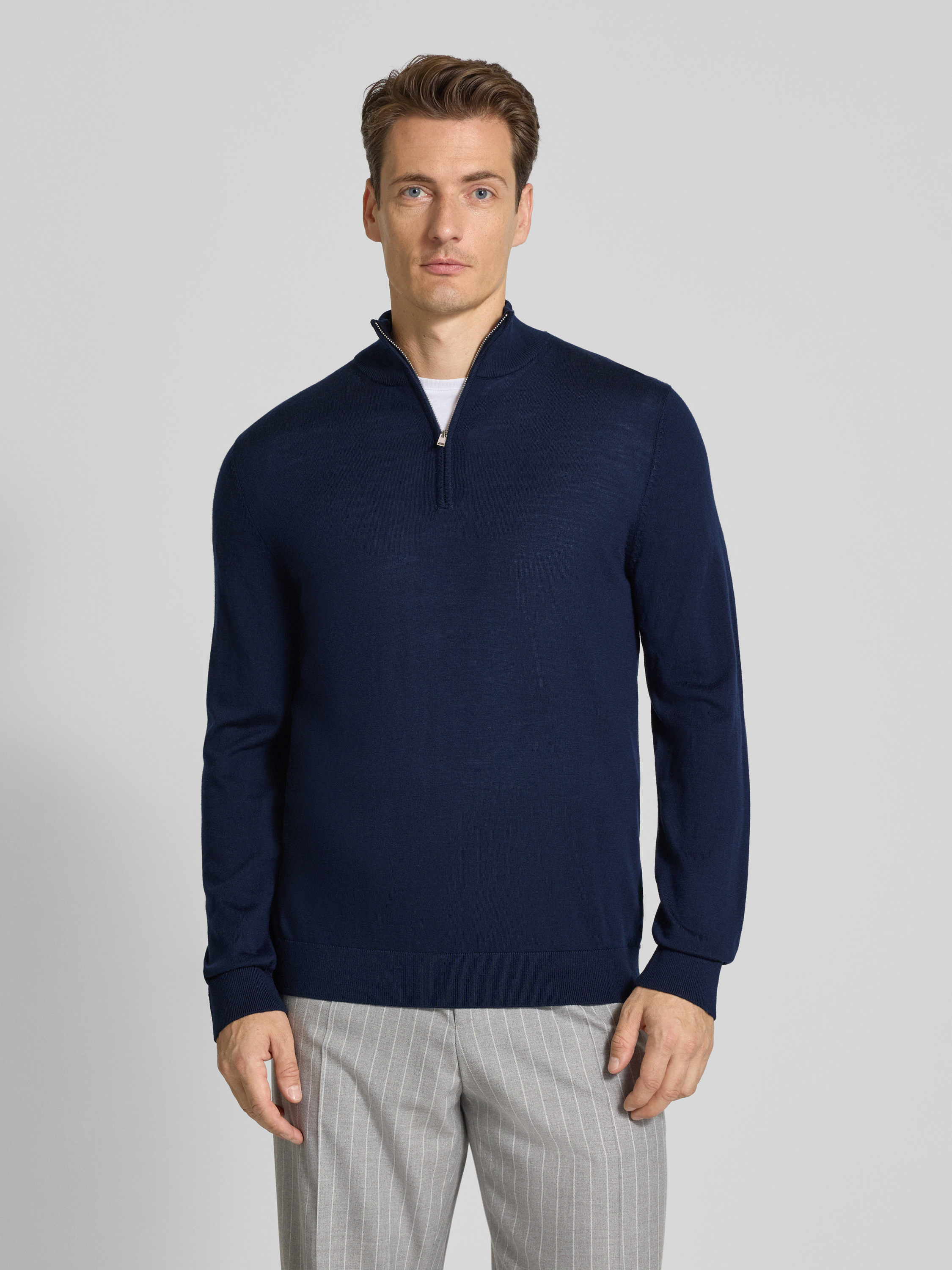 SELECTED HOMMERegular fit schipperstrui van zuivere merinowol, model 'TRAY' in donkerblauw