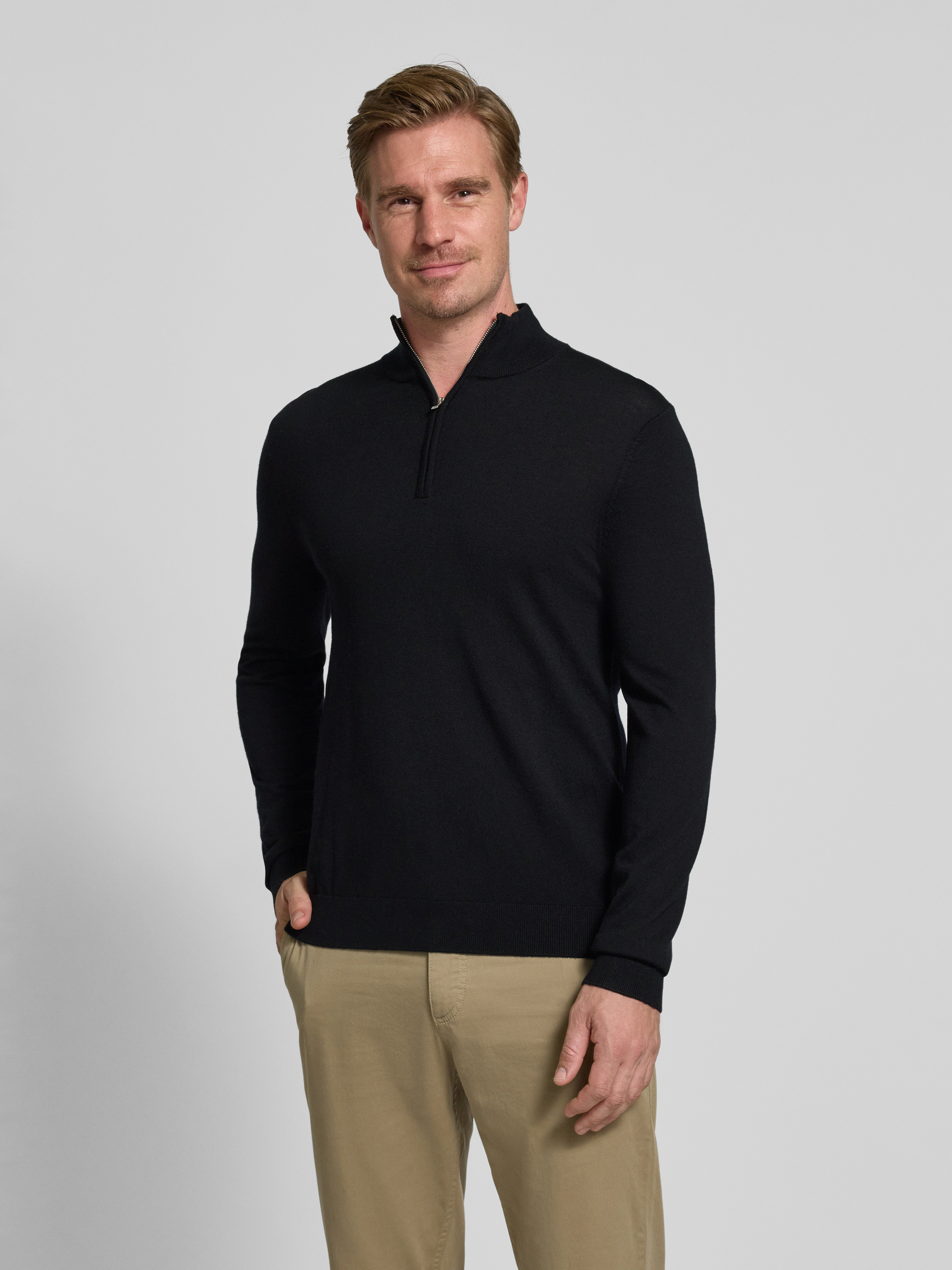 SELECTED HOMMERegular fit schipperstrui van zuivere merinowol, model 'TRAY' in zwart