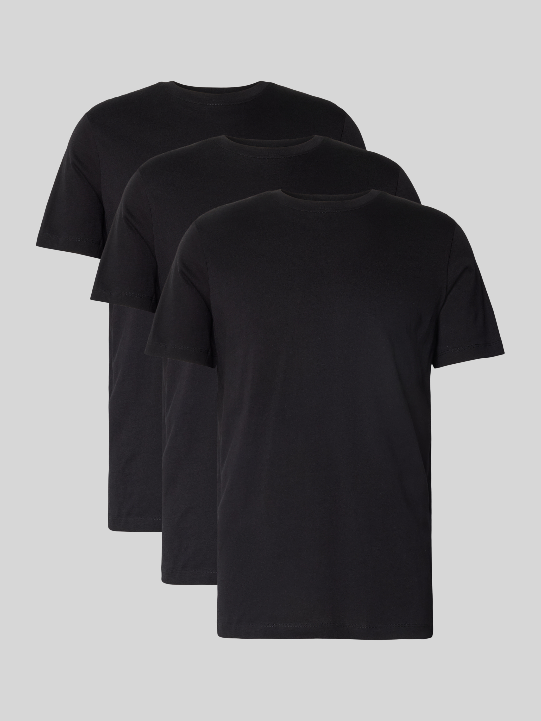 Regular fit T-shirt van puur katoen in een set van 3 stuks in zwart