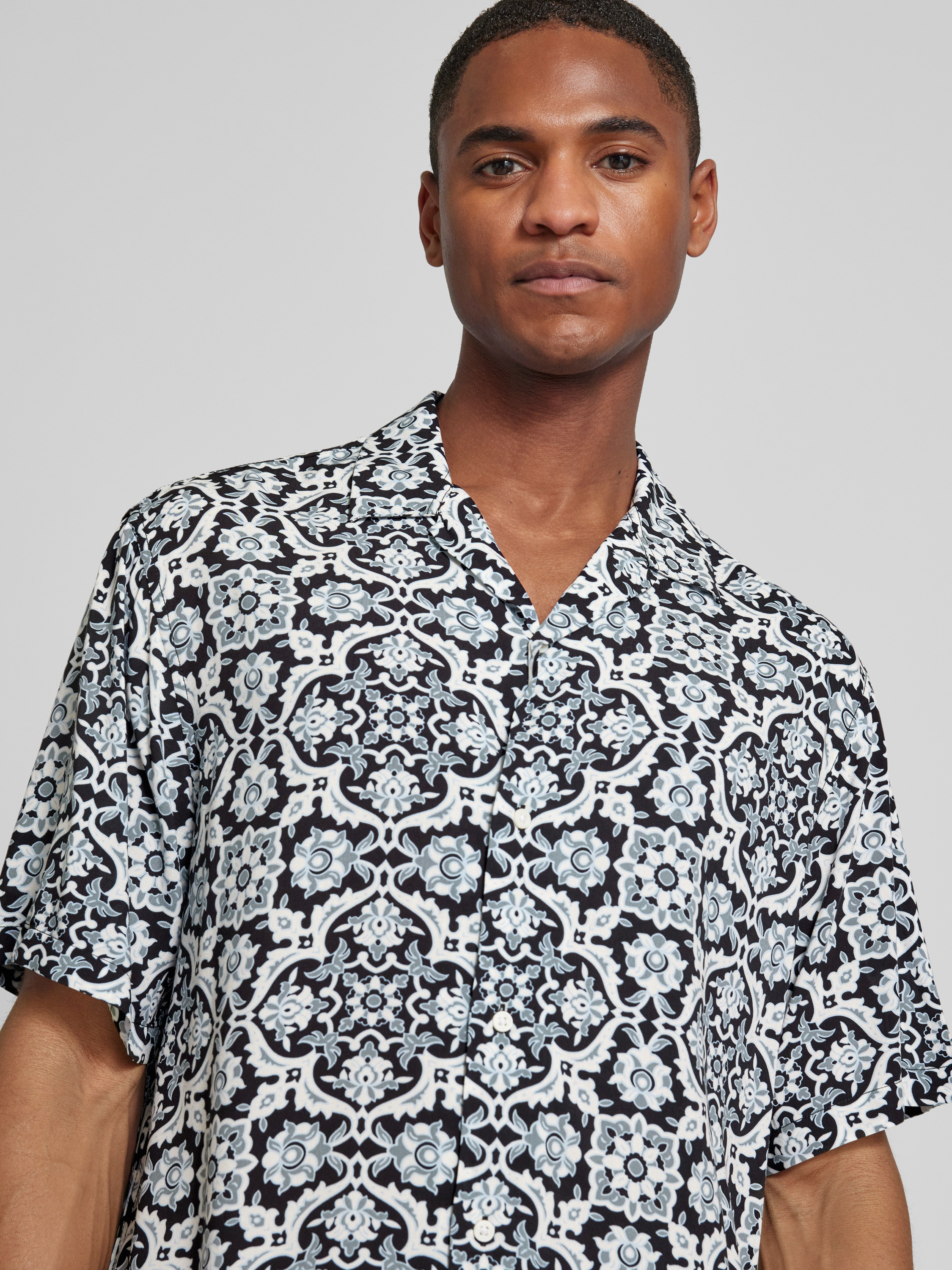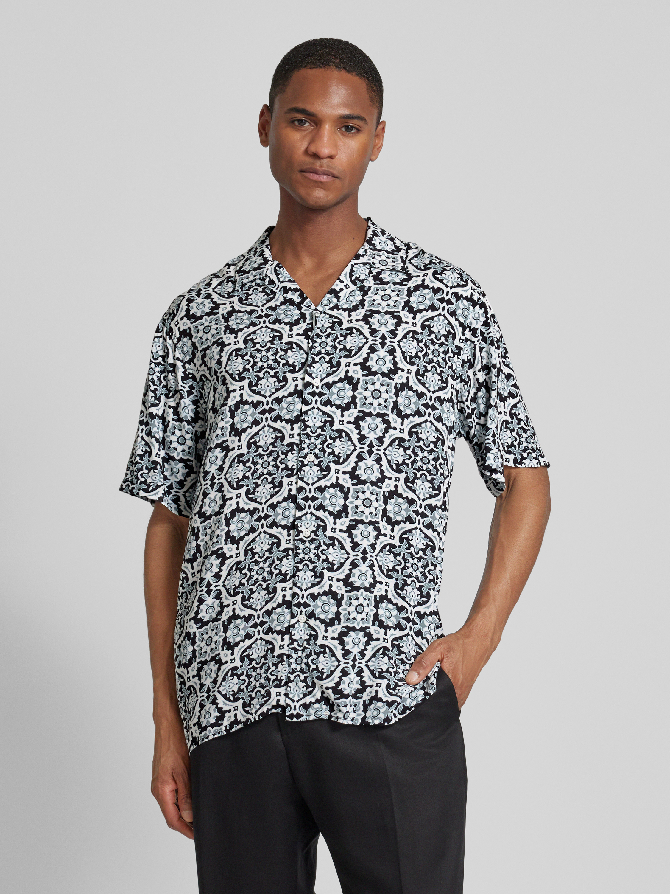 Regular fit vrijetijdsoverhemd met all-over motief in marineblauw