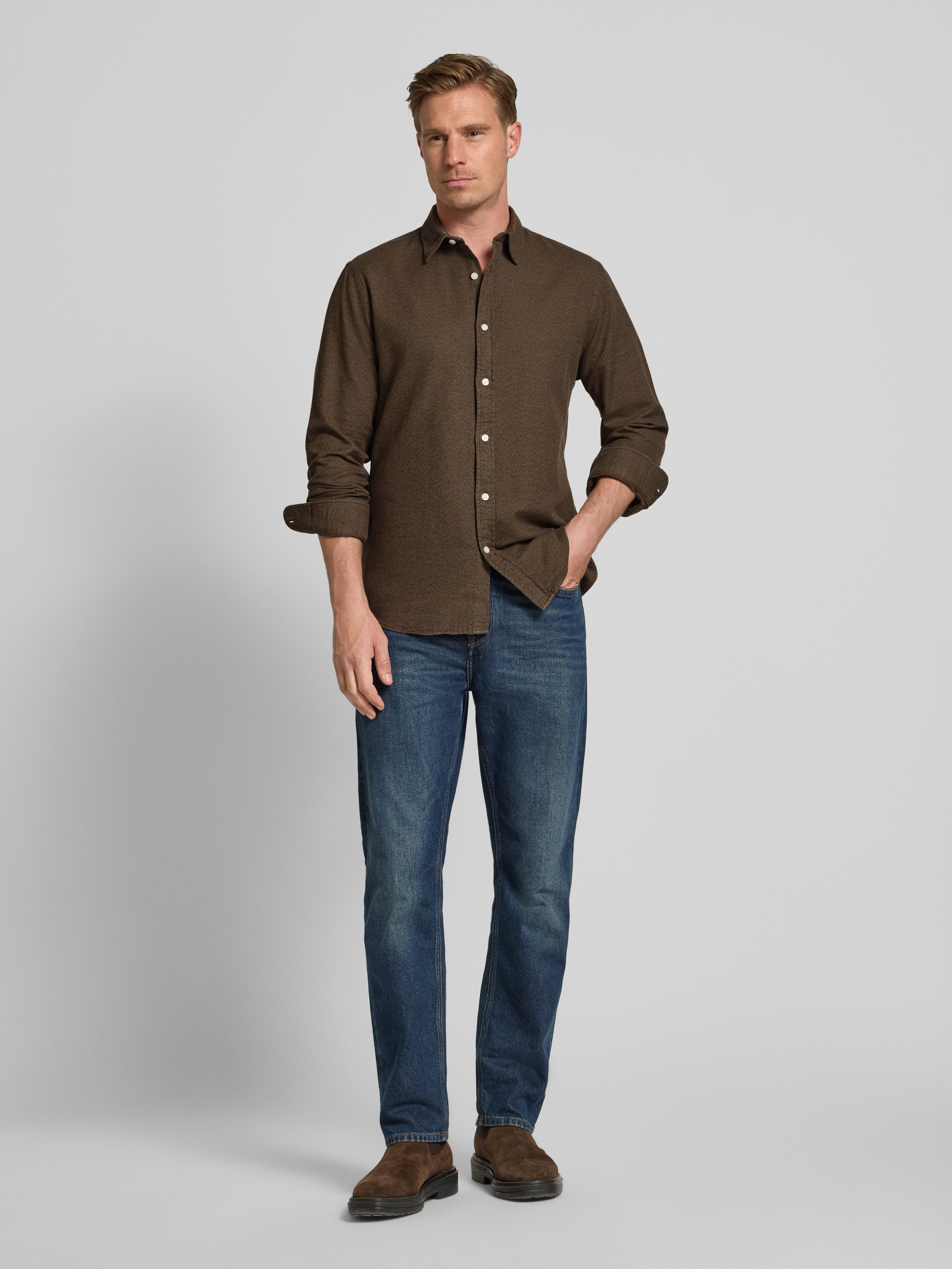 Regular fit vrijetijdsoverhemd van puur katoen, model 'NOAH' in chocoladebruin