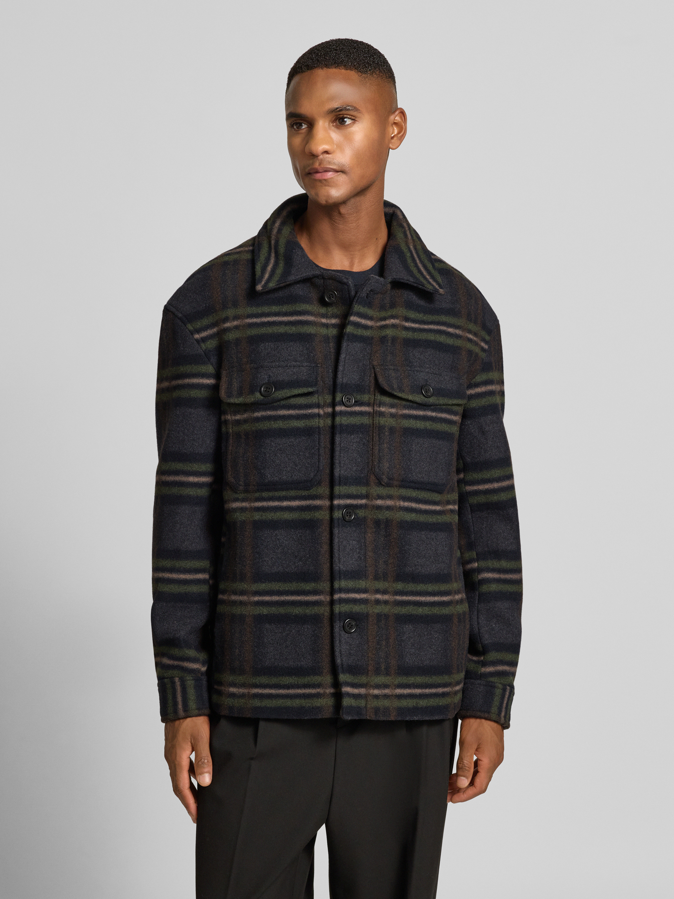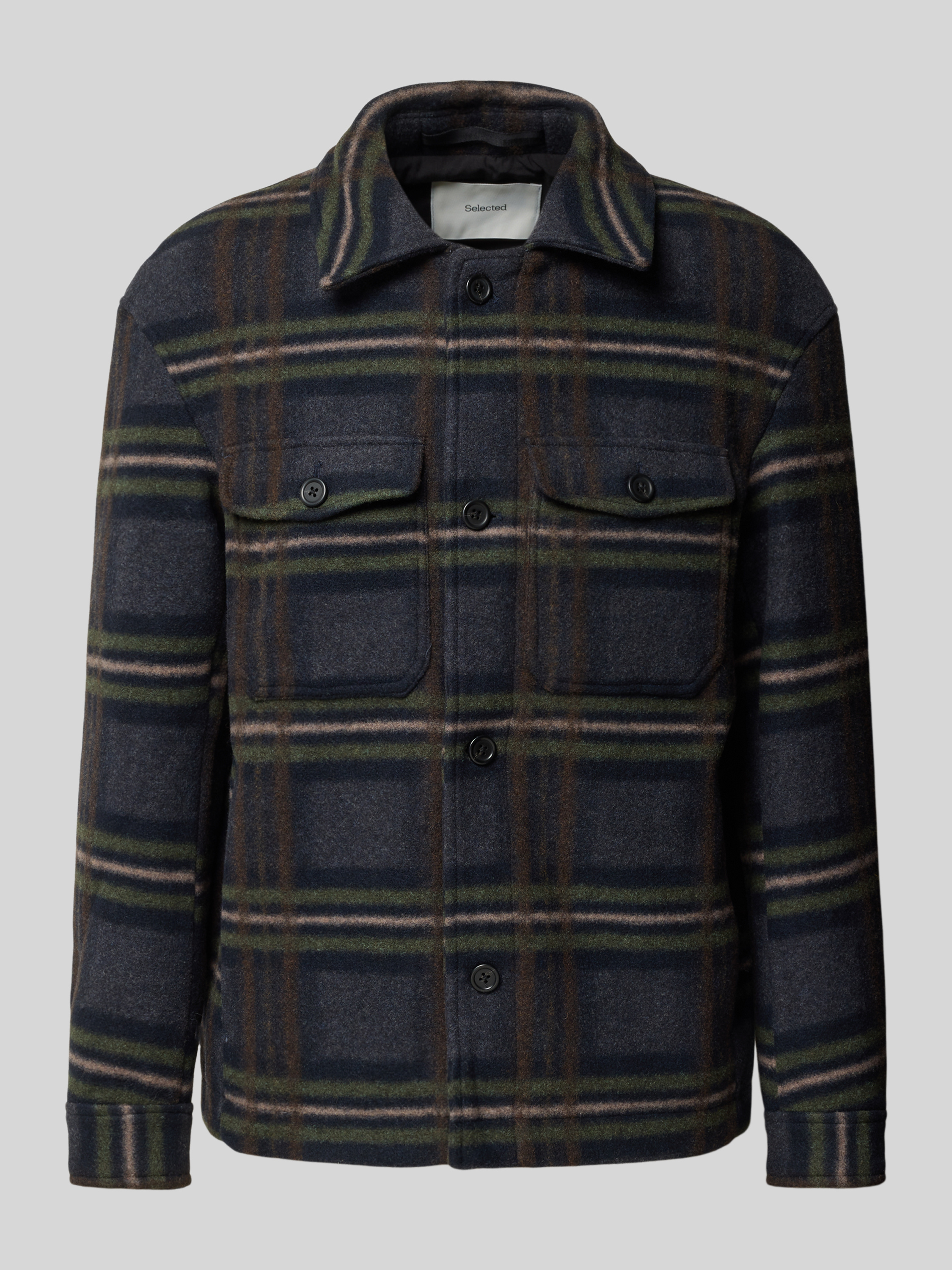 Regular fit wollen jack met platte kraag, model 'MITCH' in marineblauw