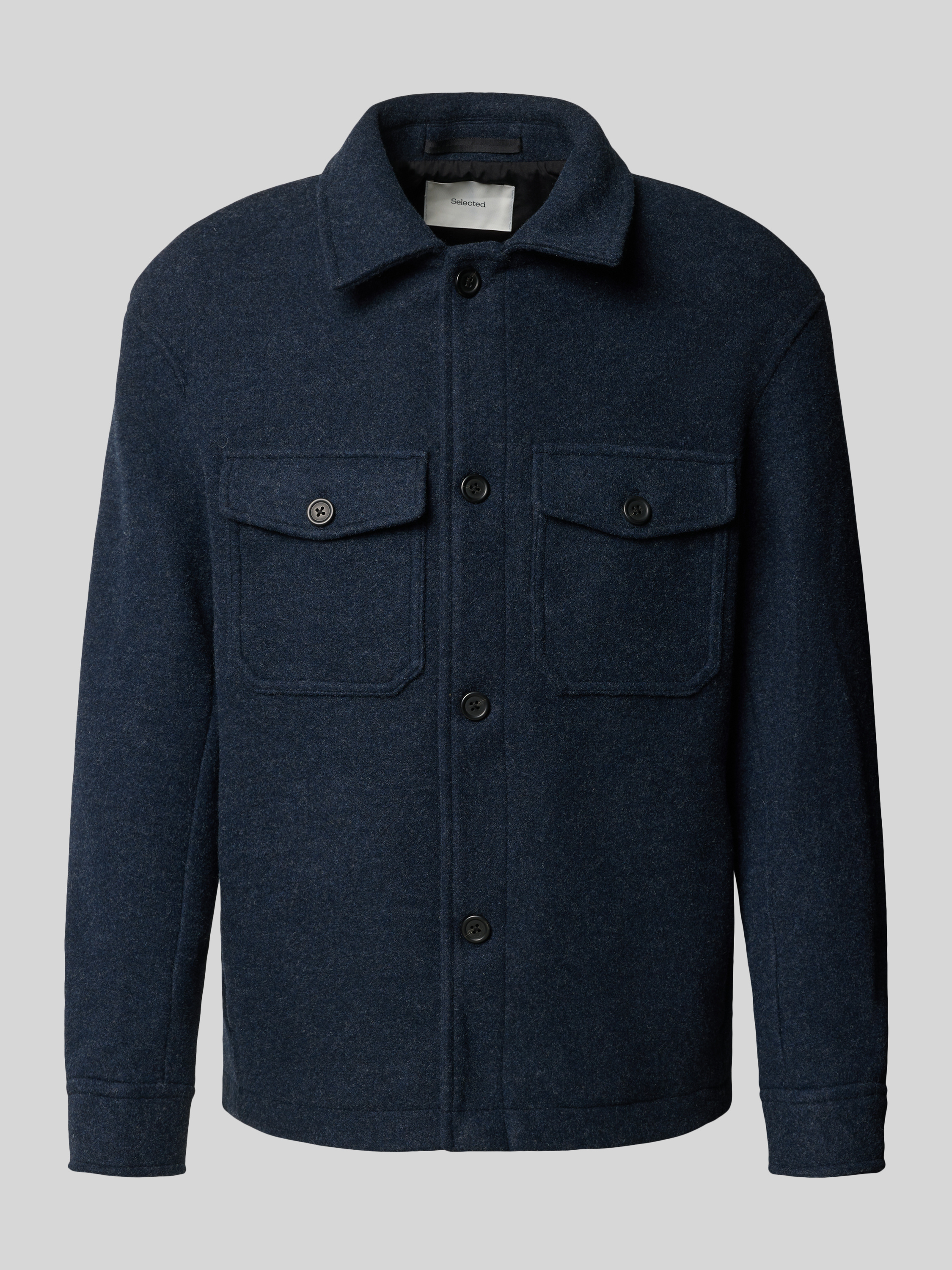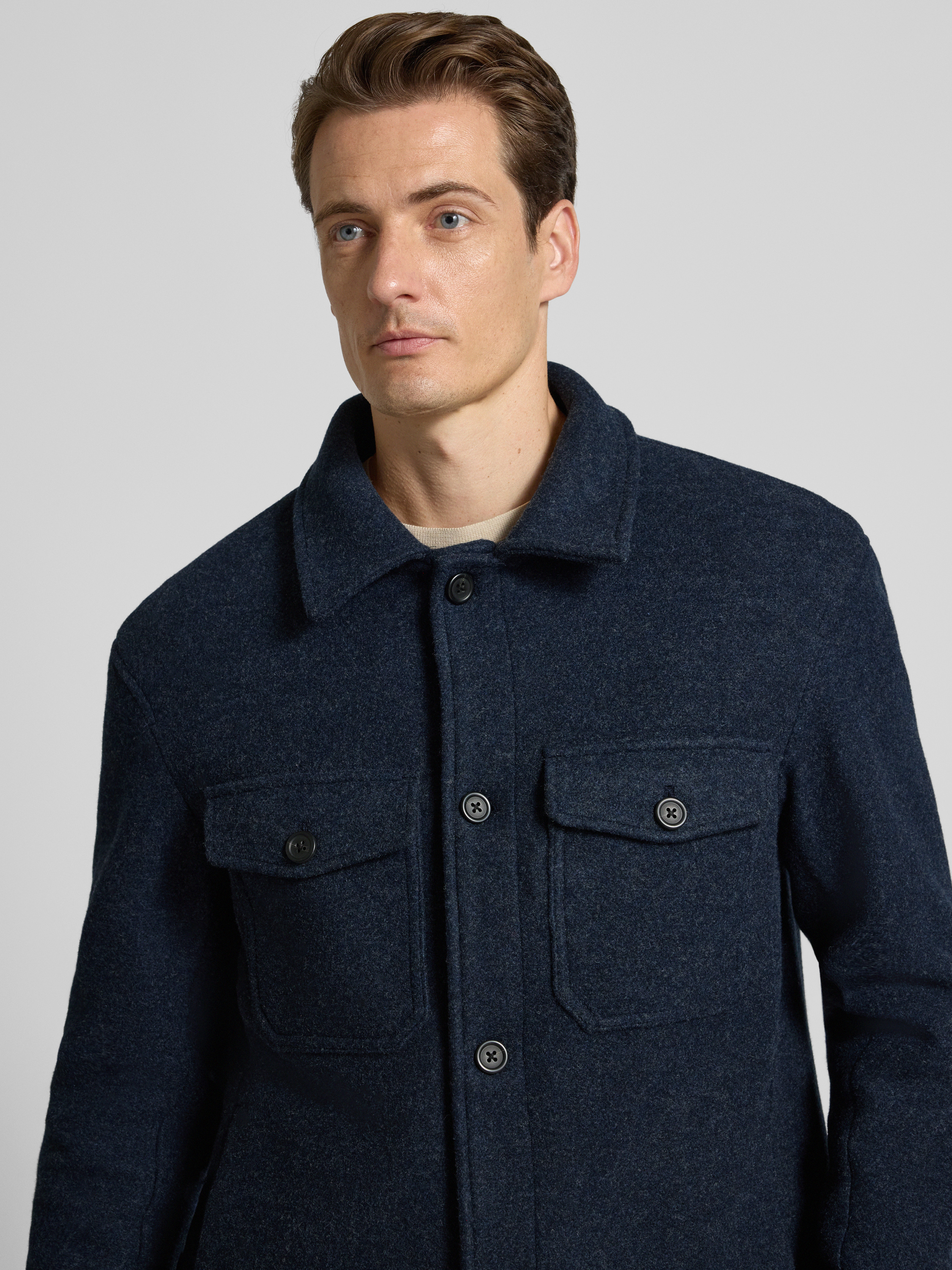 Regular fit wollen jack met platte kraag, model 'MITCH' in marineblauw gemêleerd