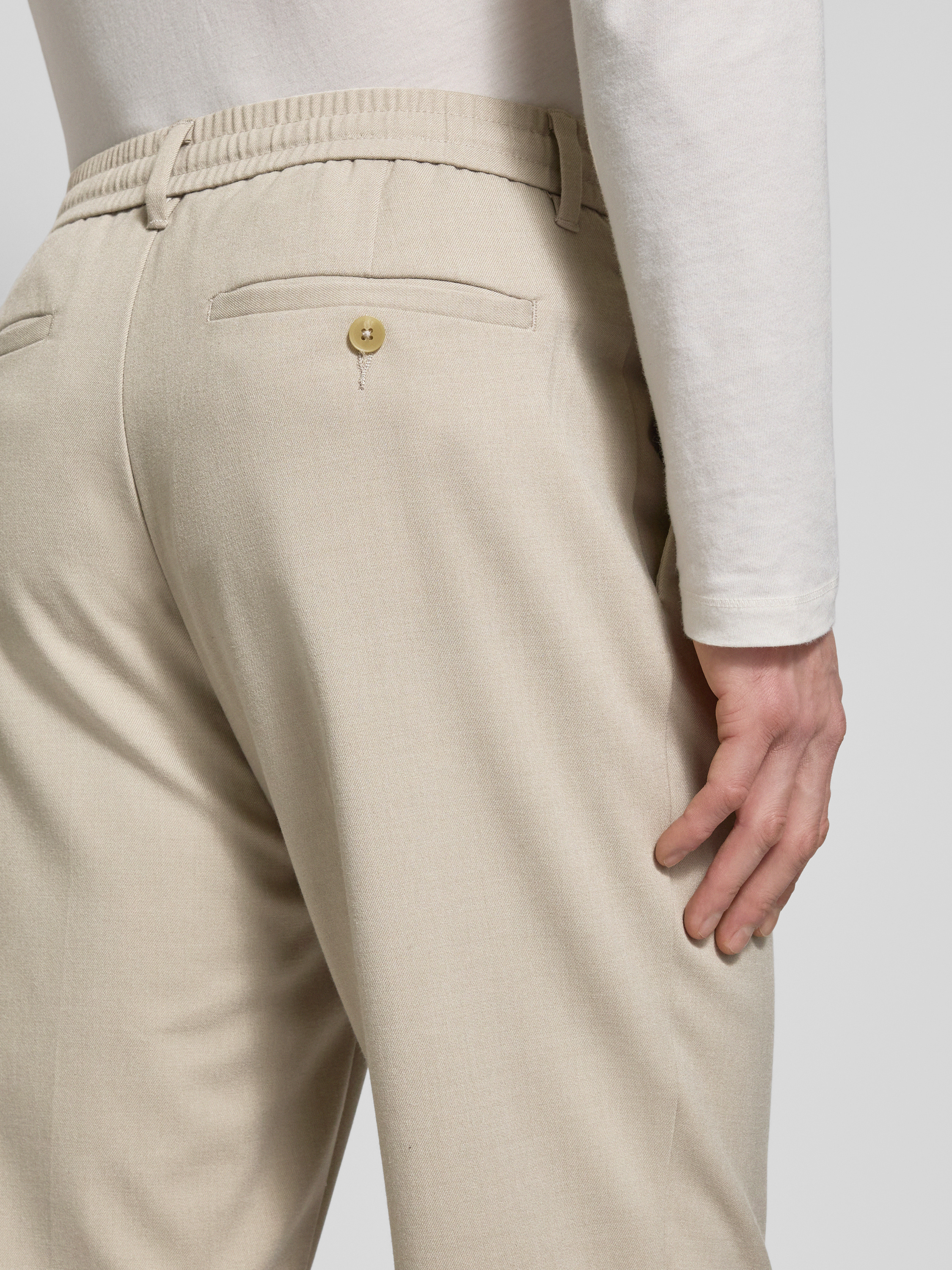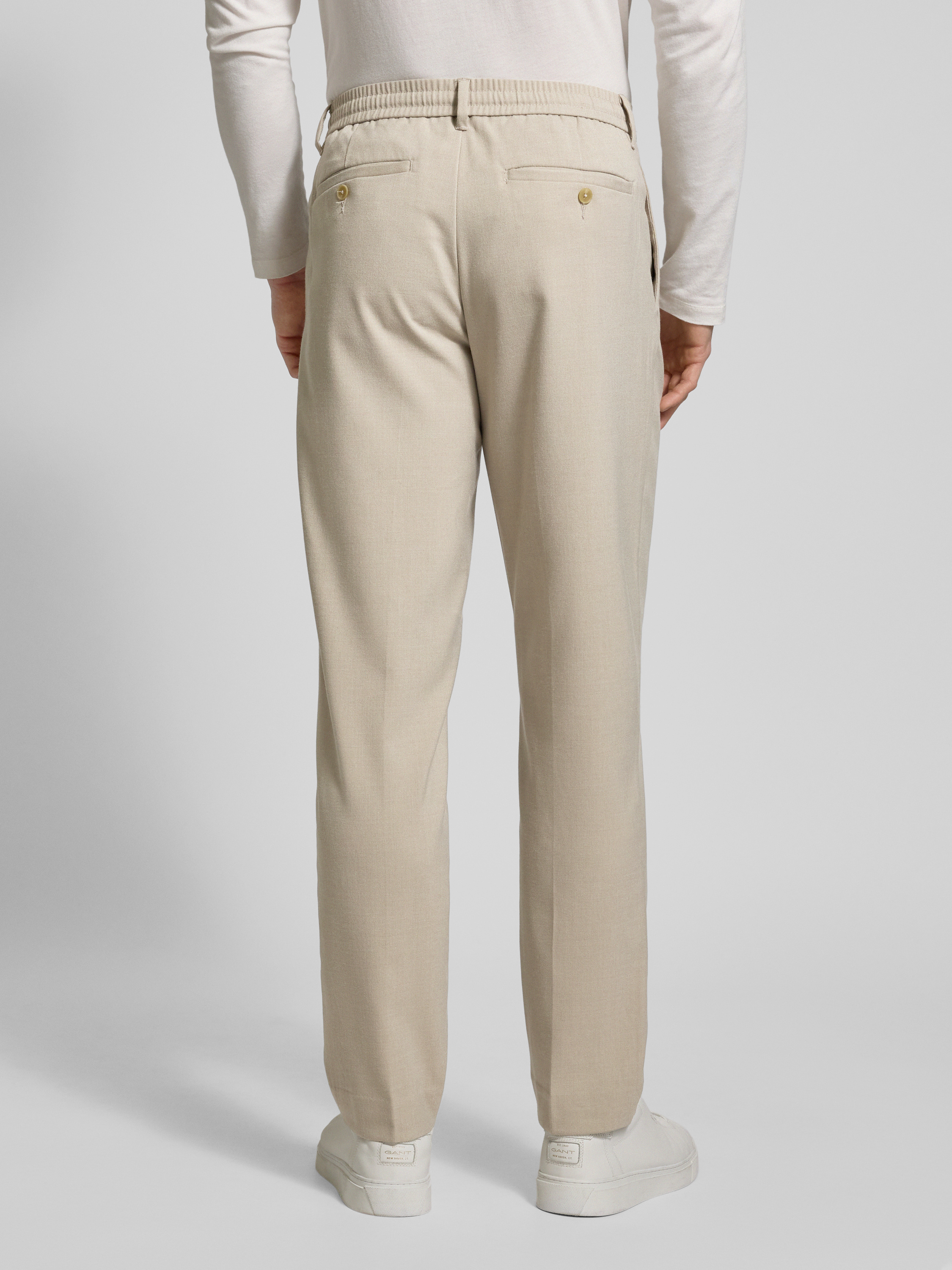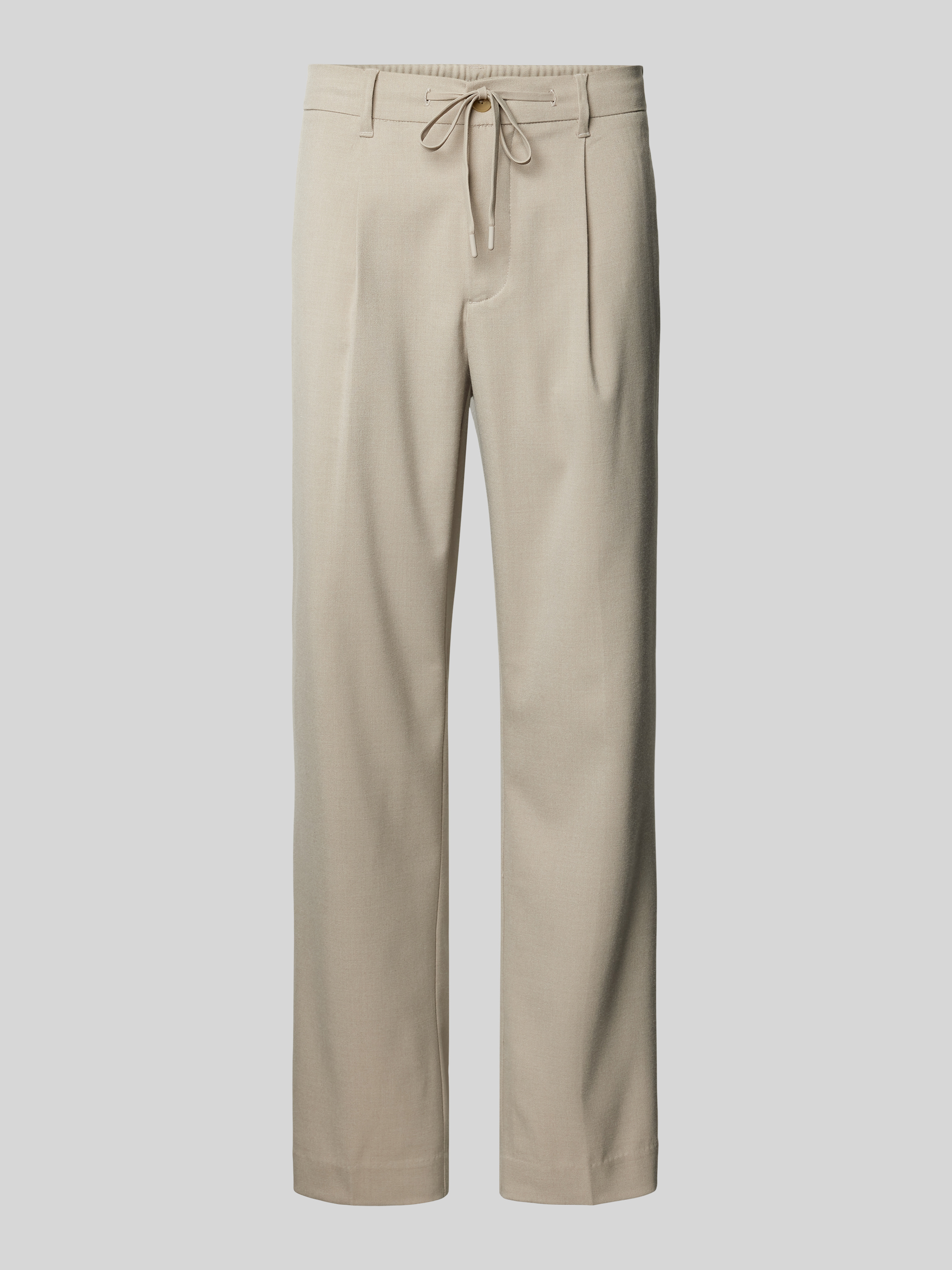 Regular tapered fit bandplooibroek met tunnelkoord, model 'LEROY' in beige