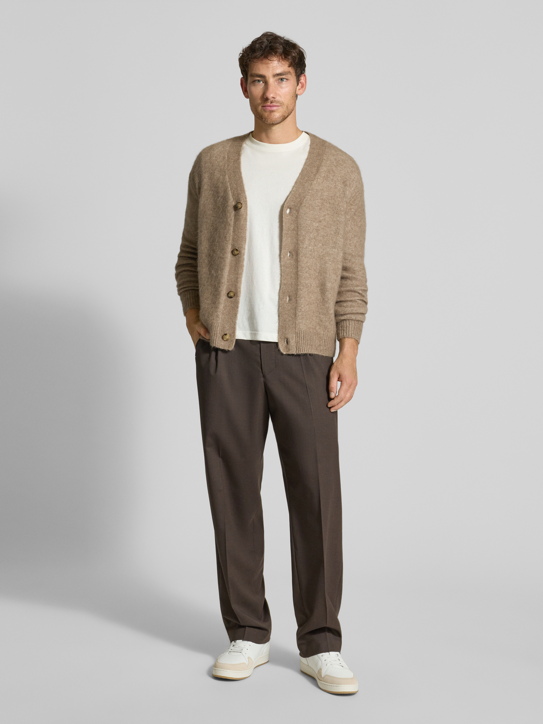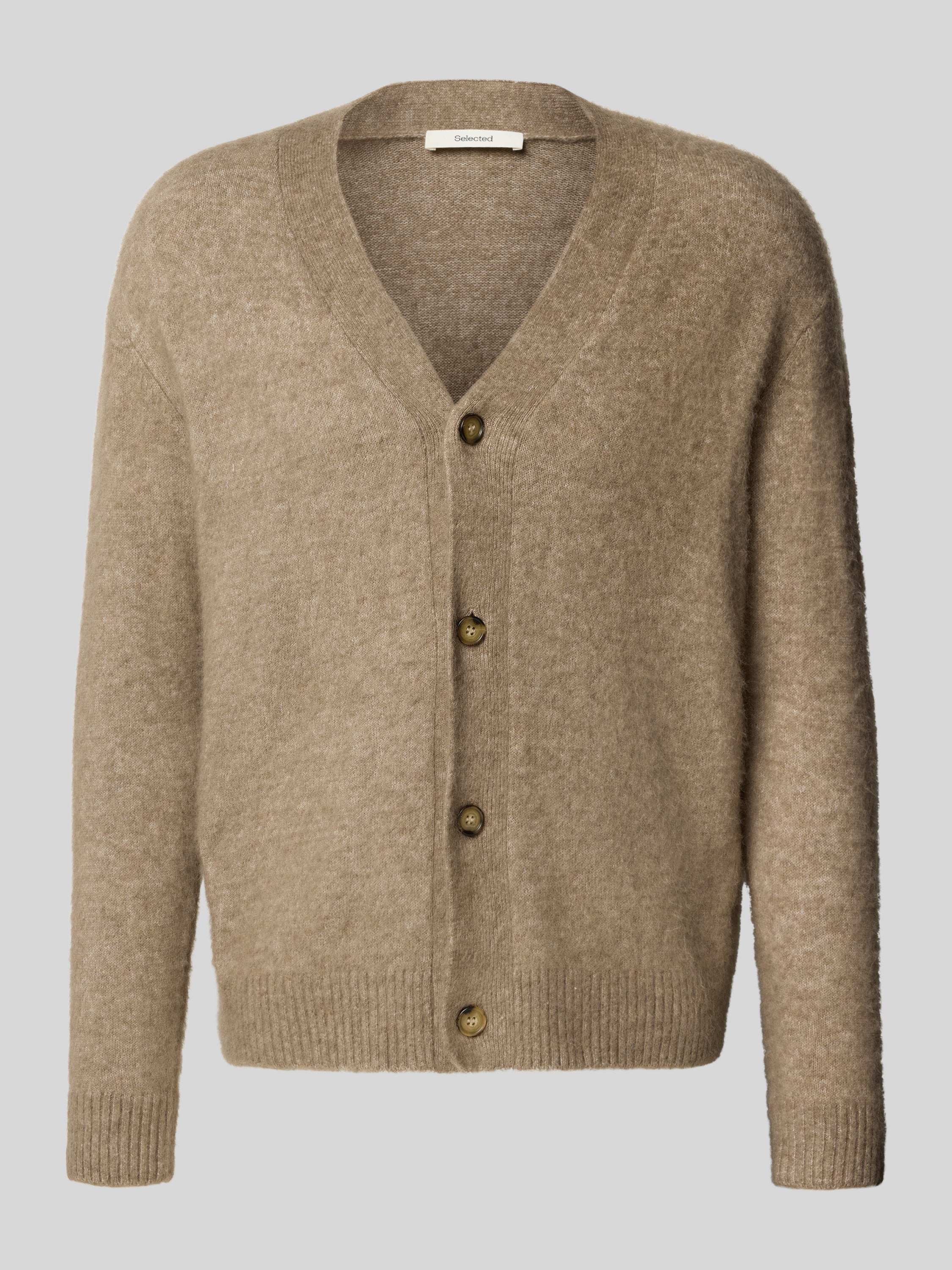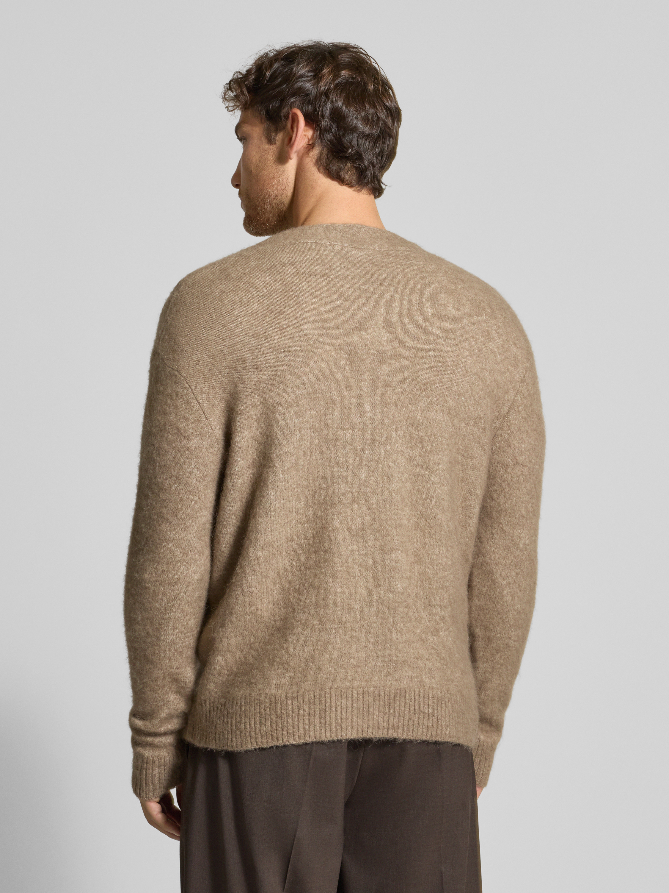 Relaxed fit gebreid jack met alpacawol, model 'RAI' in hazelnoot