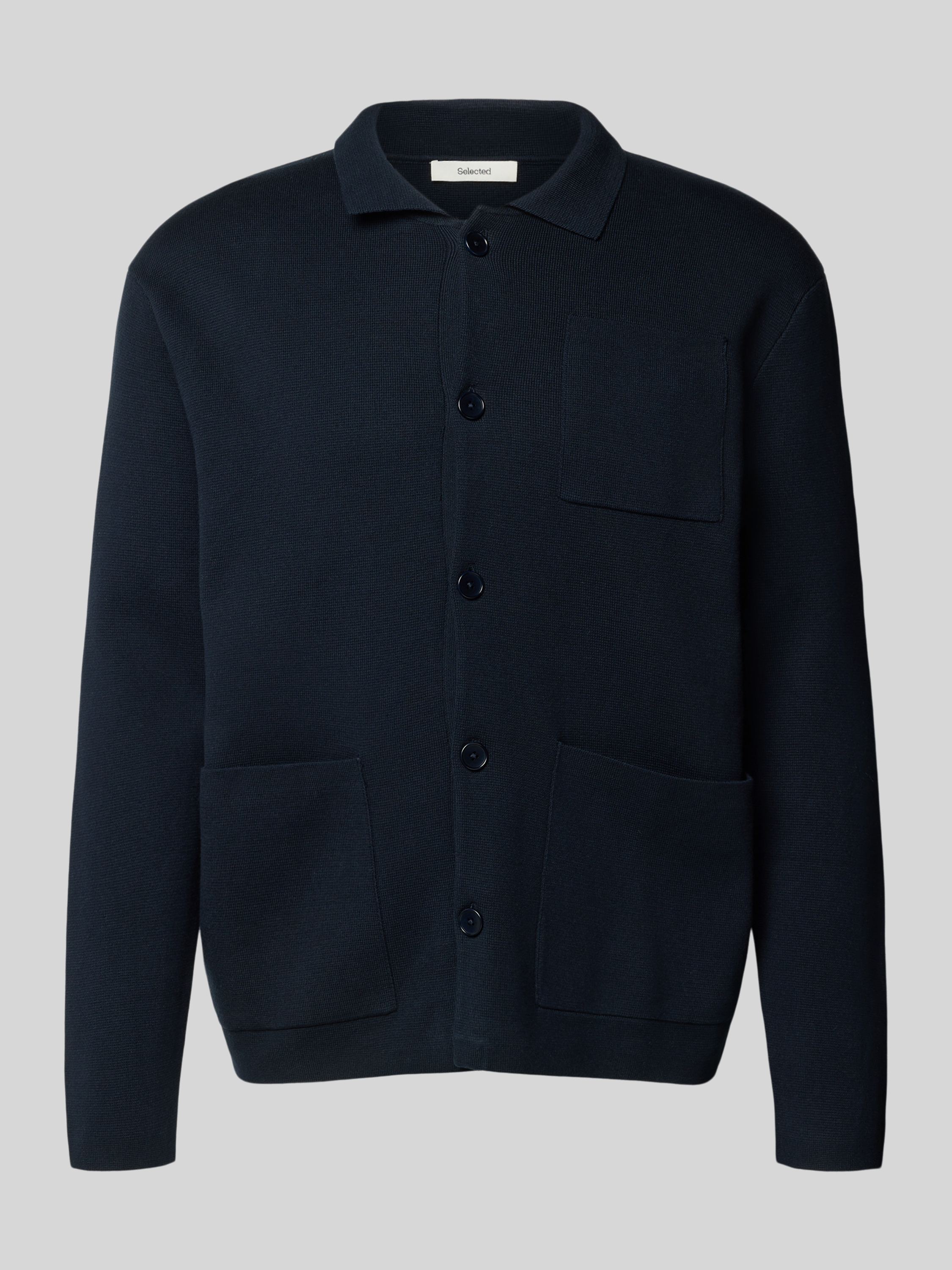 Relaxed fit gebreid jack van katoenmix, model 'MIKE' in donkerblauw