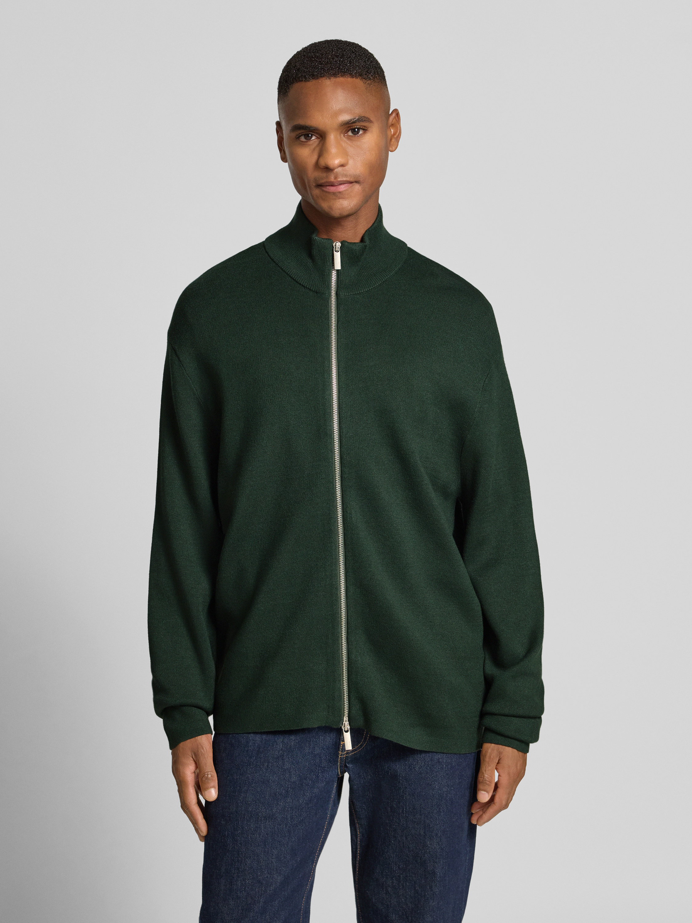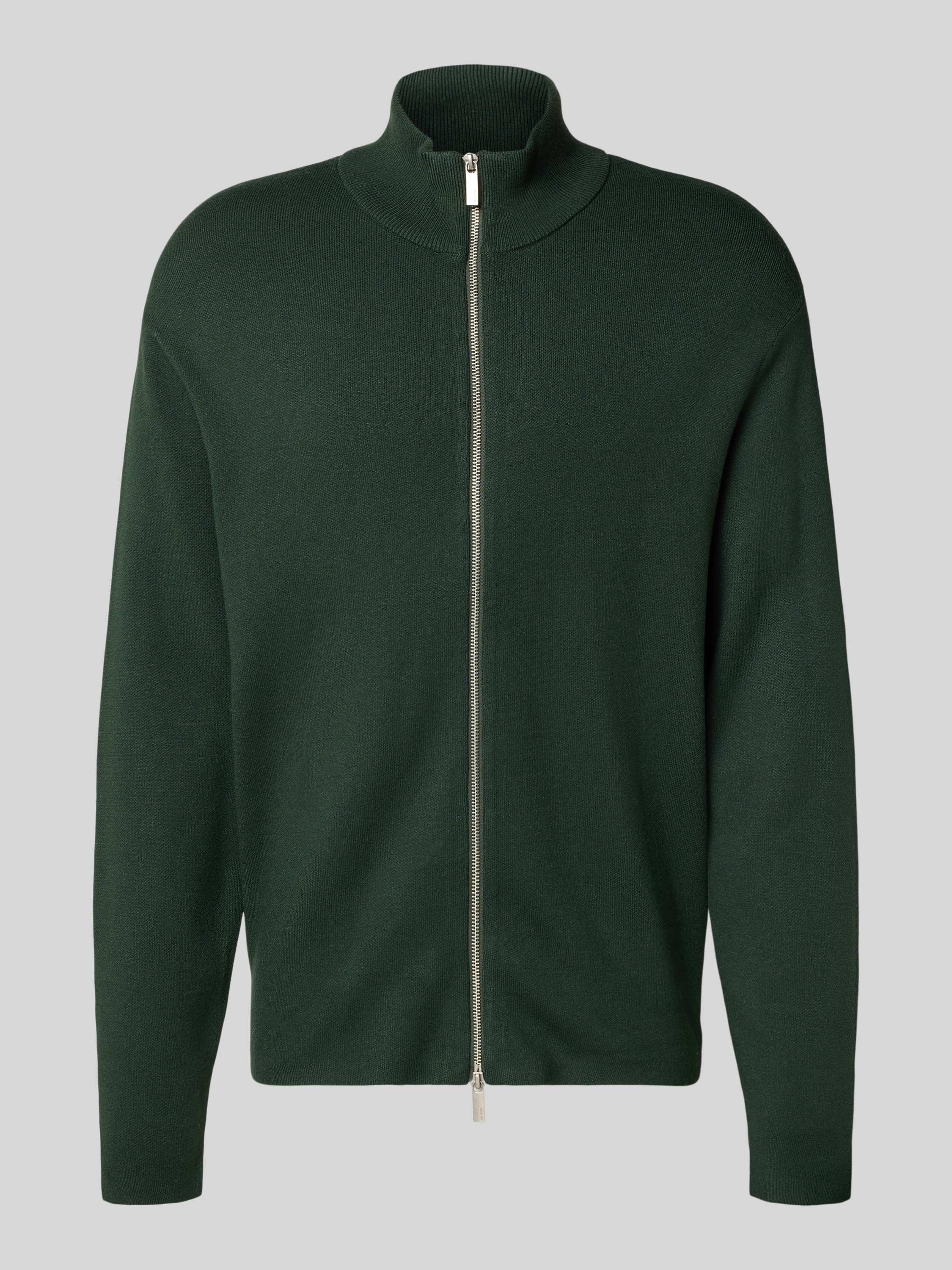 Relaxed fit gebreid jack van viscosemix, model 'TELLER' in donkergroen