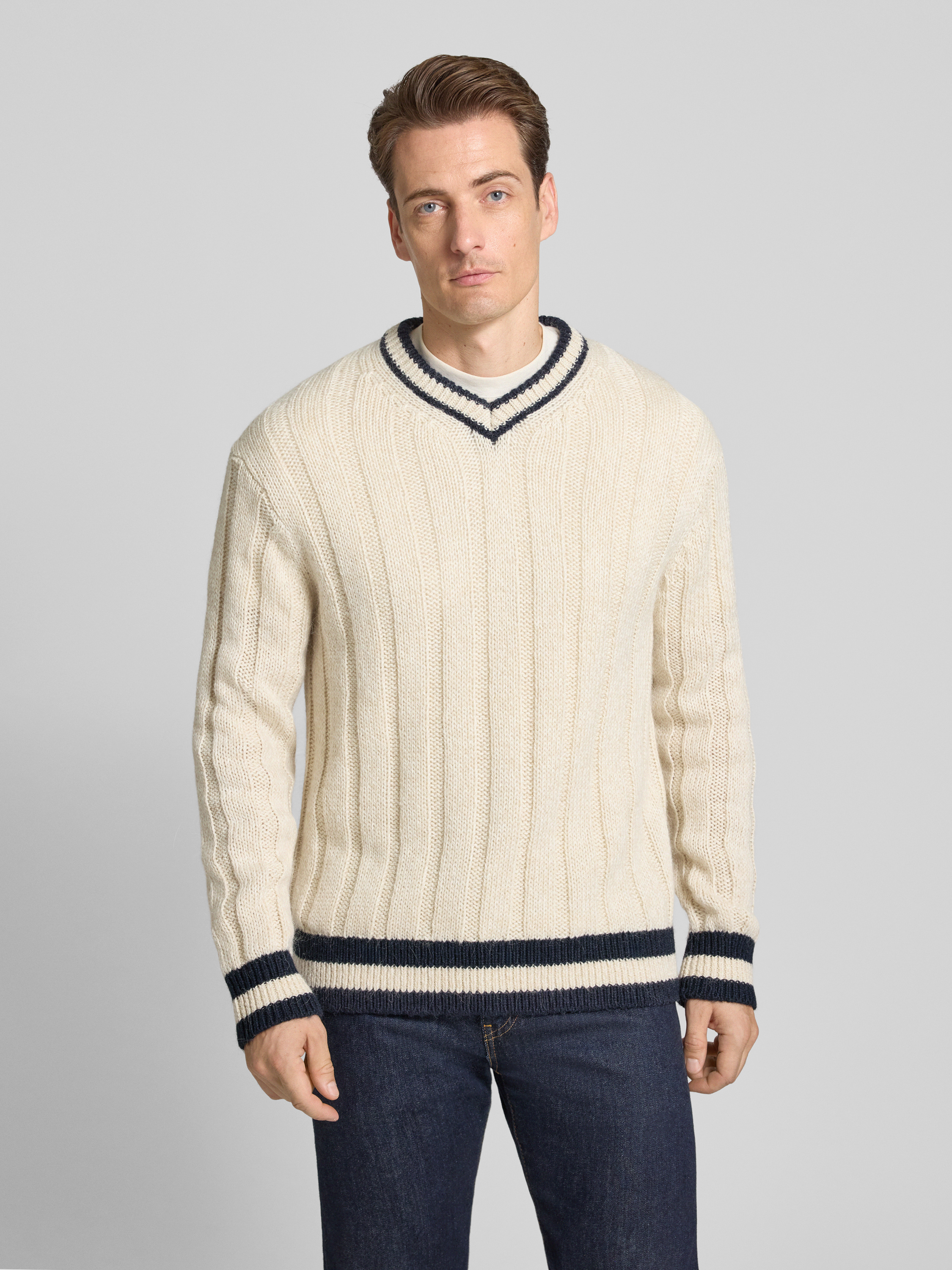 Relaxed fit gebreide pullover met wol, model 'ROY' in offwhite