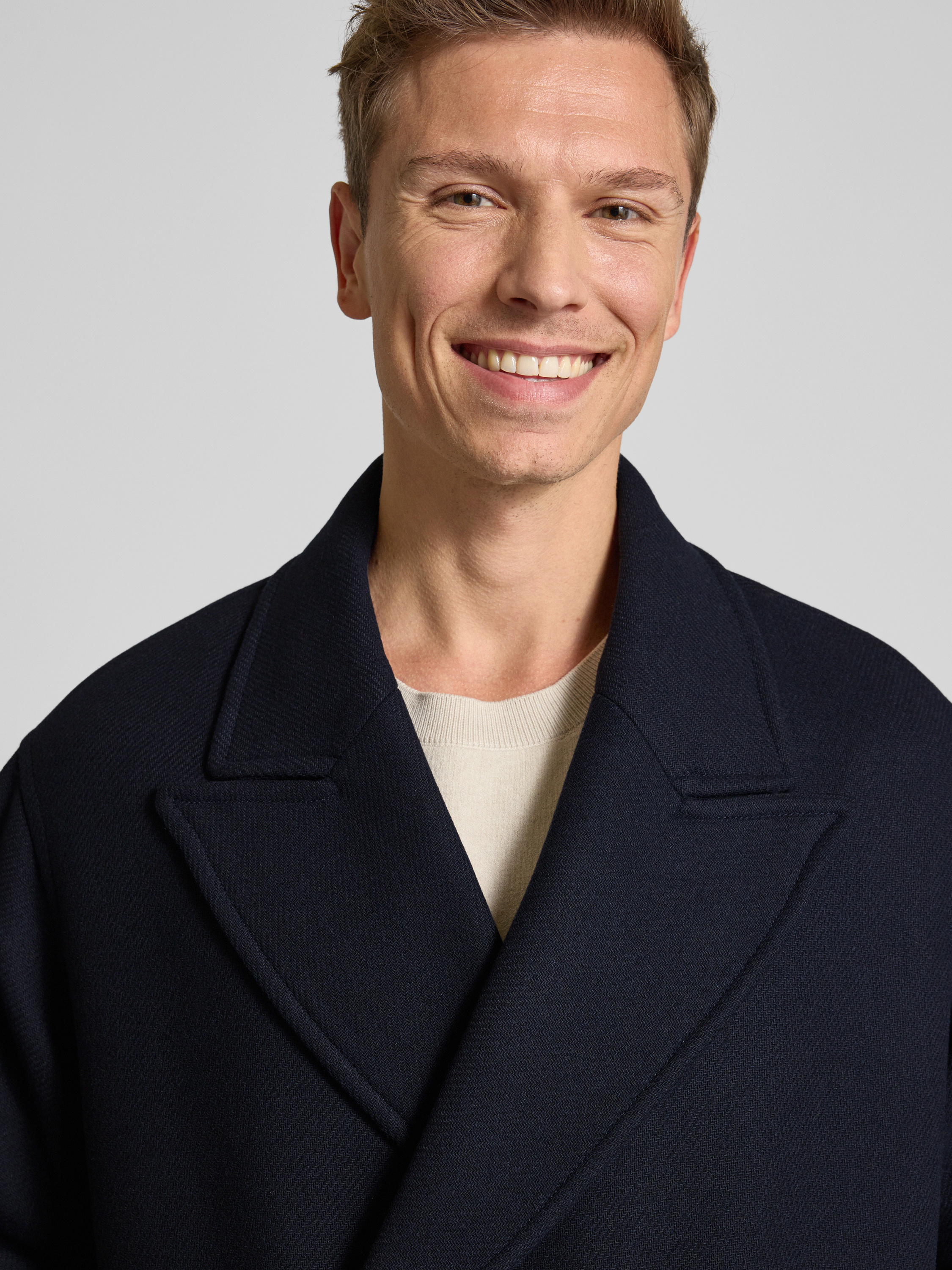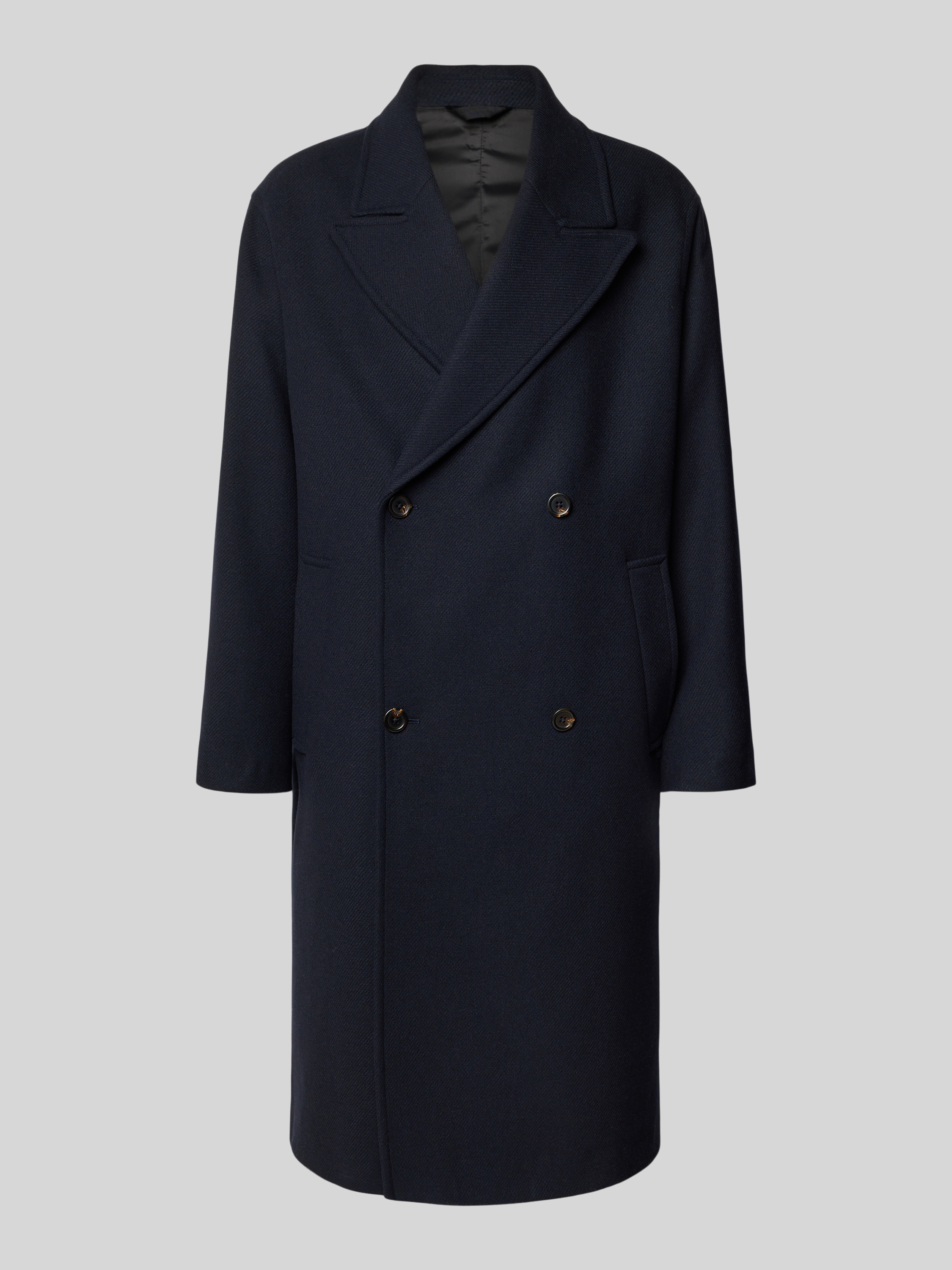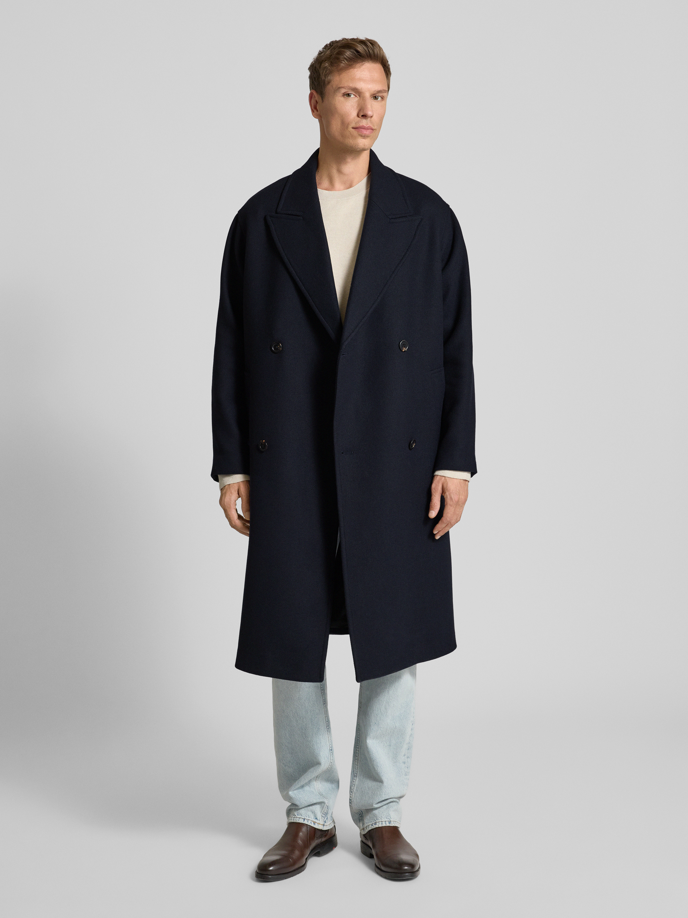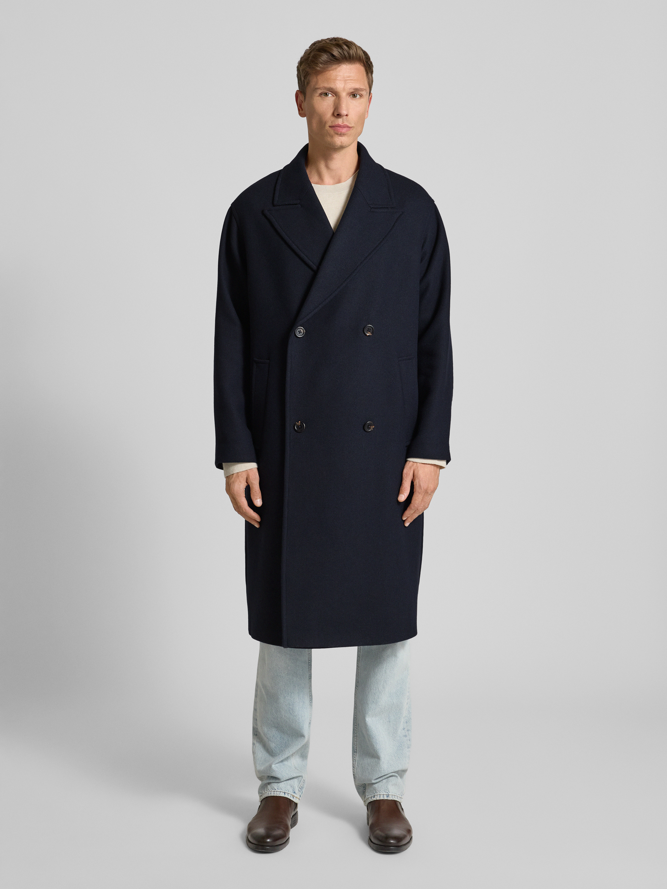 Relaxed fit lange jas van wolmix, model 'SIMON' in donkerblauw