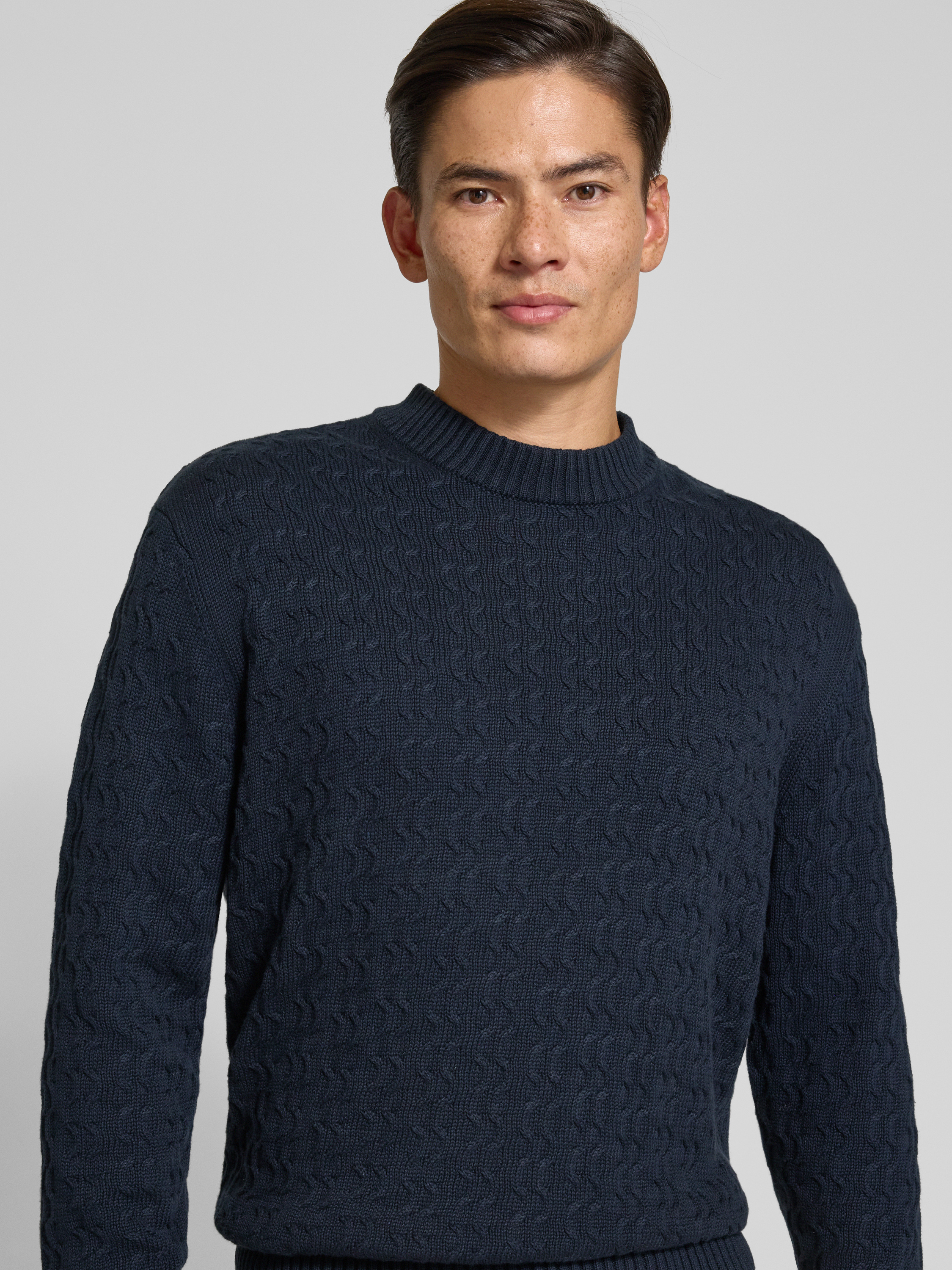 SELECTED HOMMERelaxed fit pullover van puur katoen, model 'PHILIP' in donkerblauw