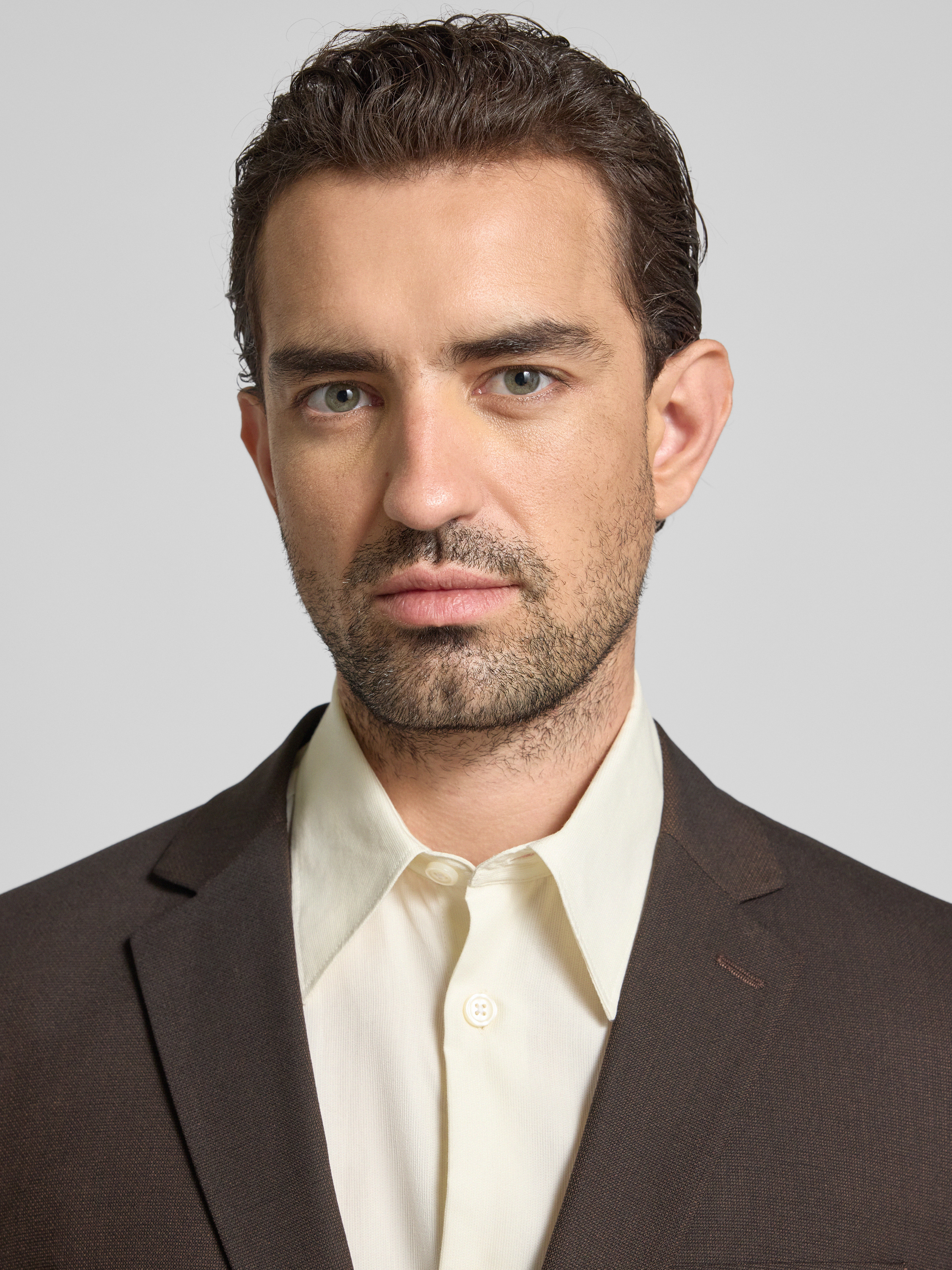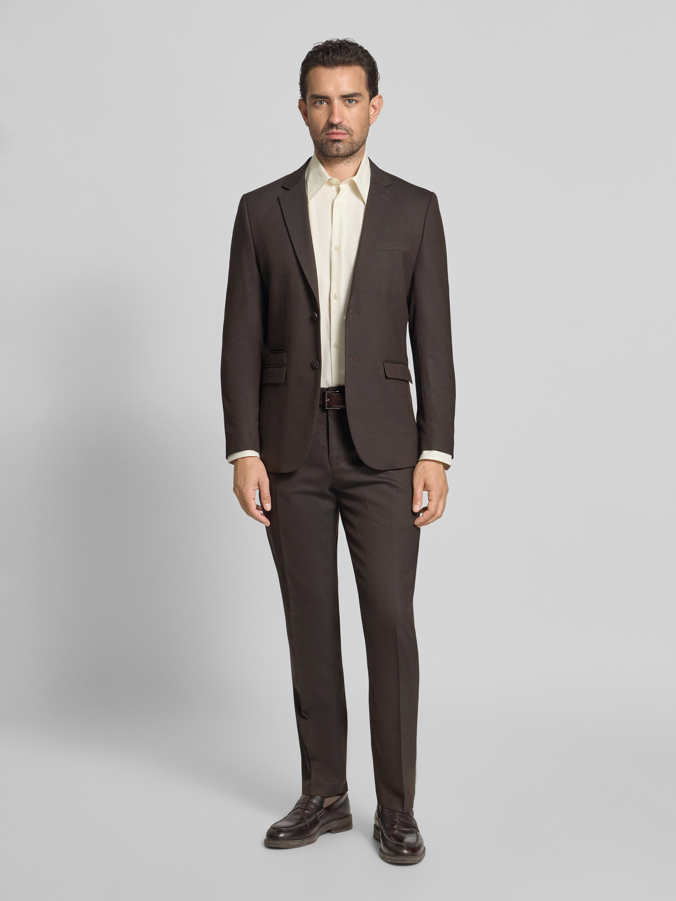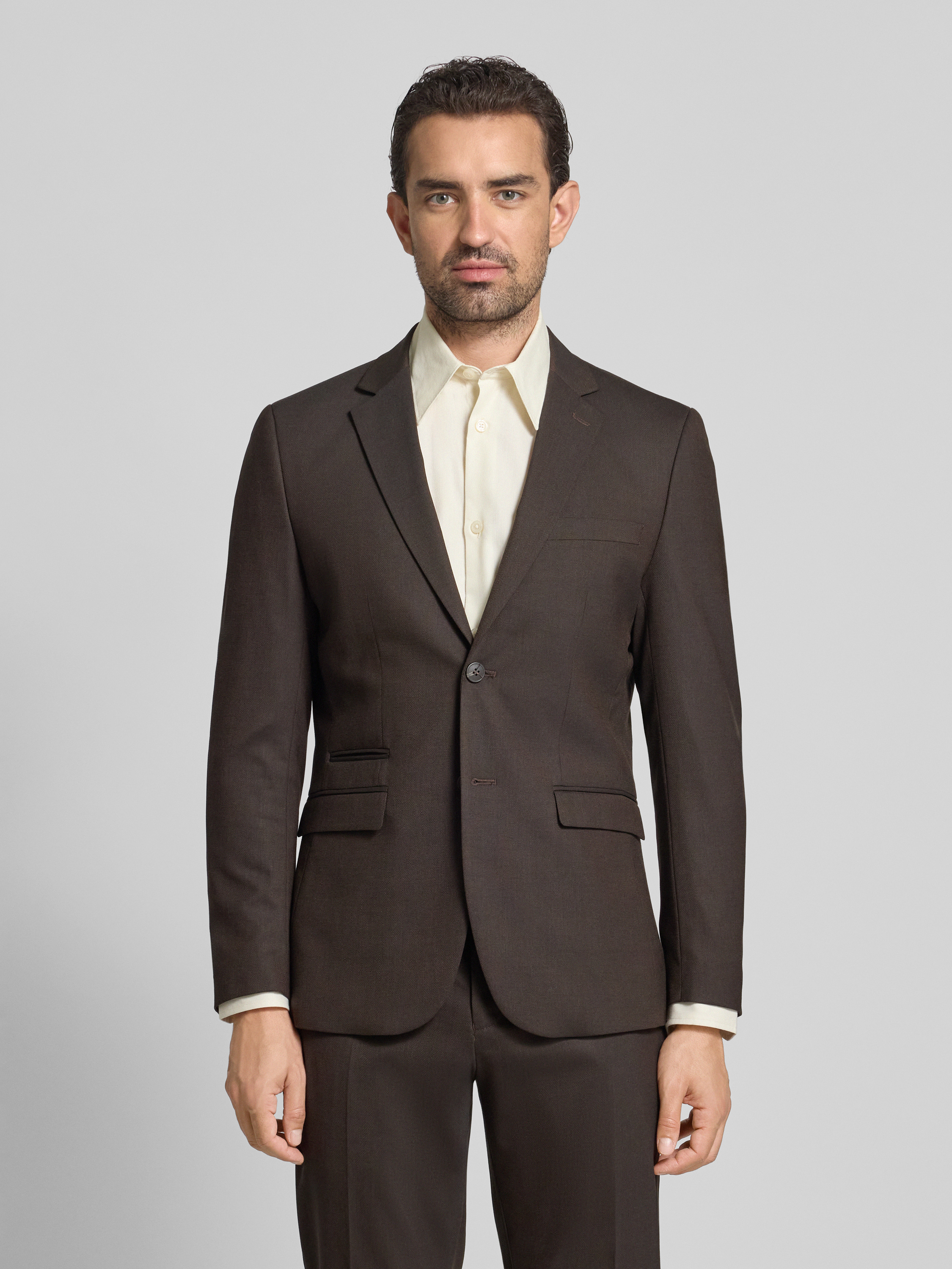 Slim fit colbert met wol, model 'NEIL' in donkerbruin
