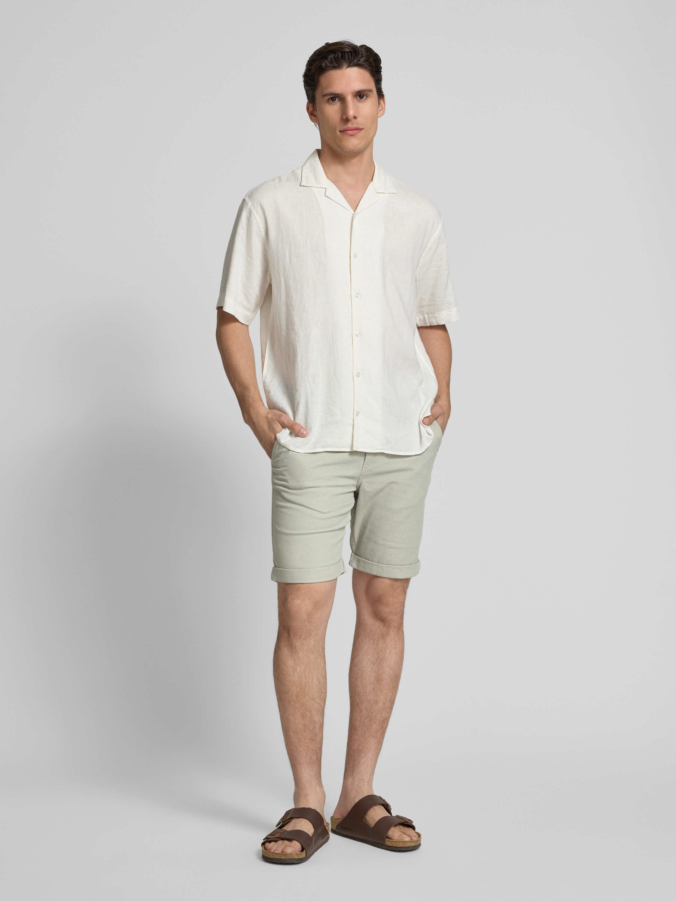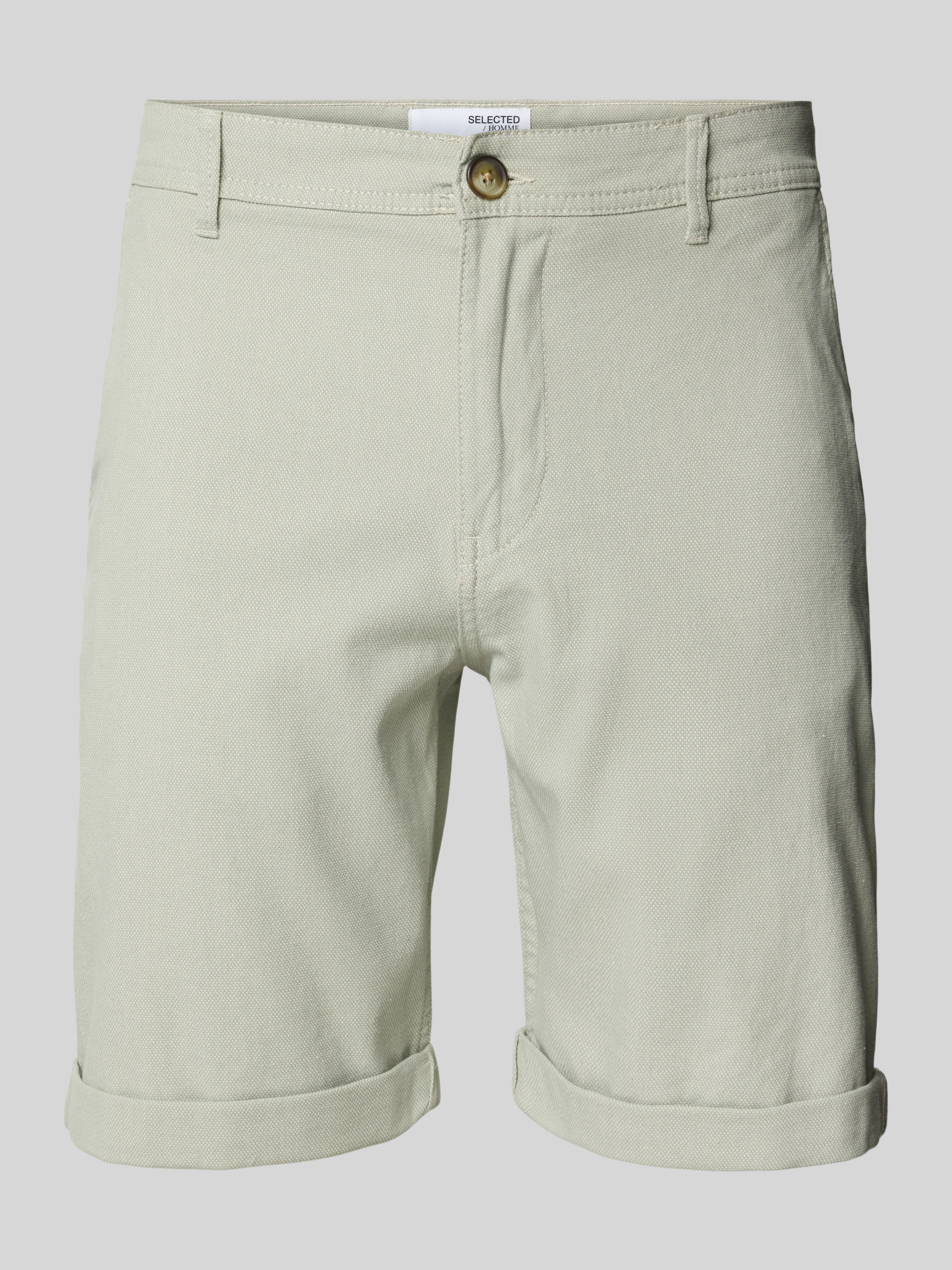 Slim fit korte broek met structuurmotief, model 'LUTON' in rietgroen