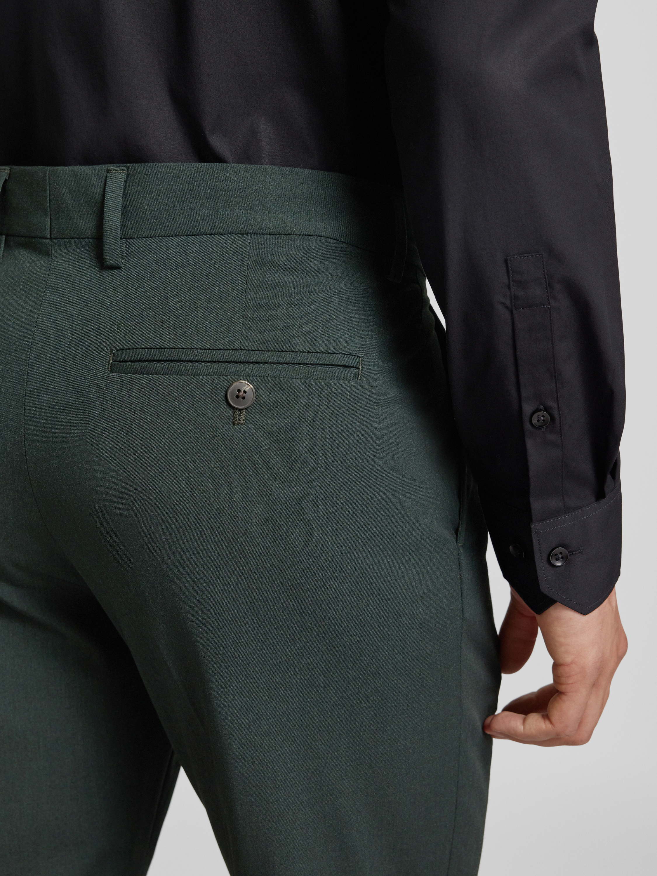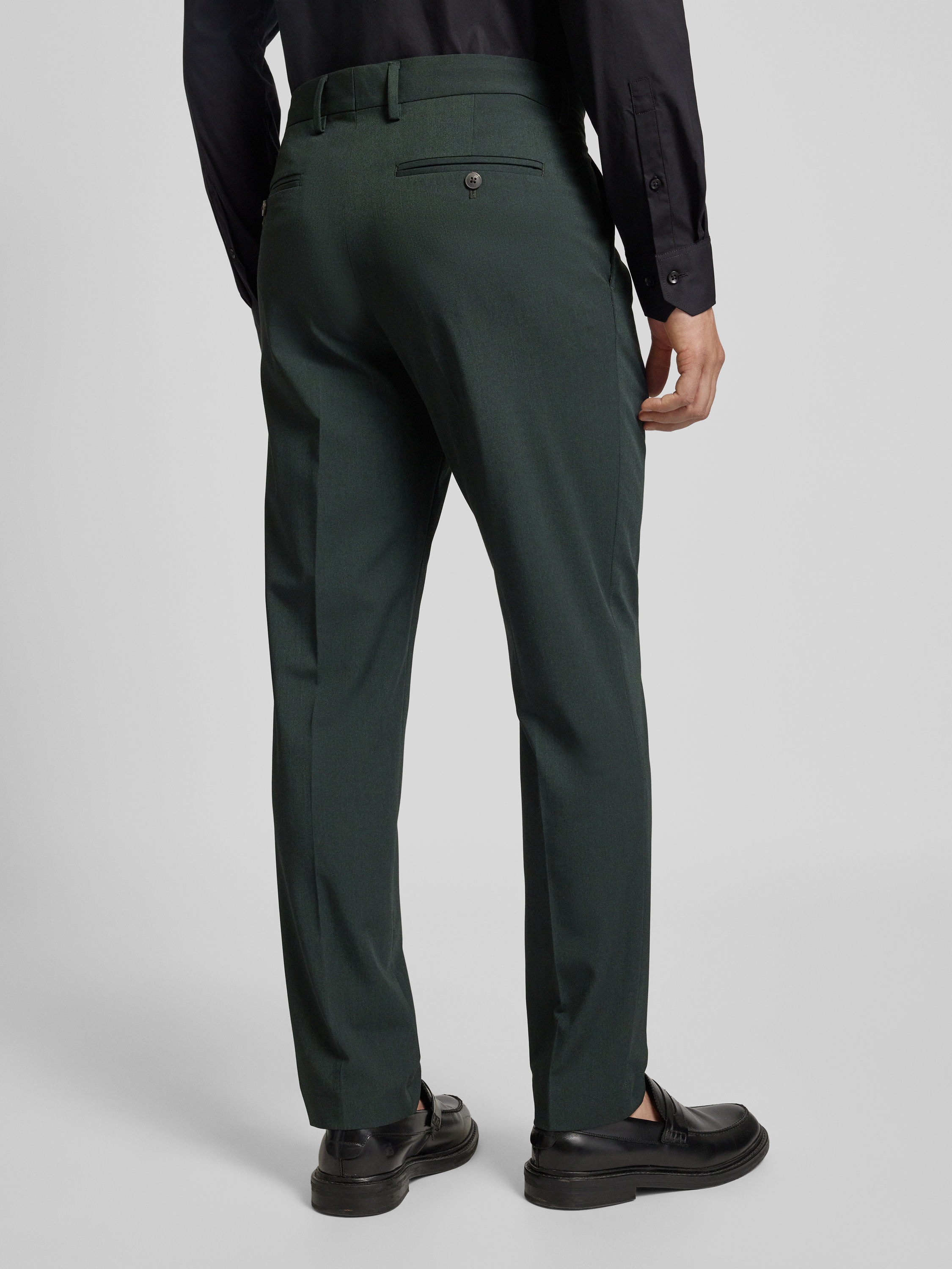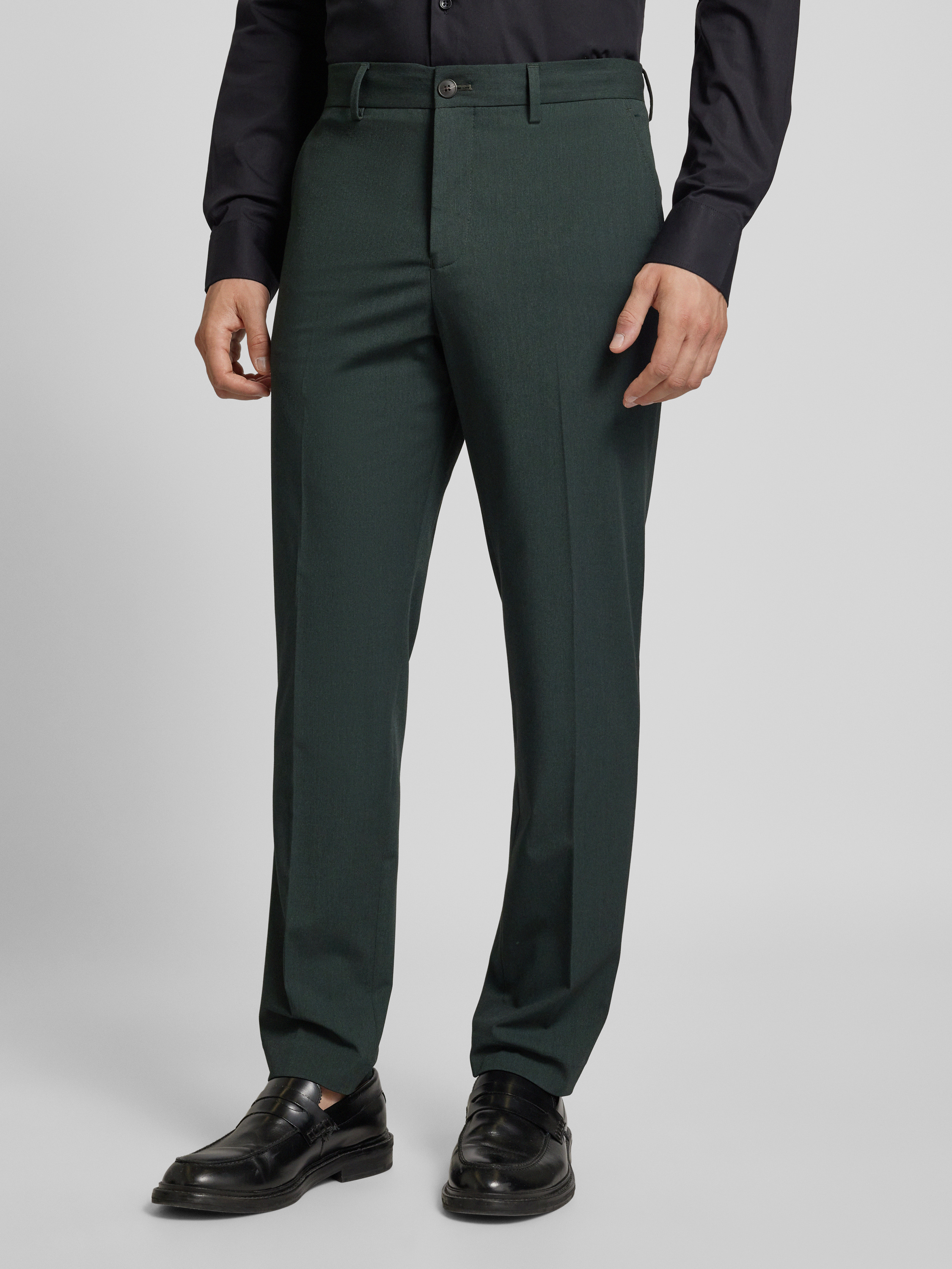 Slim fit pantalon met knoop- en ritssluiting in donkergroen
