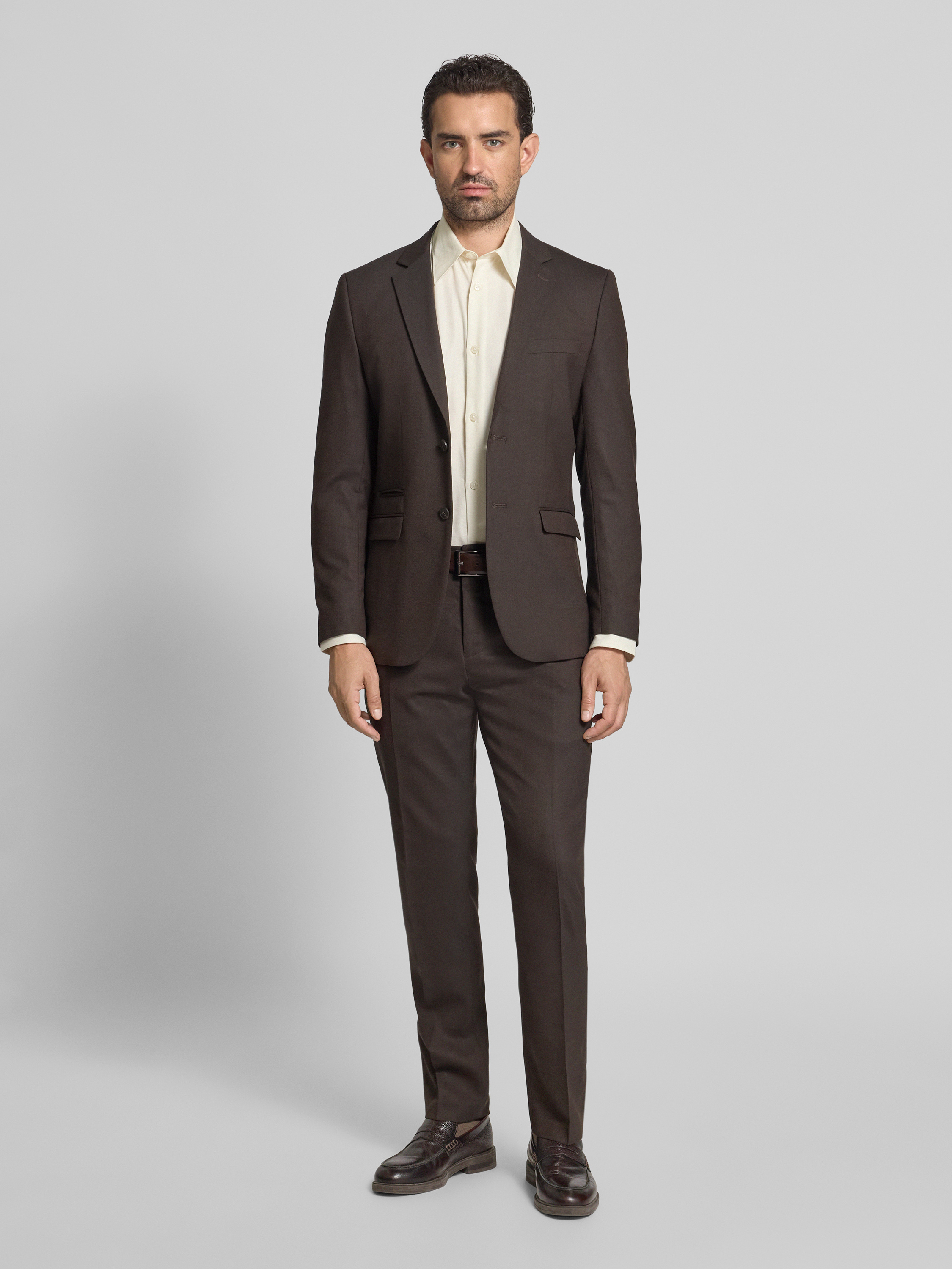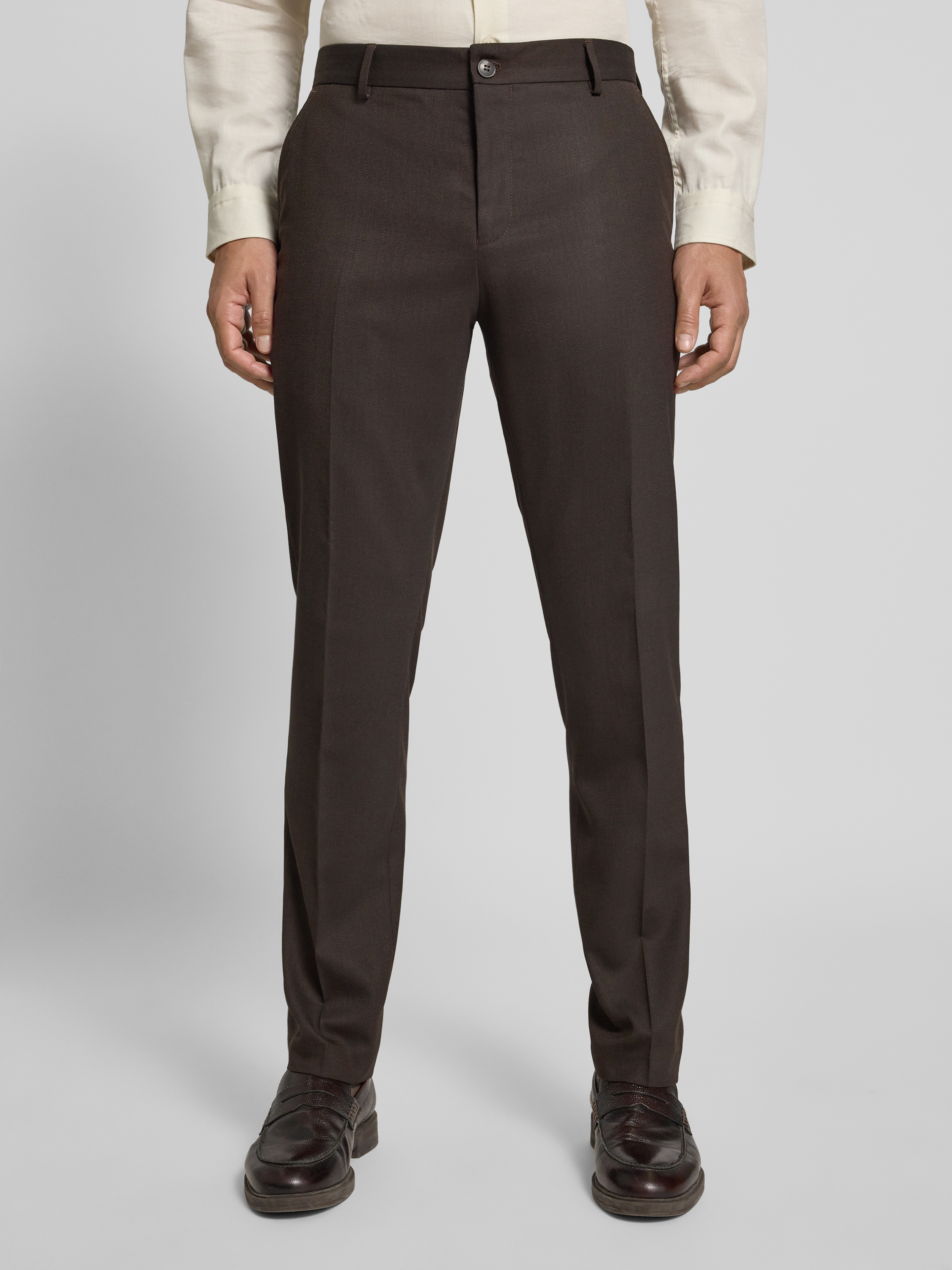 SELECTED HOMMESlim fit pantalon met wol, model 'NEIL' in donkerbruin