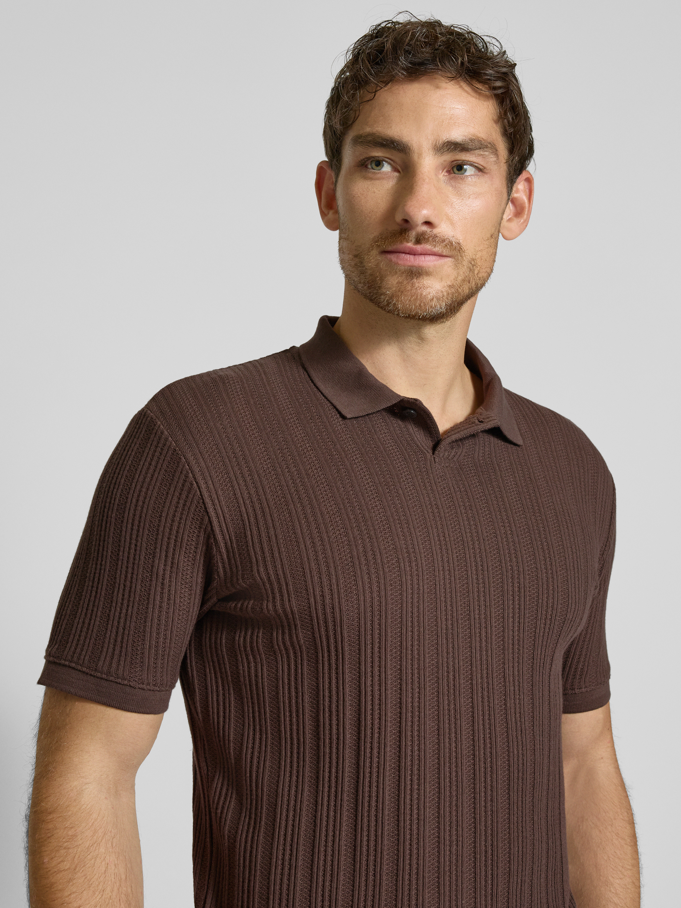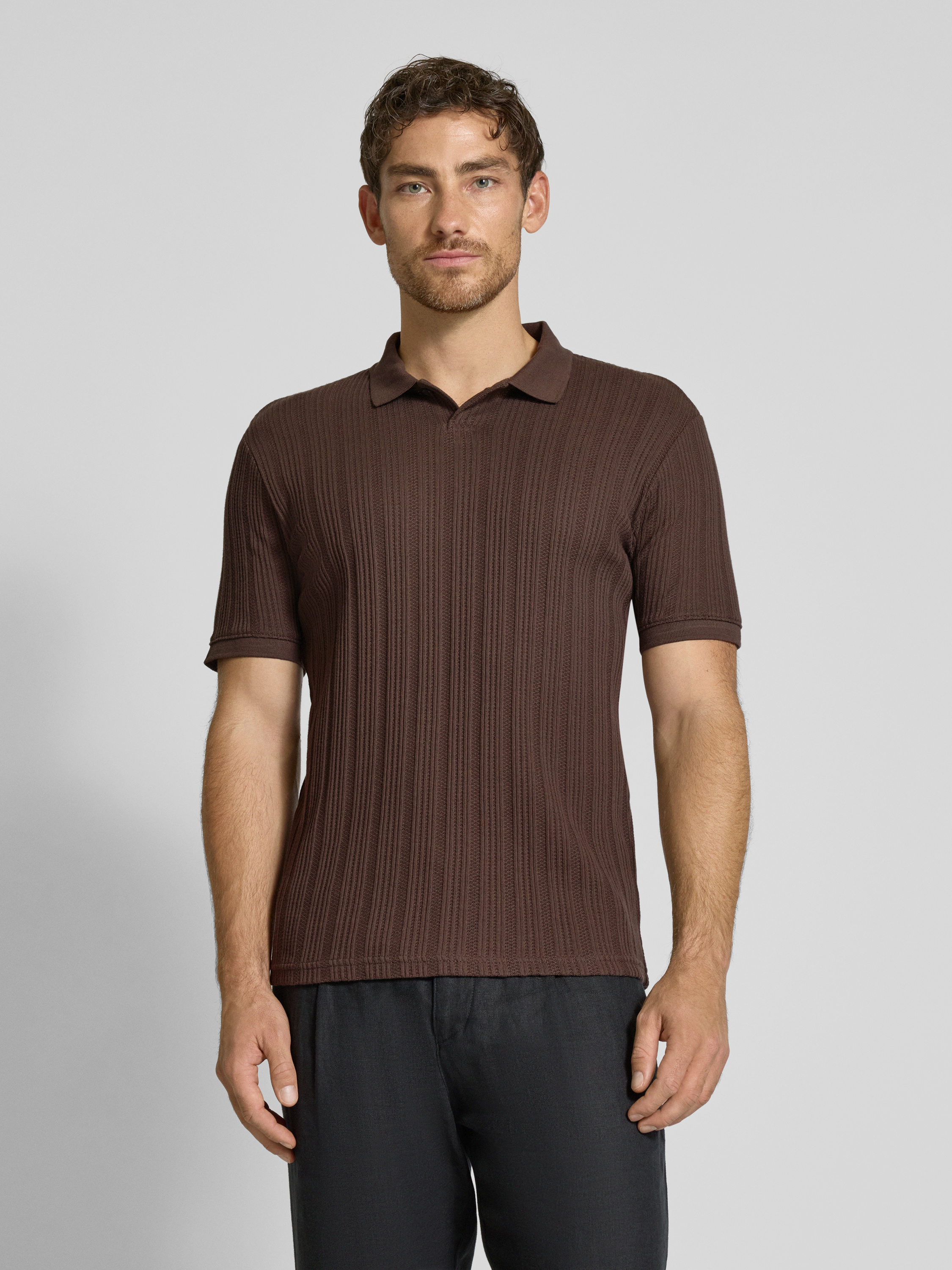 Slim fit poloshirt met structuurmotief, model 'JADEN' in donkerbruin