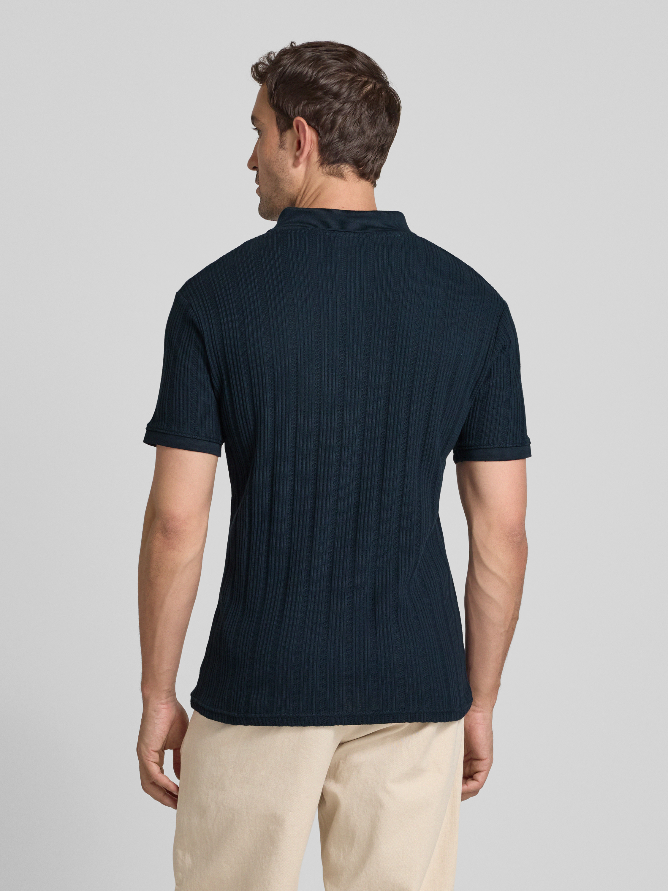 Slim fit poloshirt met structuurmotief, model 'JADEN' in marineblauw