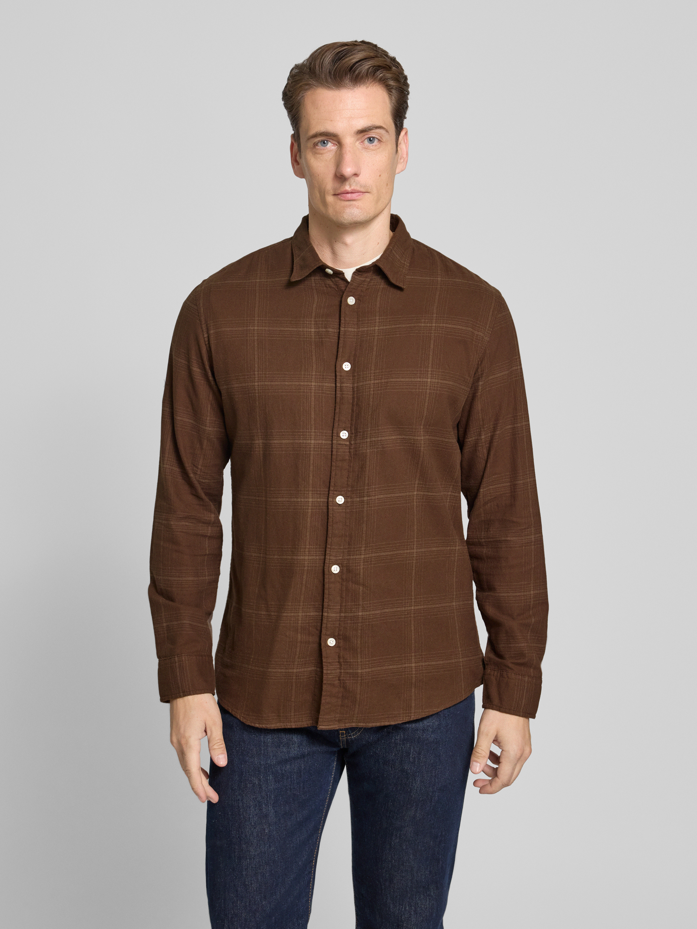 Slim fit vrijetijdsoverhemd van puur katoen, model 'SLIMOWEN' in donkerbruin