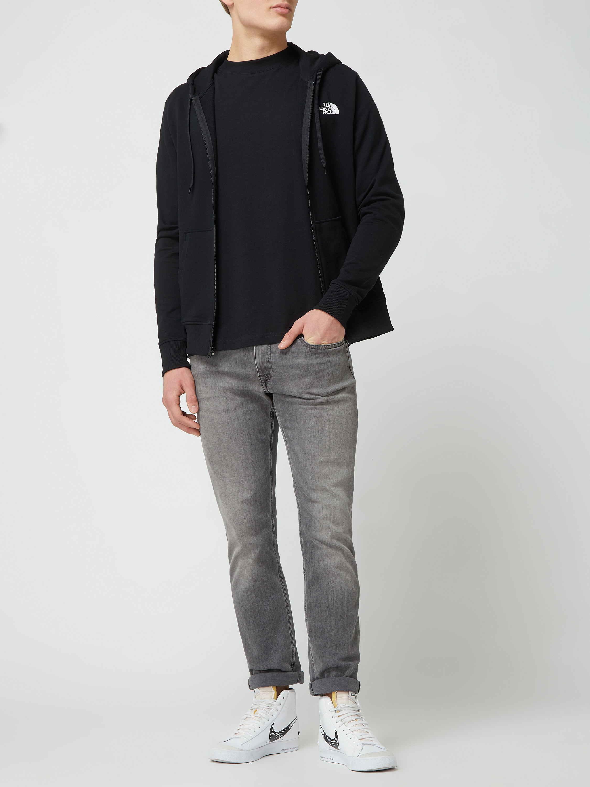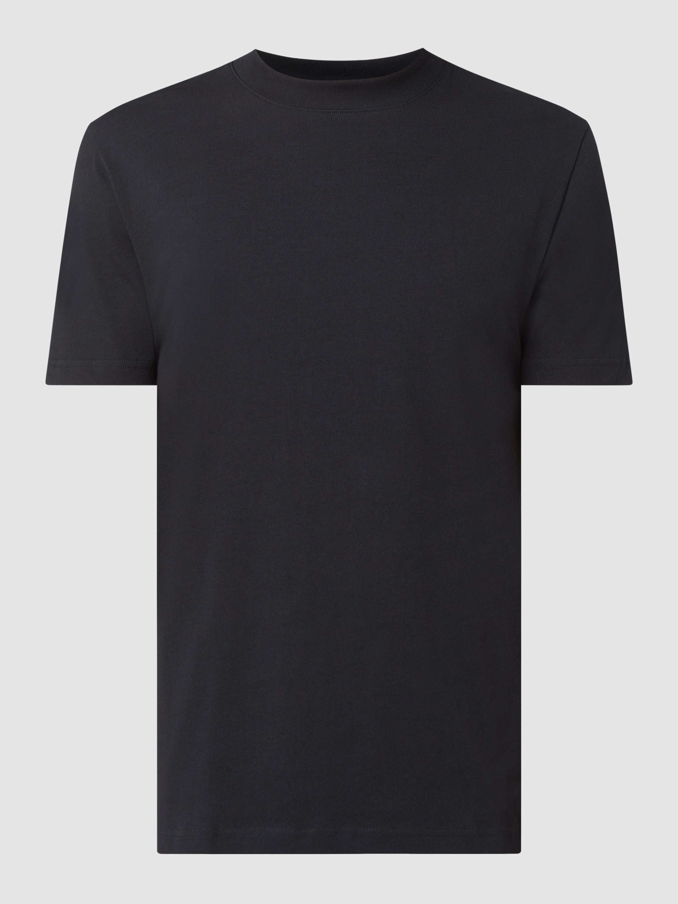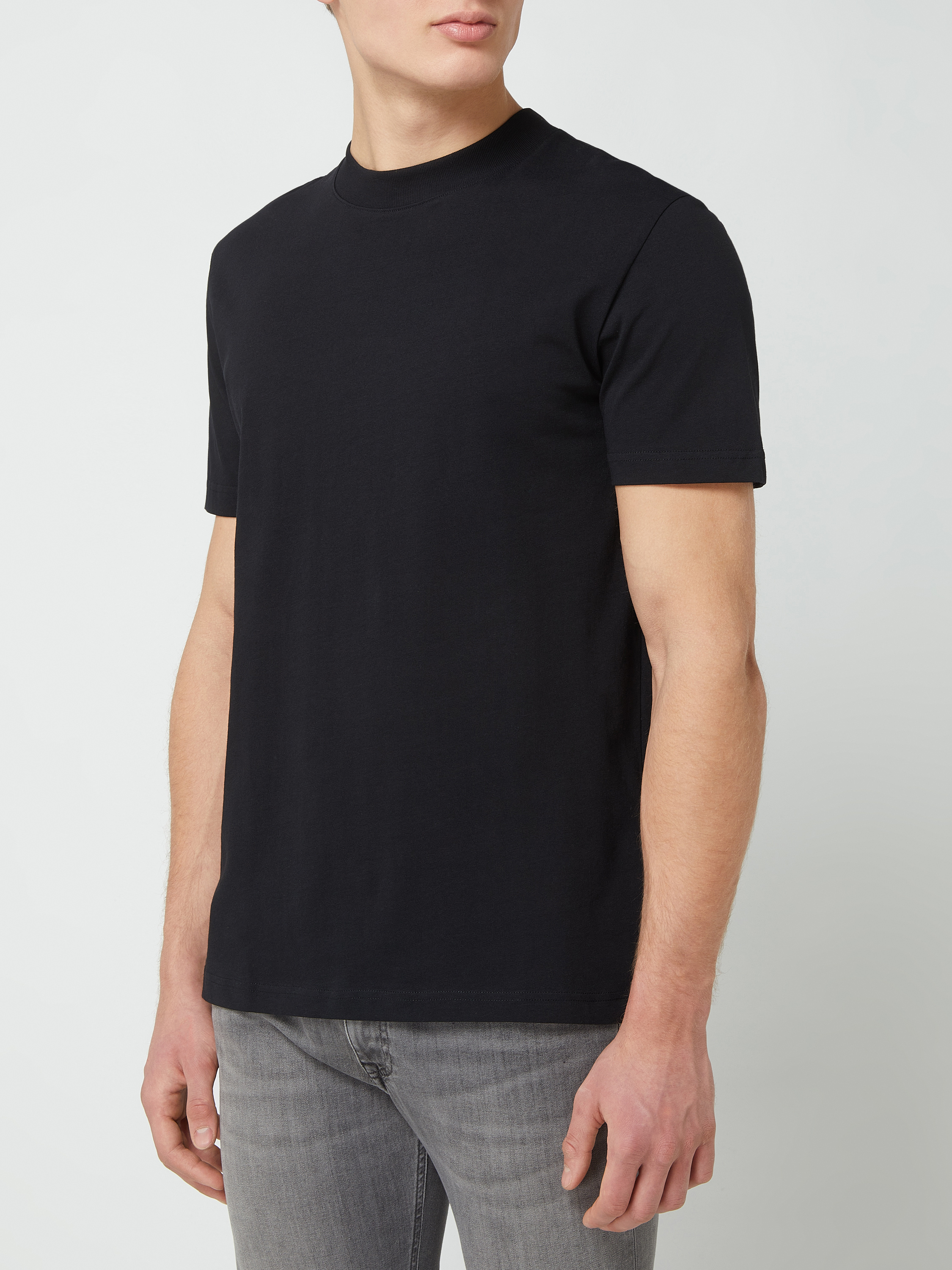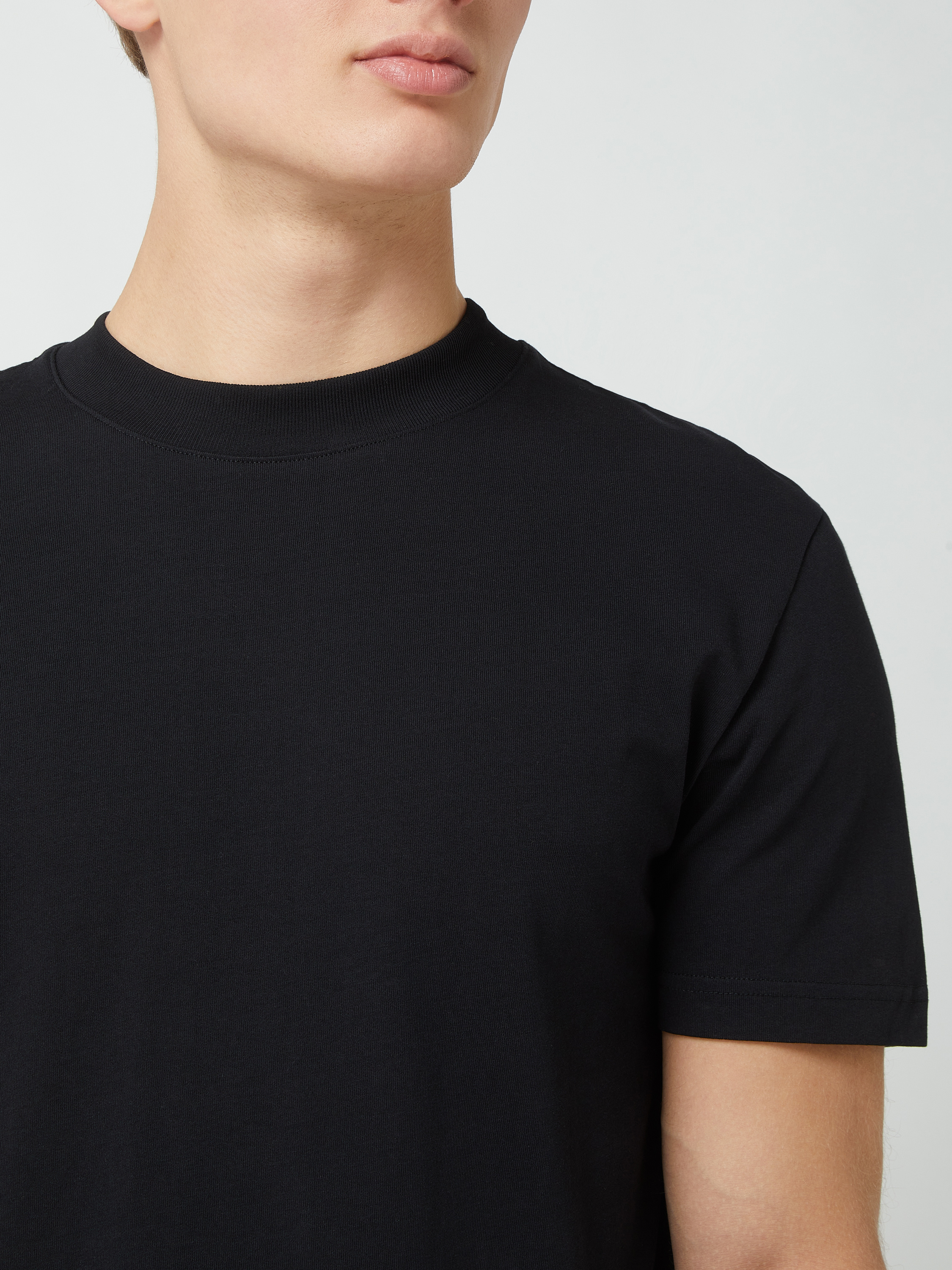 T-shirt met geribde ronde hals, model 'RELAXCOLMAN' in zwart