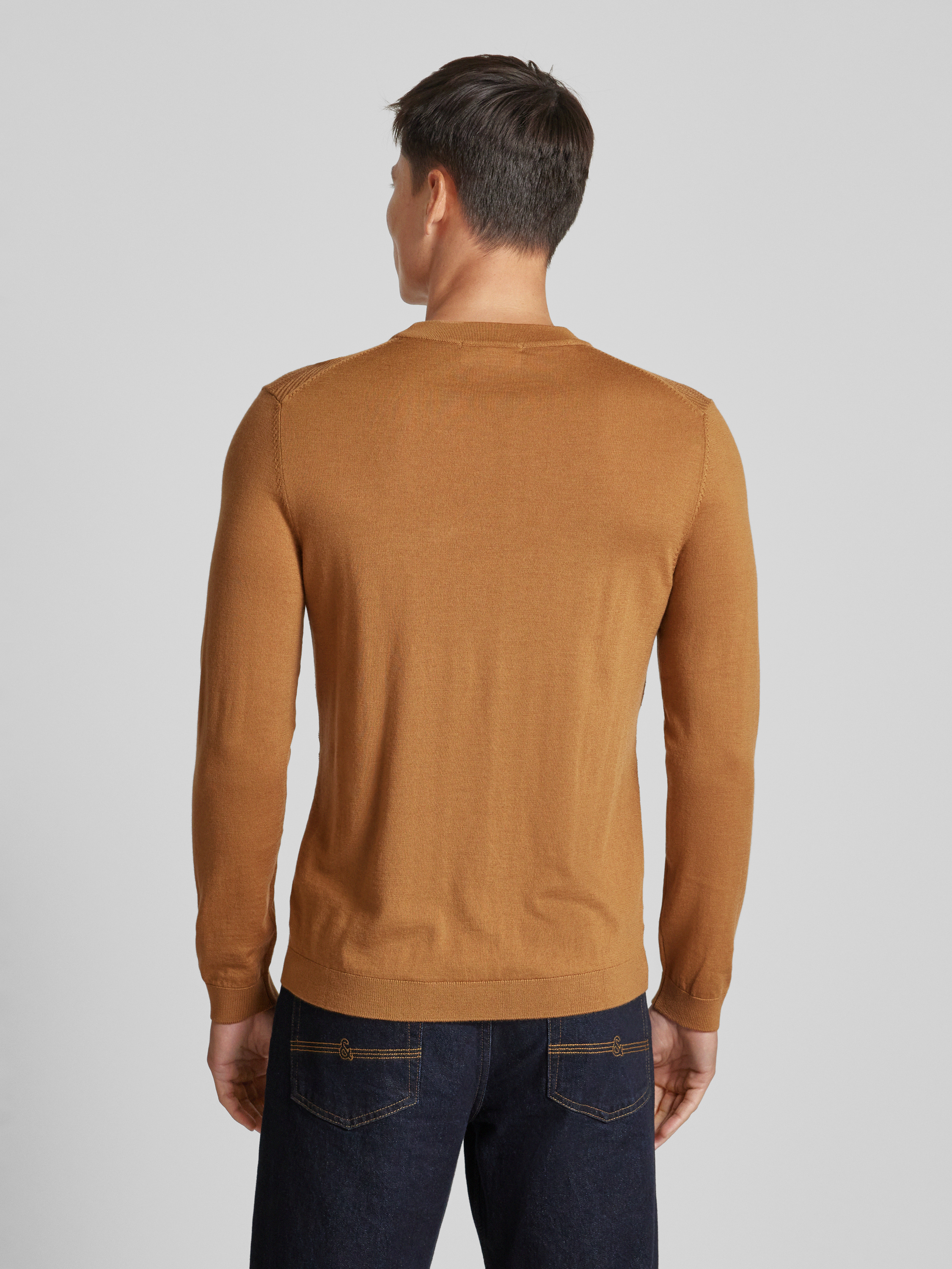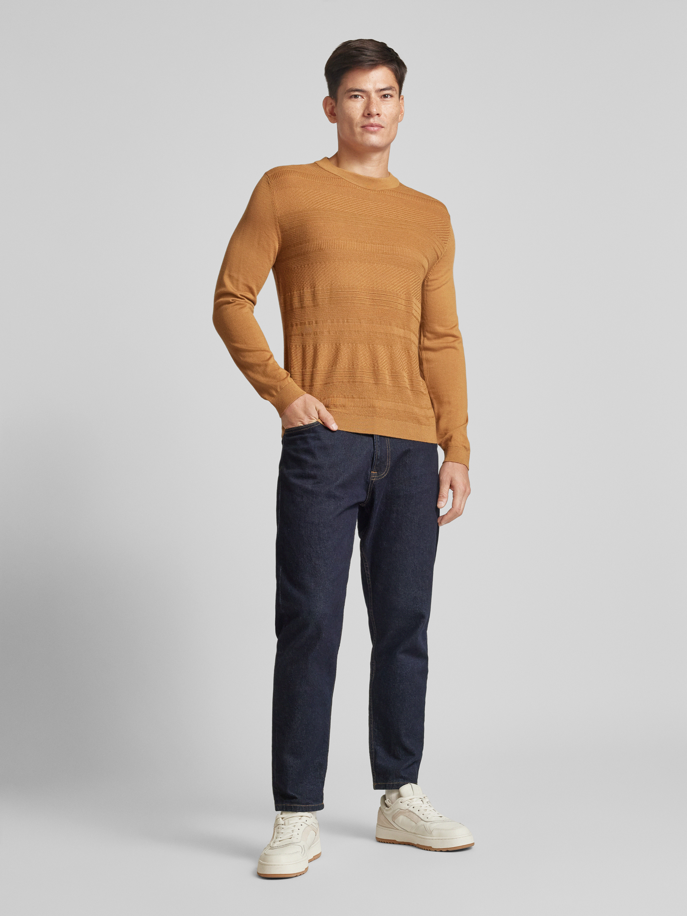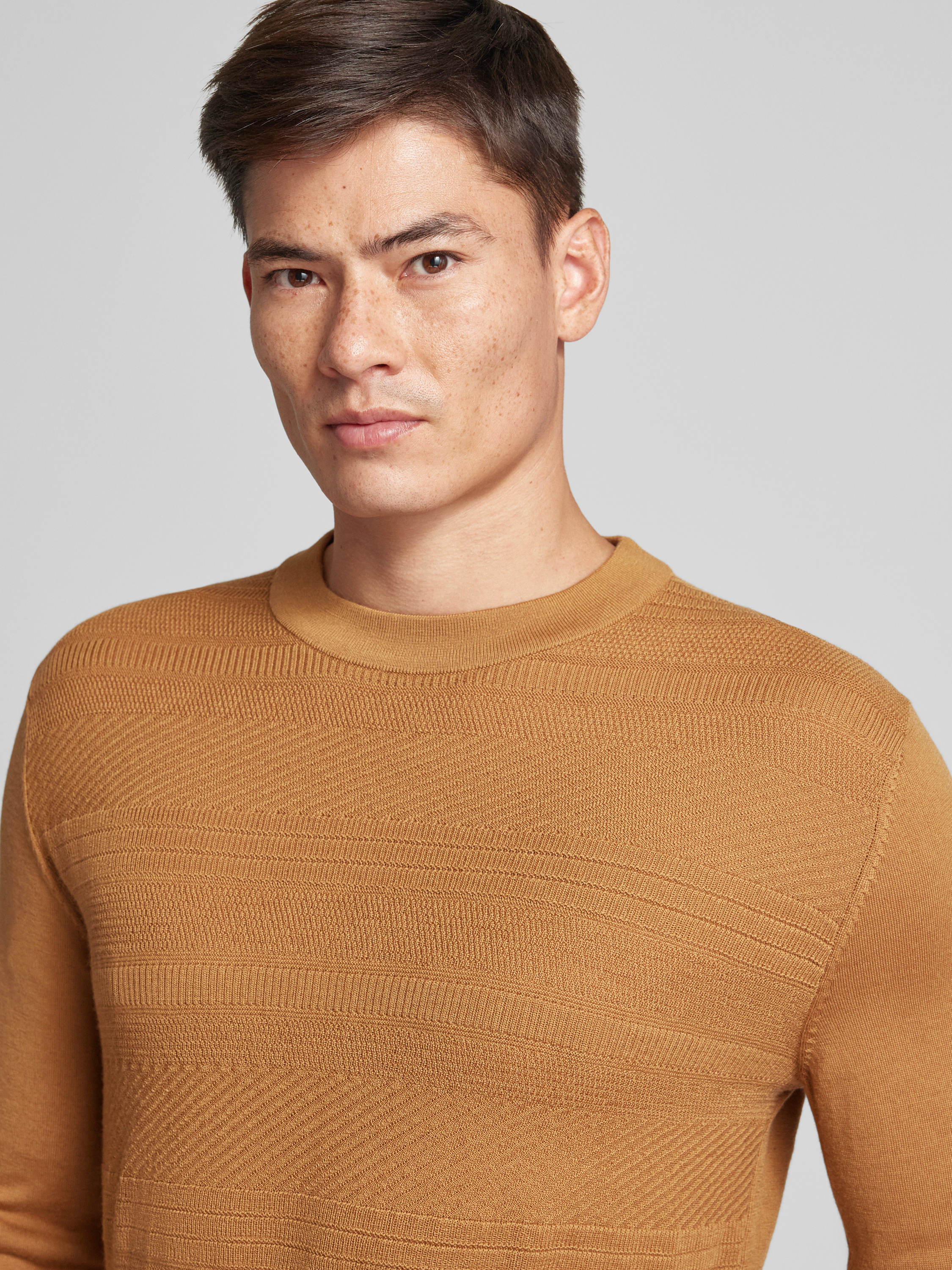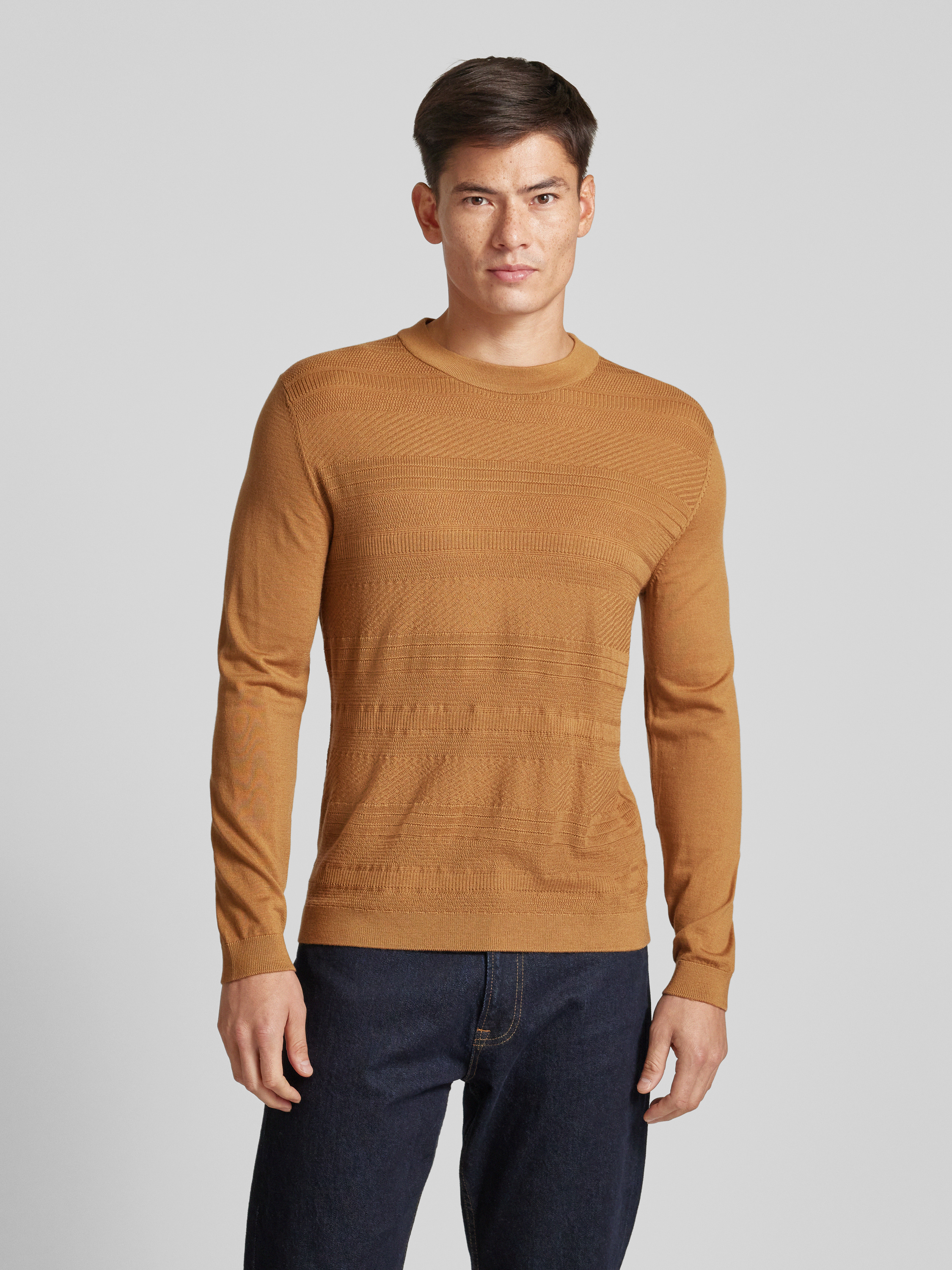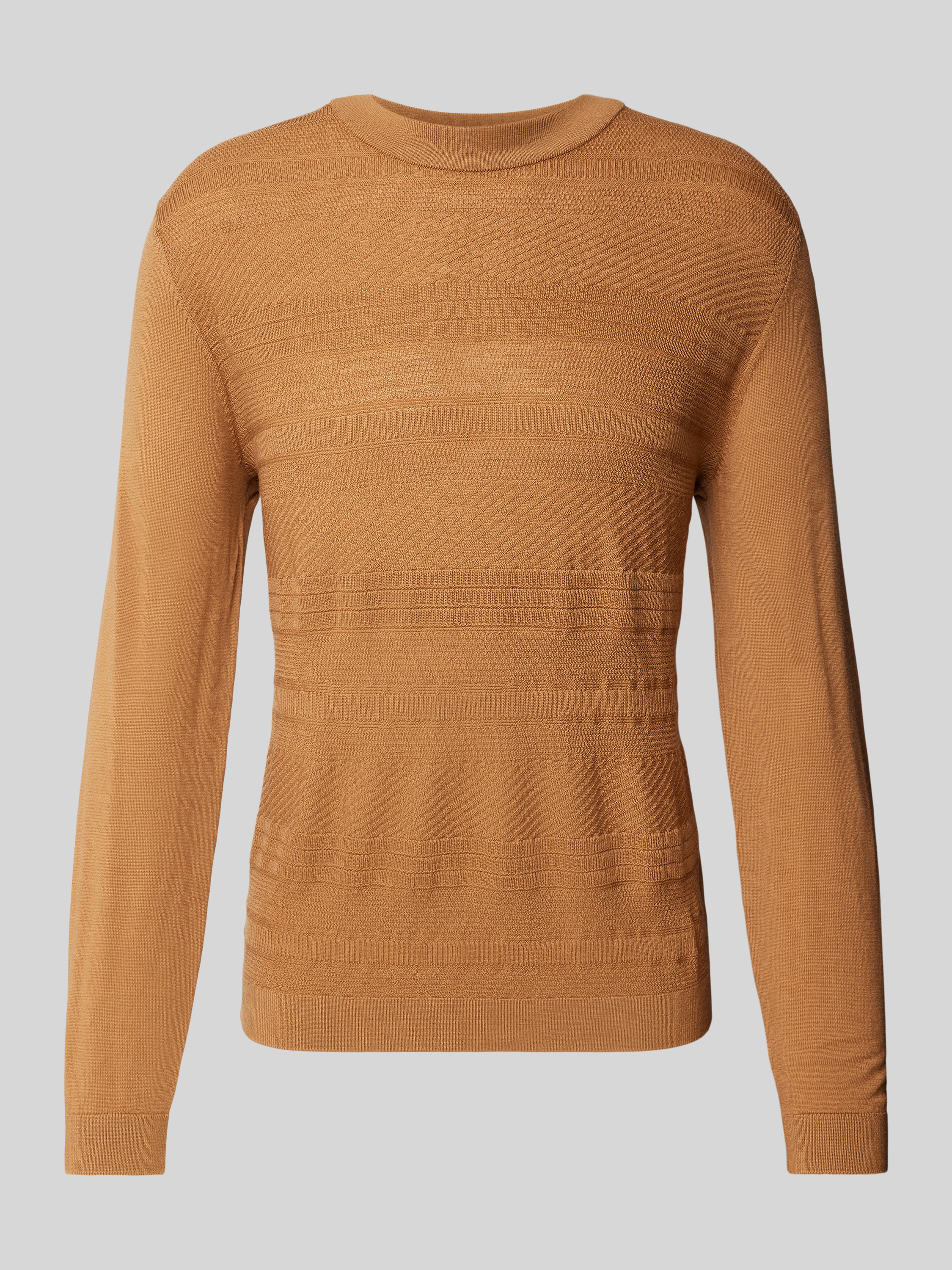 SELECTED HOMMEWollen pullover met structuurmotief, model 'TRAY' in cognac