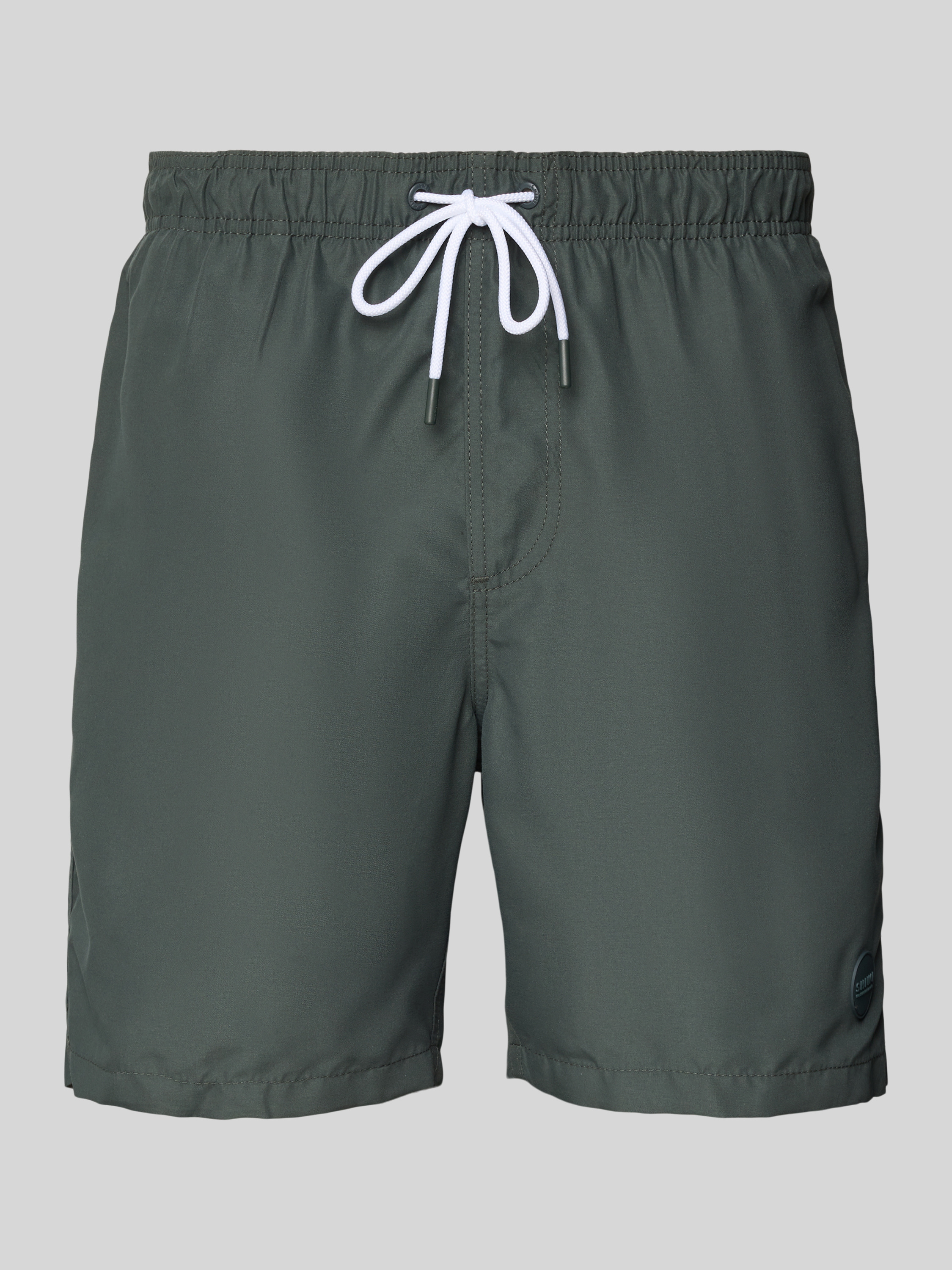Regular fit zwembroek met labelpatch, model 'Mike' in olijfgroen