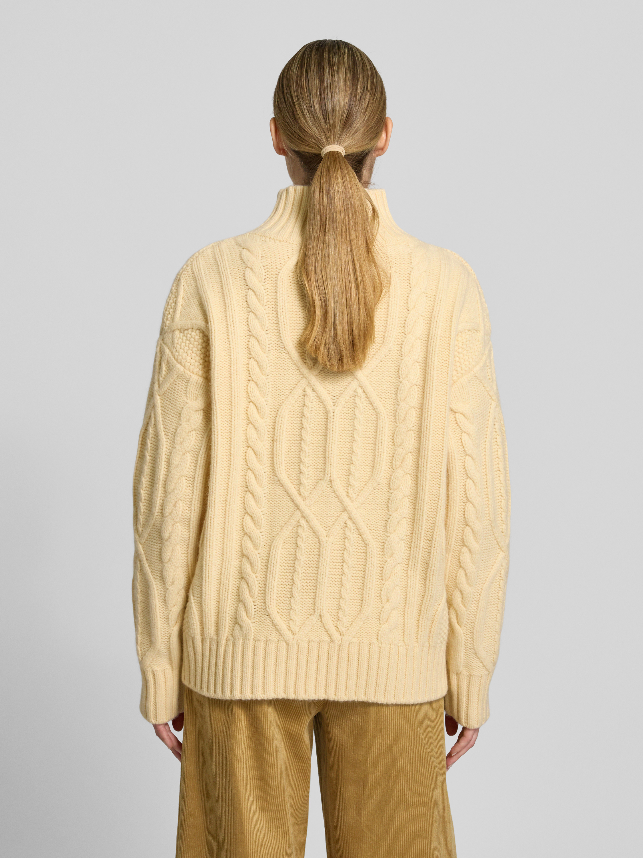 Oversized wollen pullover met kabelpatroon en geribde opstaande kraag - curated by Maja Weyhe in pastelgeel
