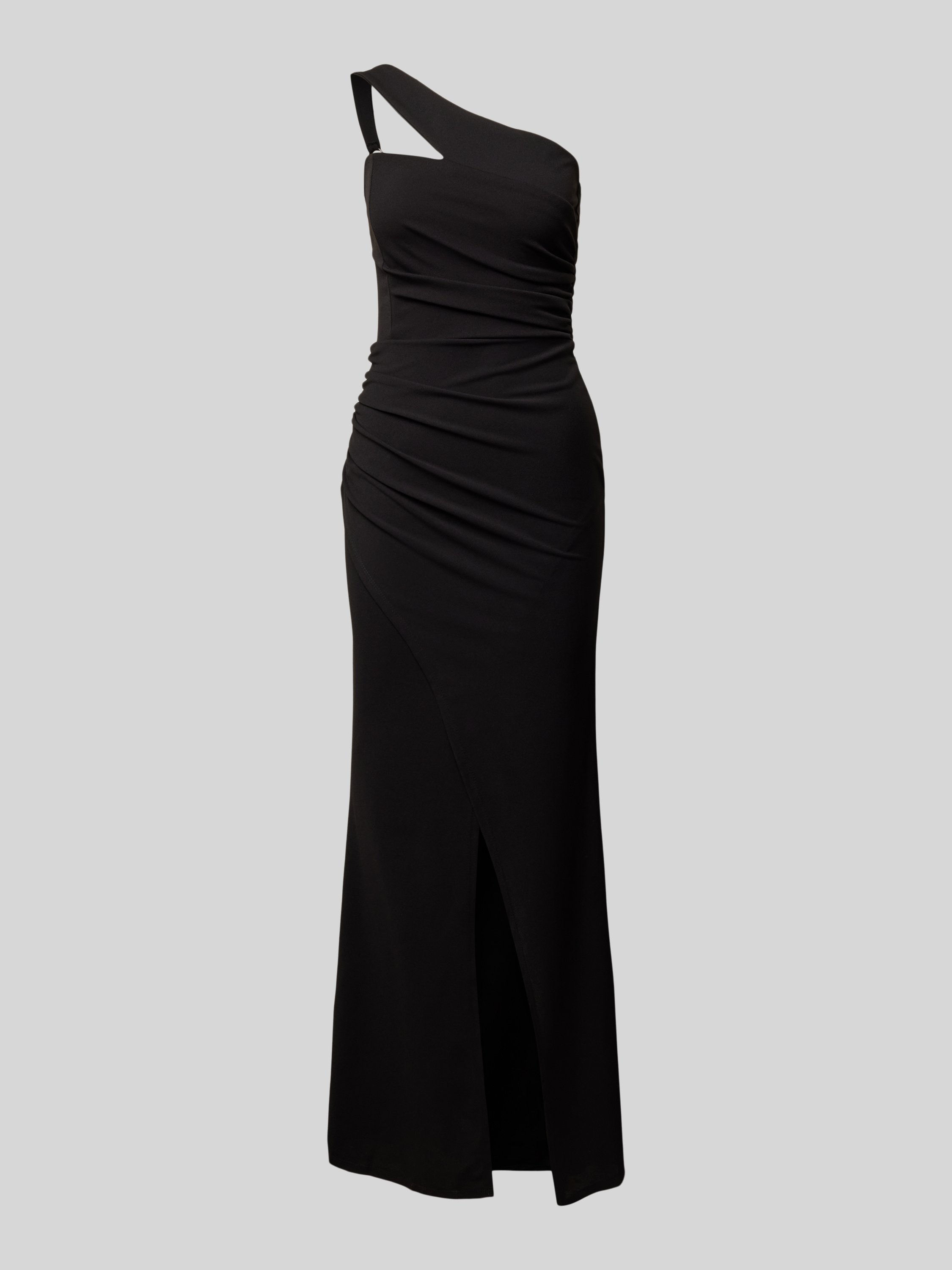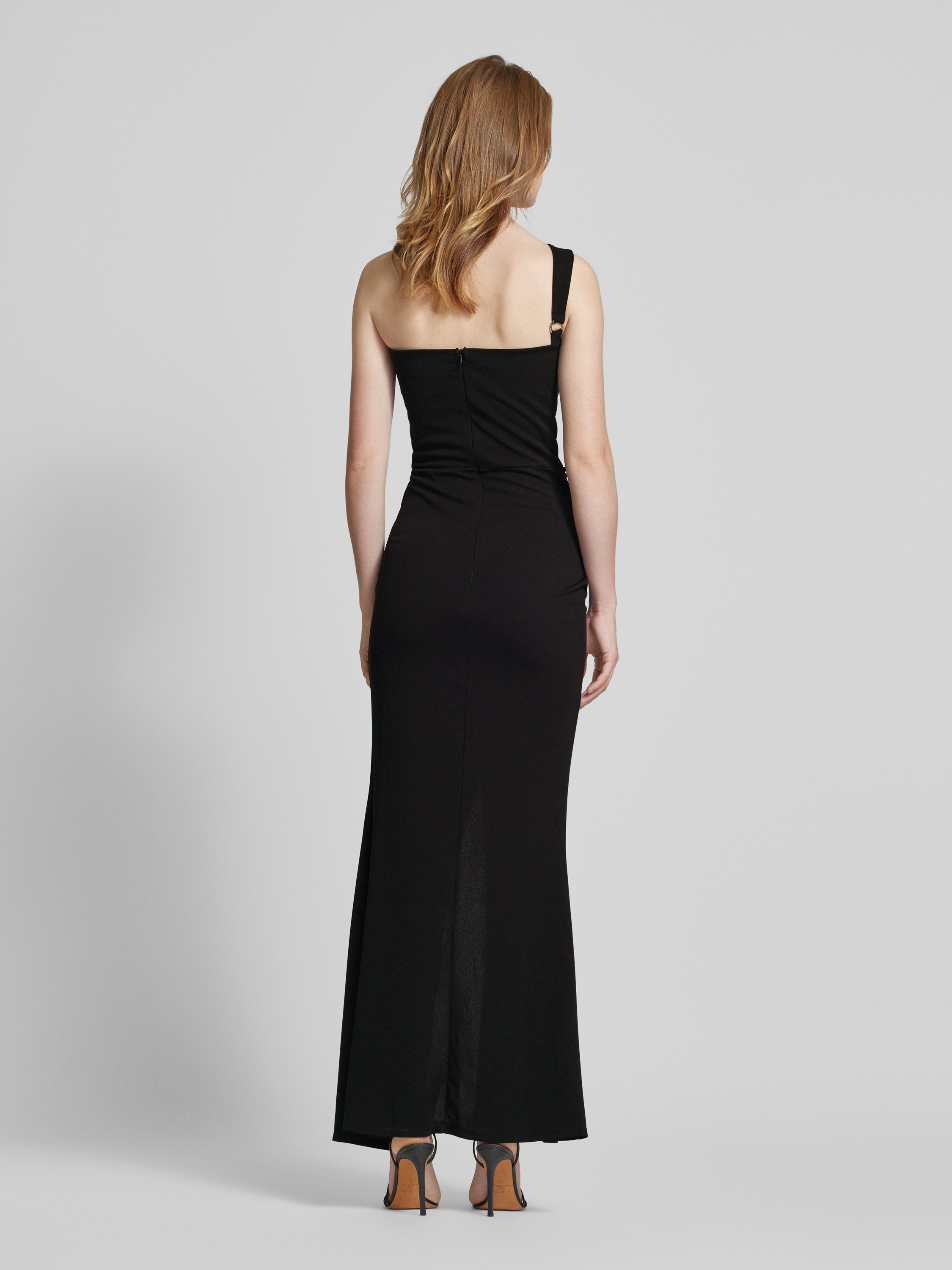 Avondjurk met one shoulder-band, model 'Elaya' in zwart