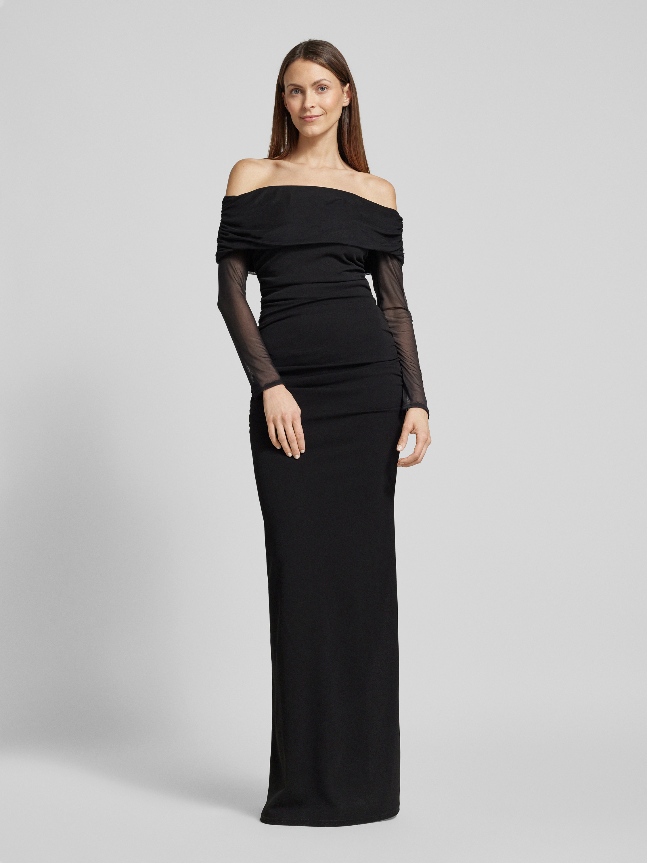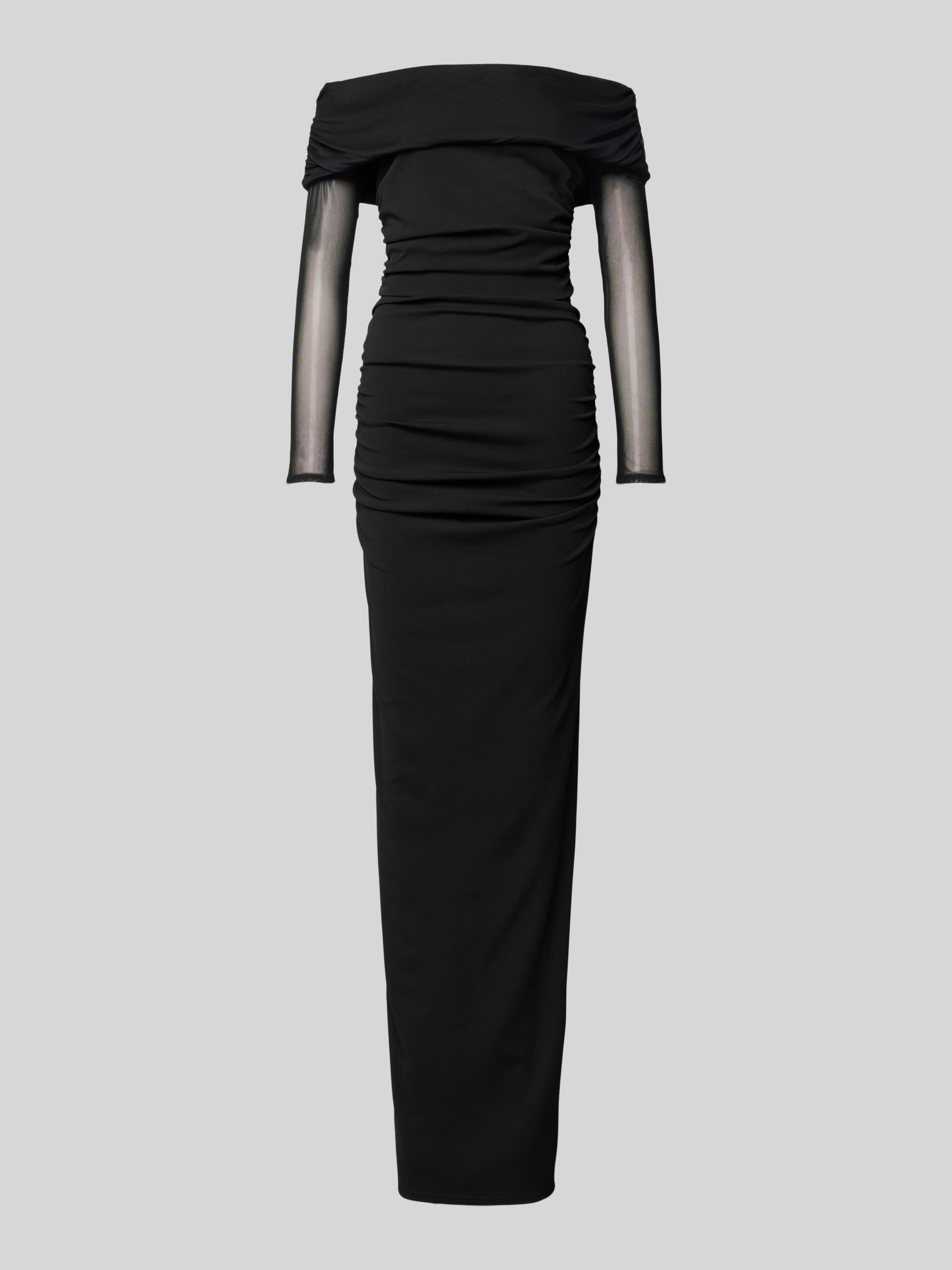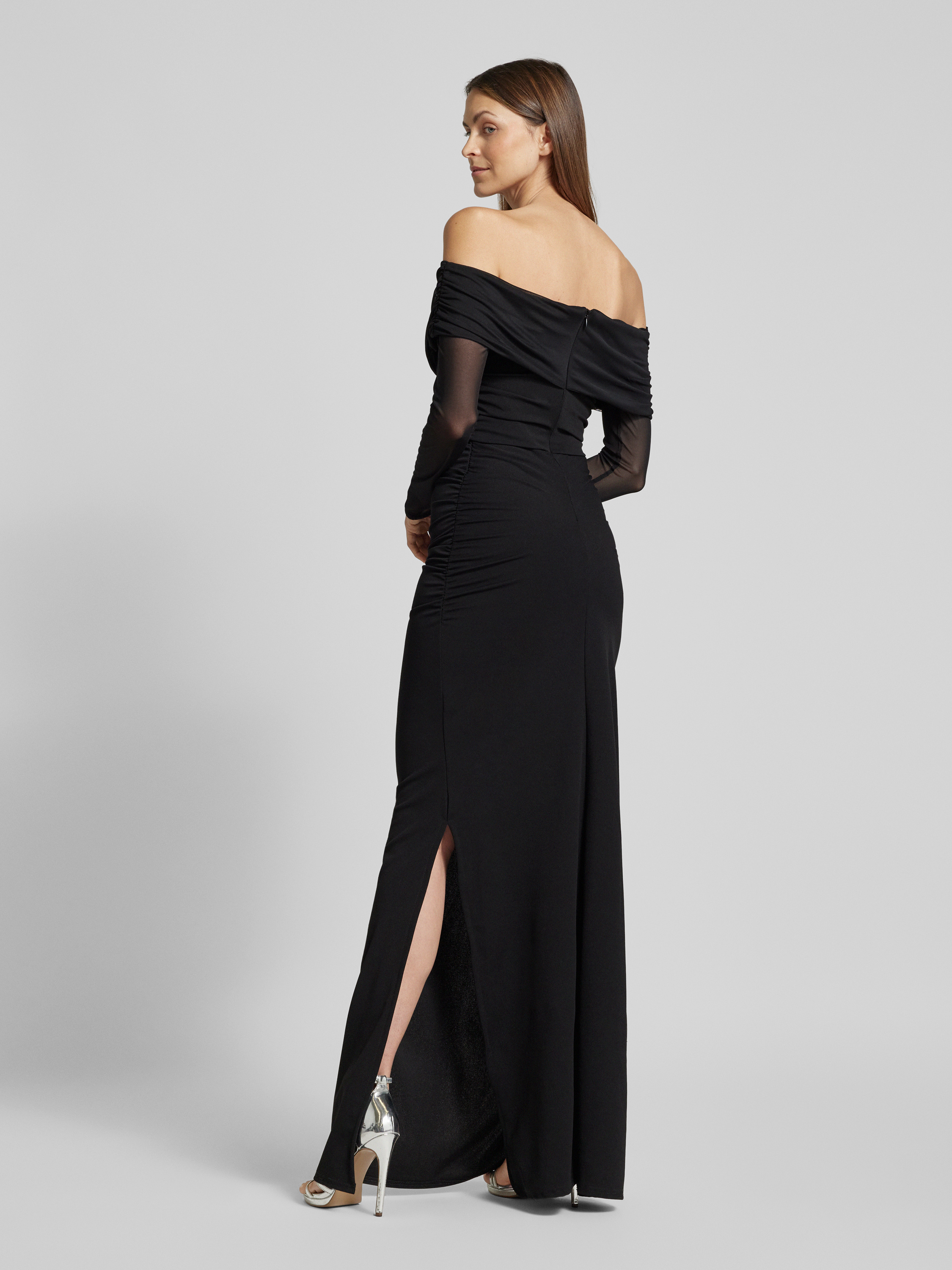 Avondjurk met plooien opzij, model 'Norah' in zwart