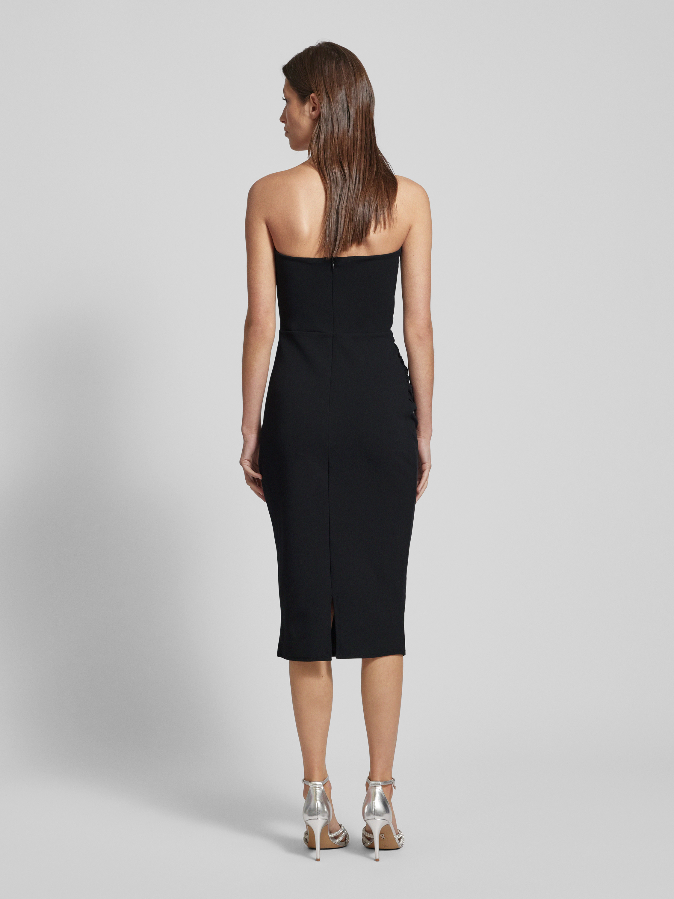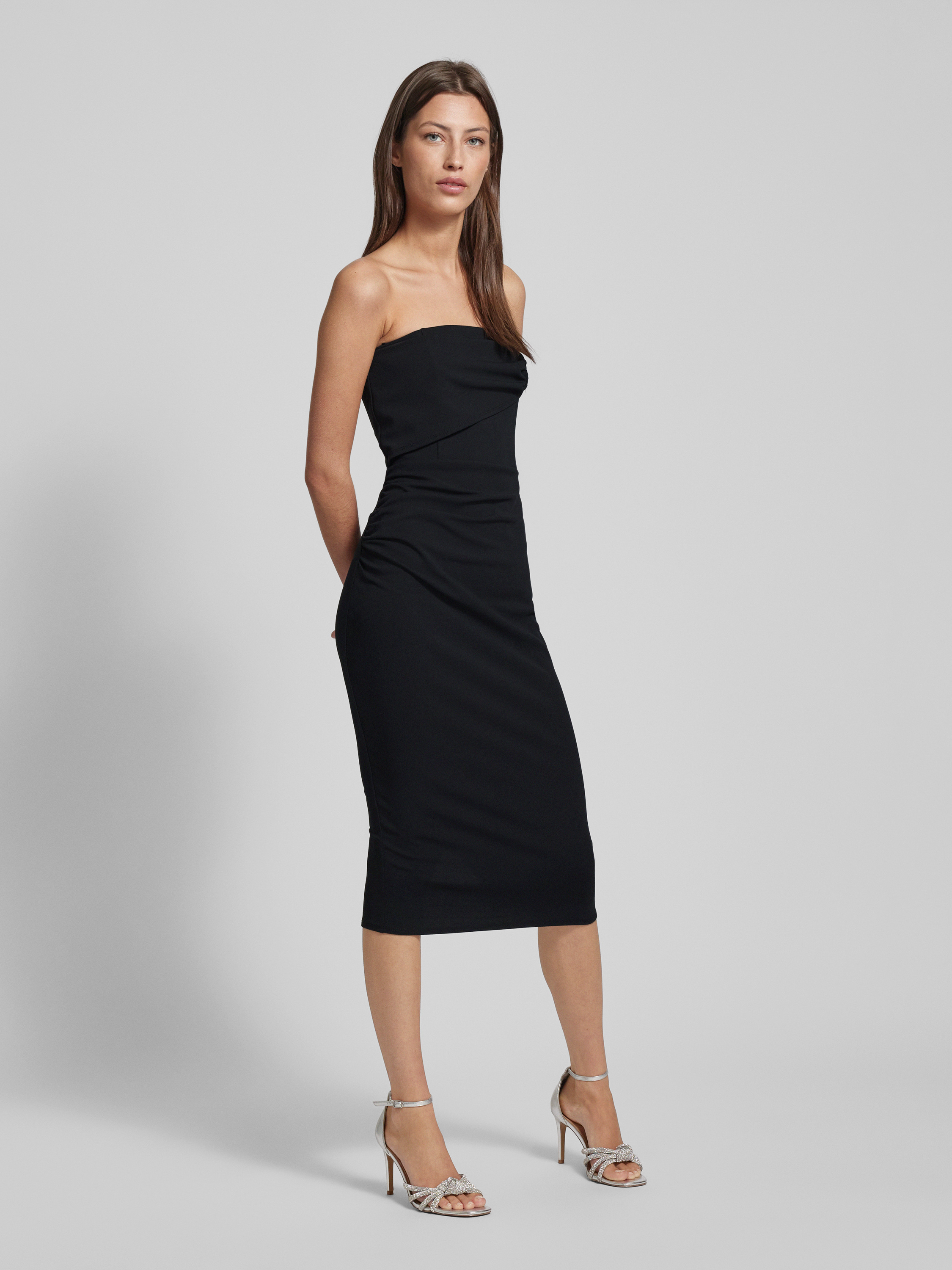 Knielange cocktailjurk in design zonder bandjes in zwart