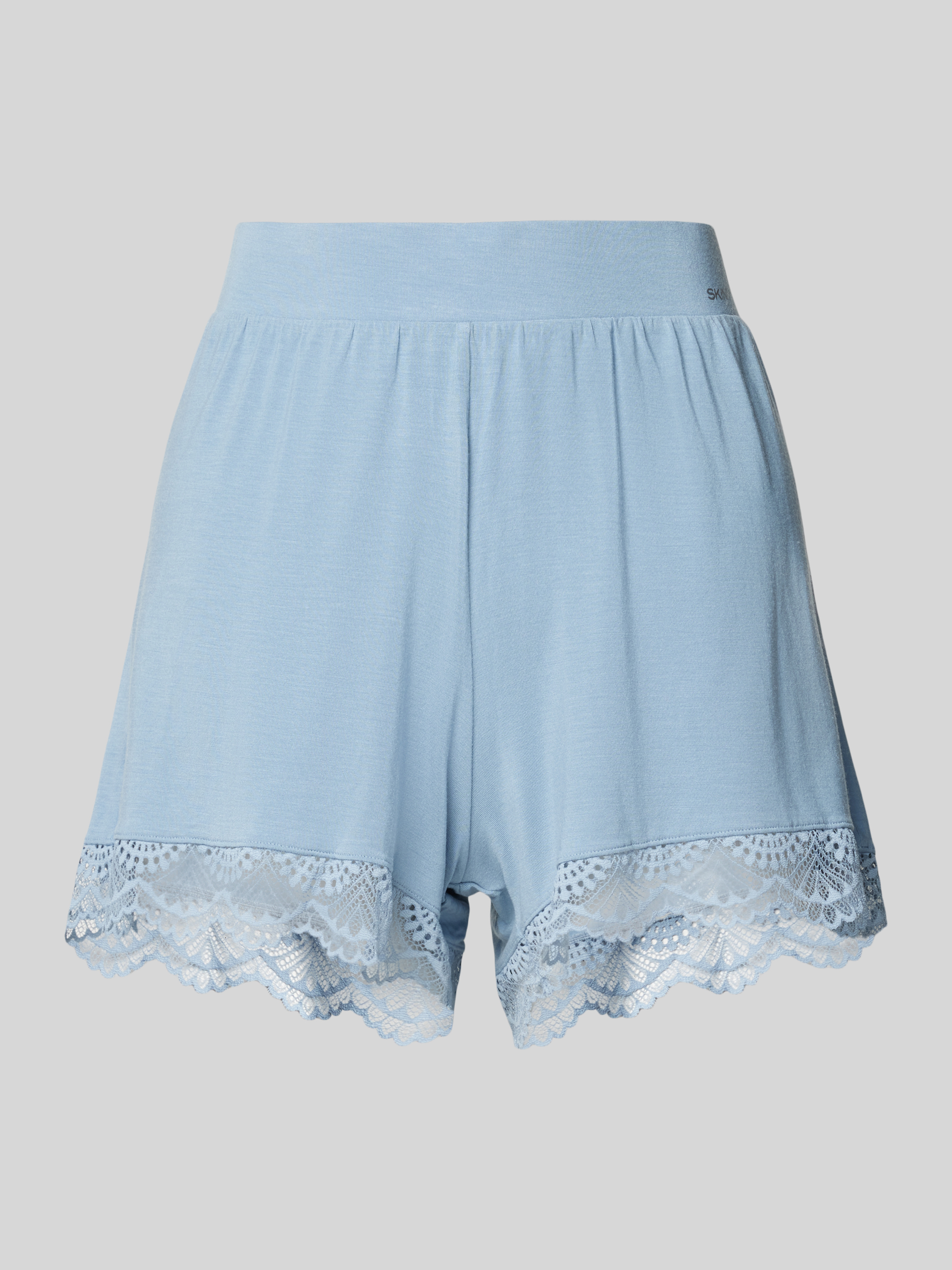 Korte pyjamabroek met kantgarnering in lichtblauw