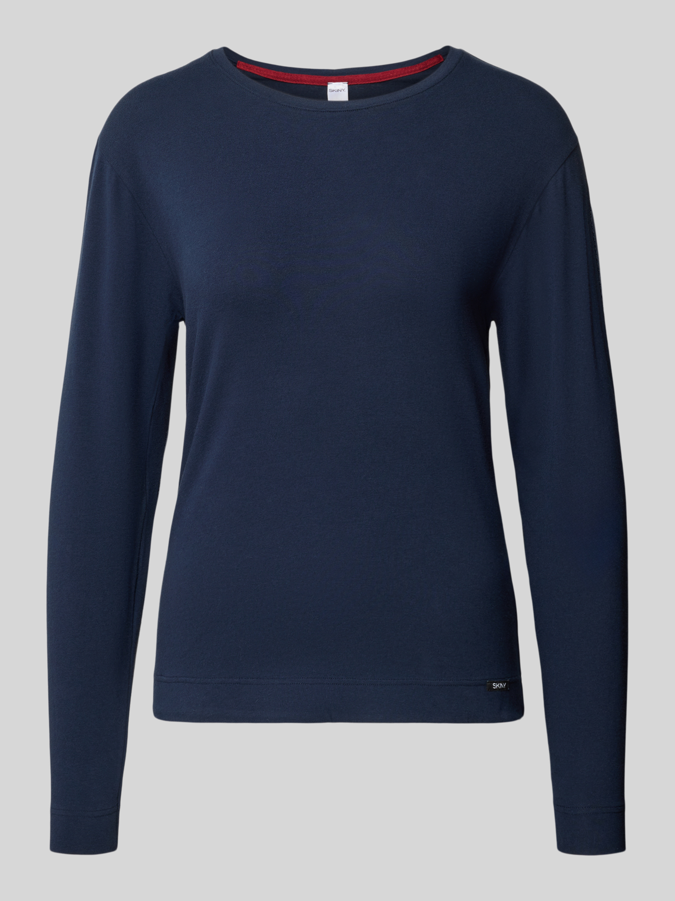 Shirt met lange mouwen en geribde ronde hals in donkerblauw