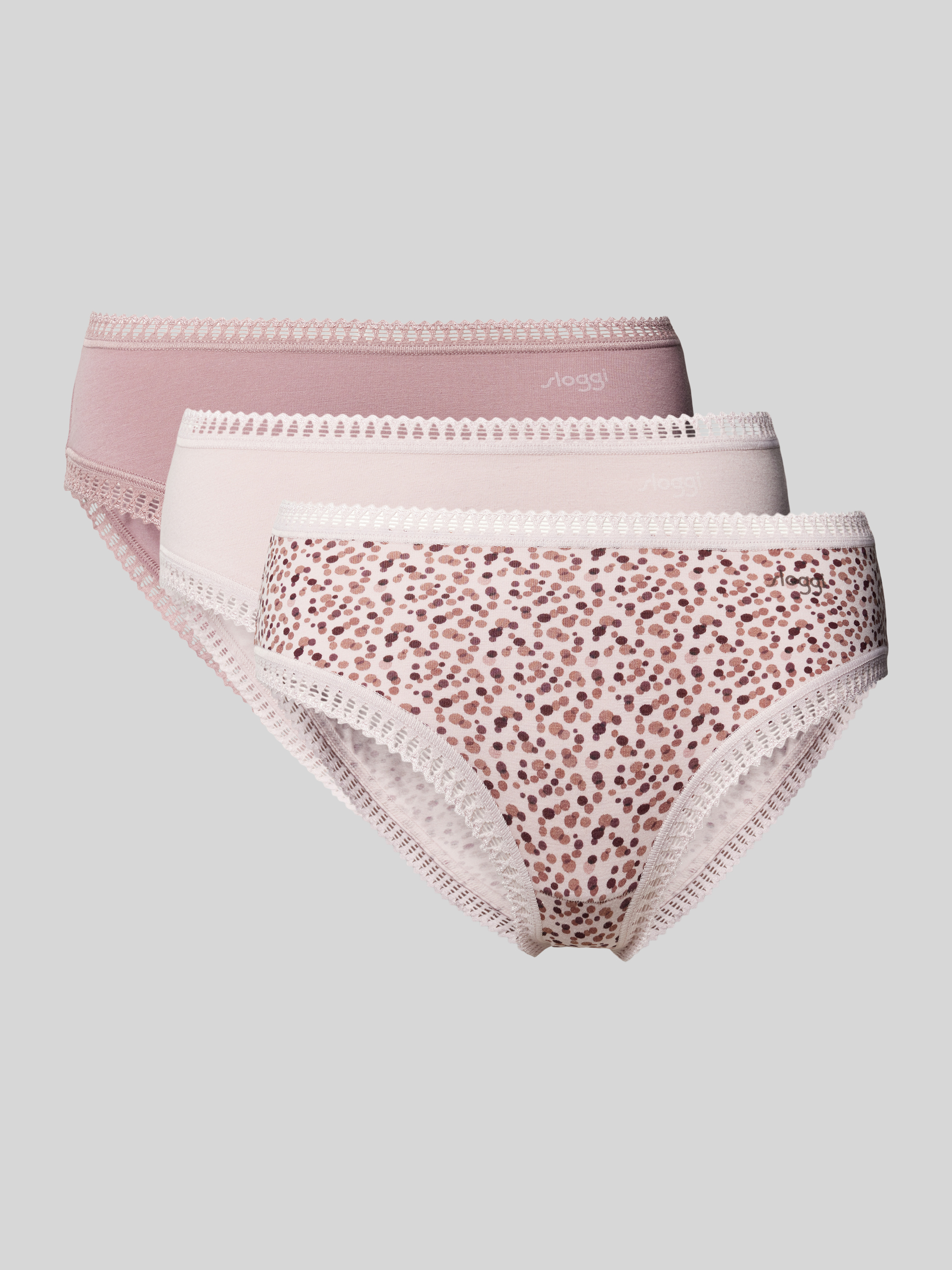 Slip met kant in een set van 3 stuks, model 'GO' in mauve