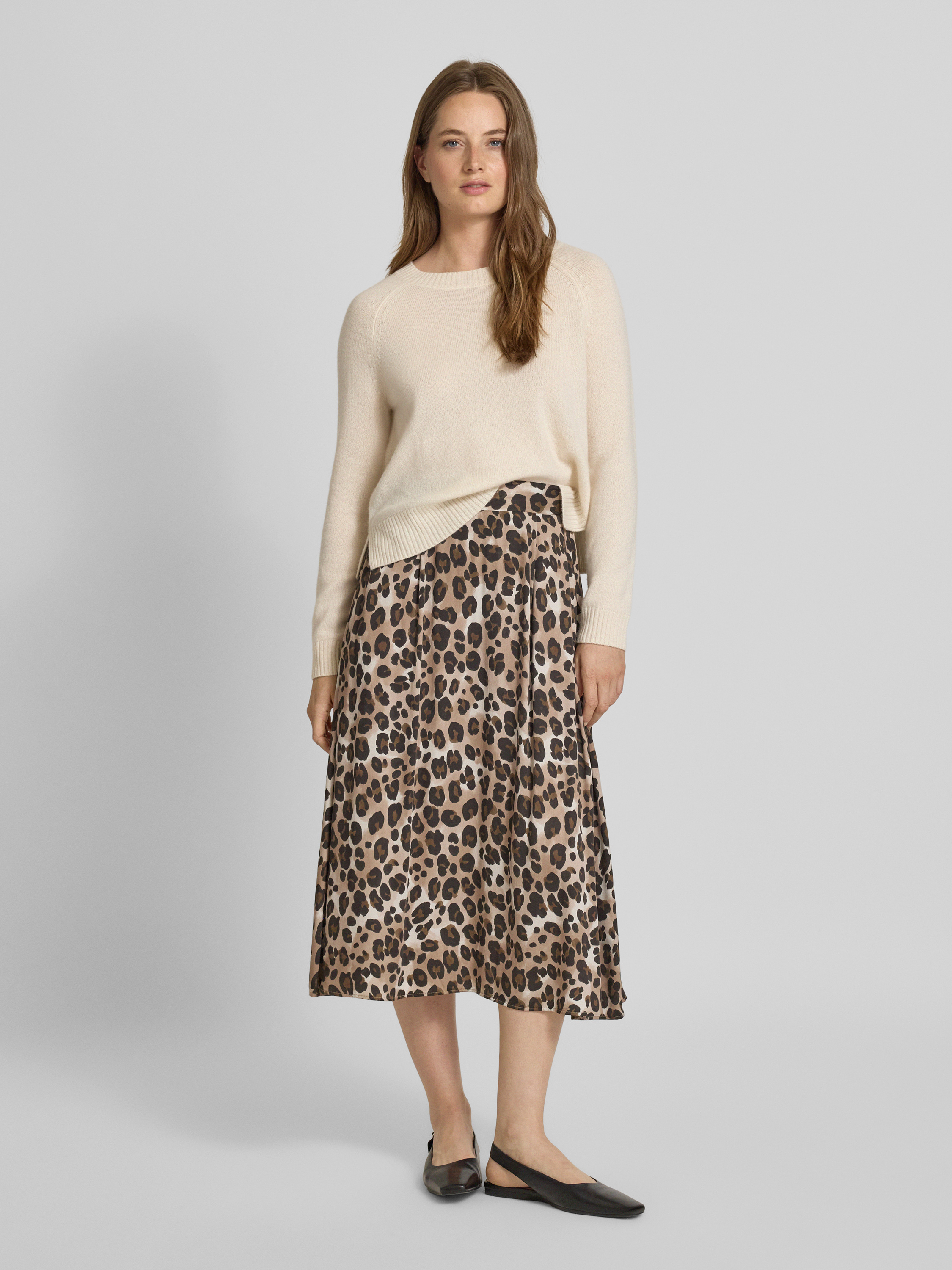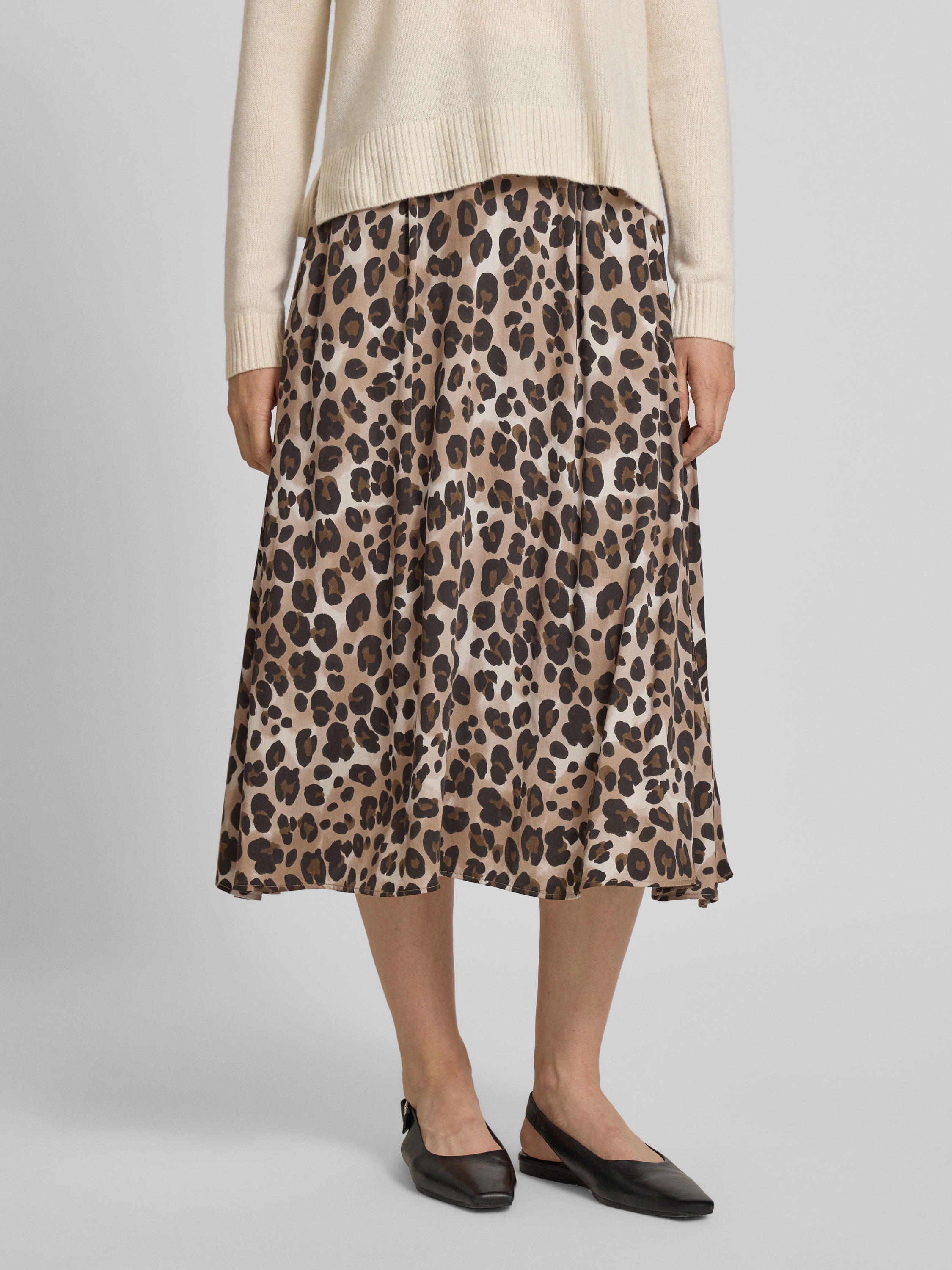 Midi-rok met plooien in beige