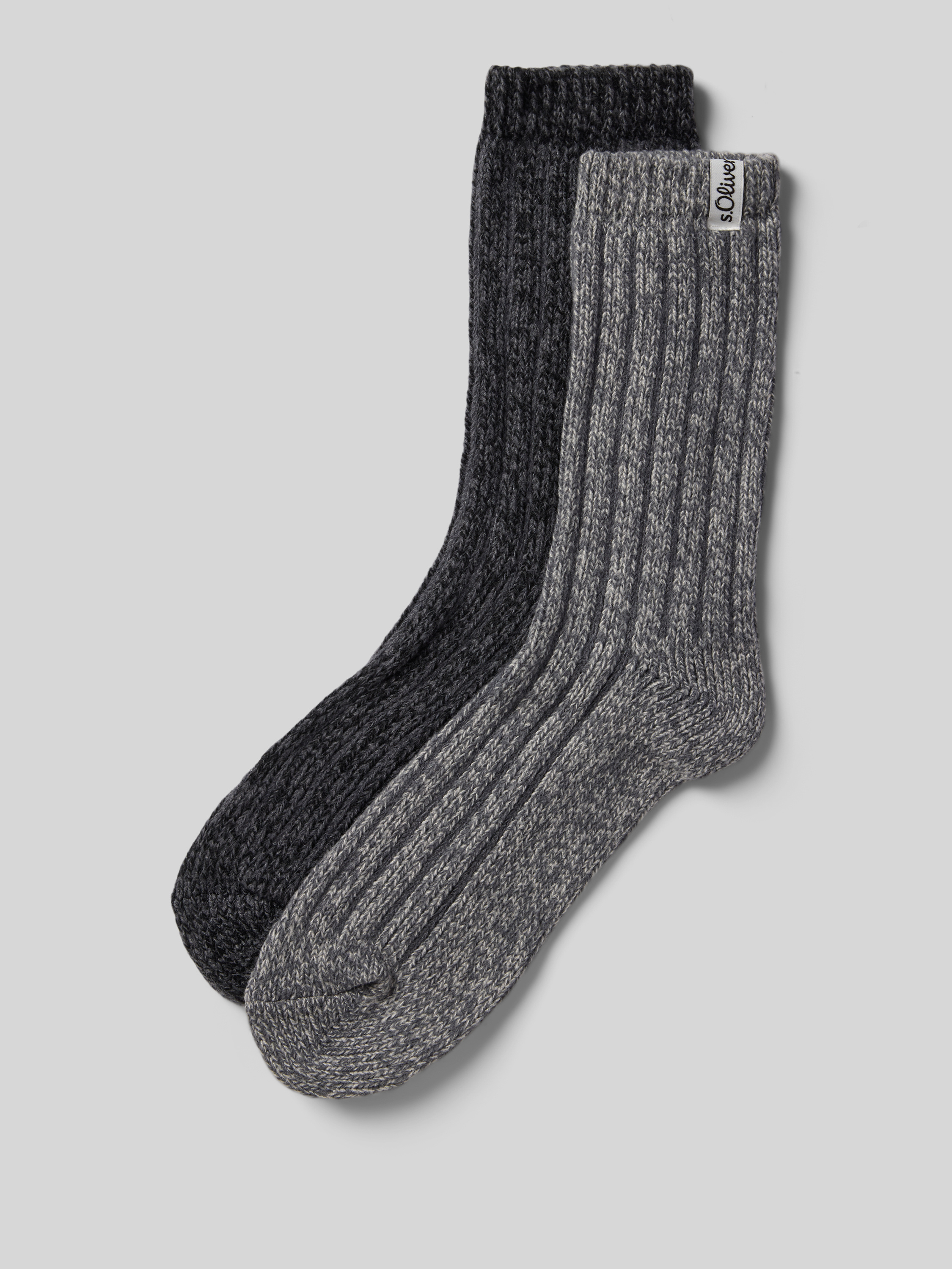 Gebreide sokken met ribboordjes in een set van 2 paar in donkergrijs