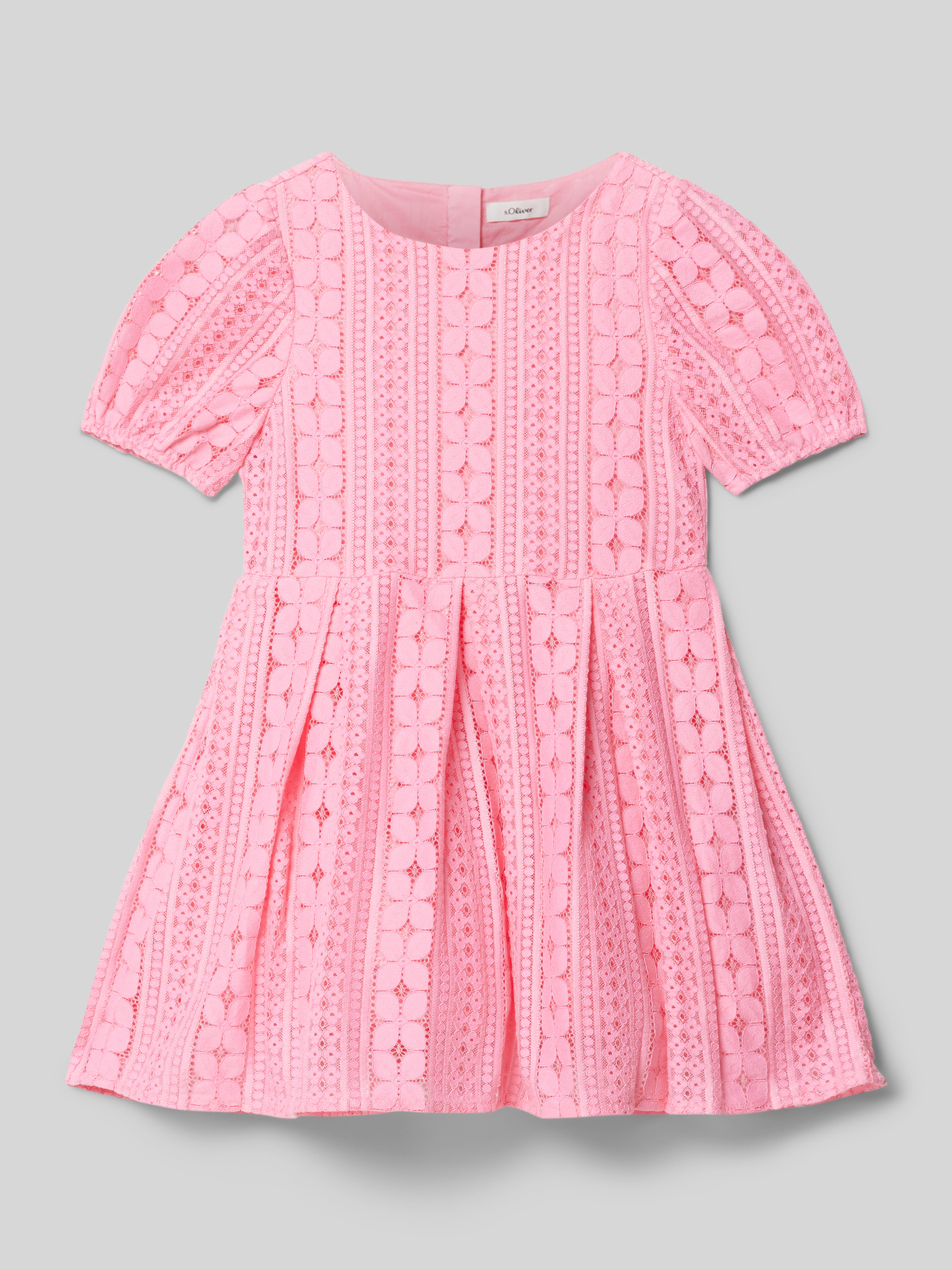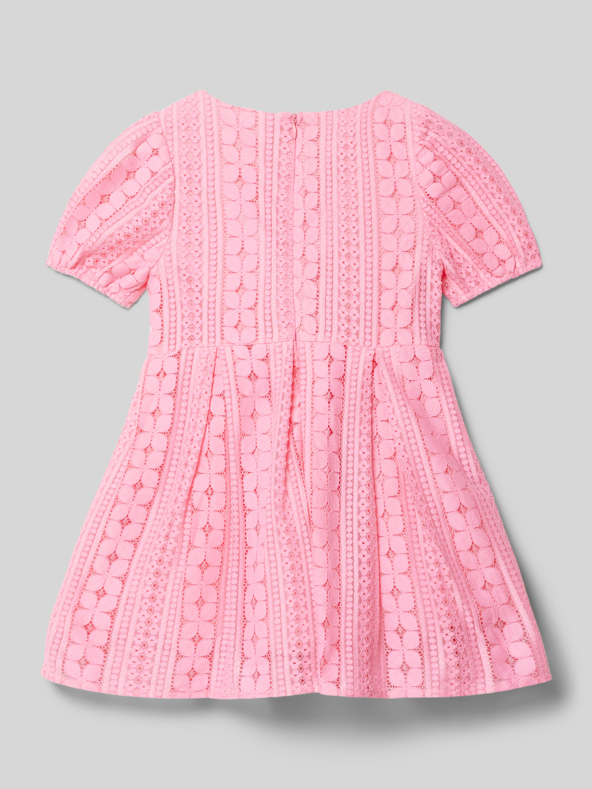 Korte kanten jurk met elastische boordjes aan de mouwen in felroze