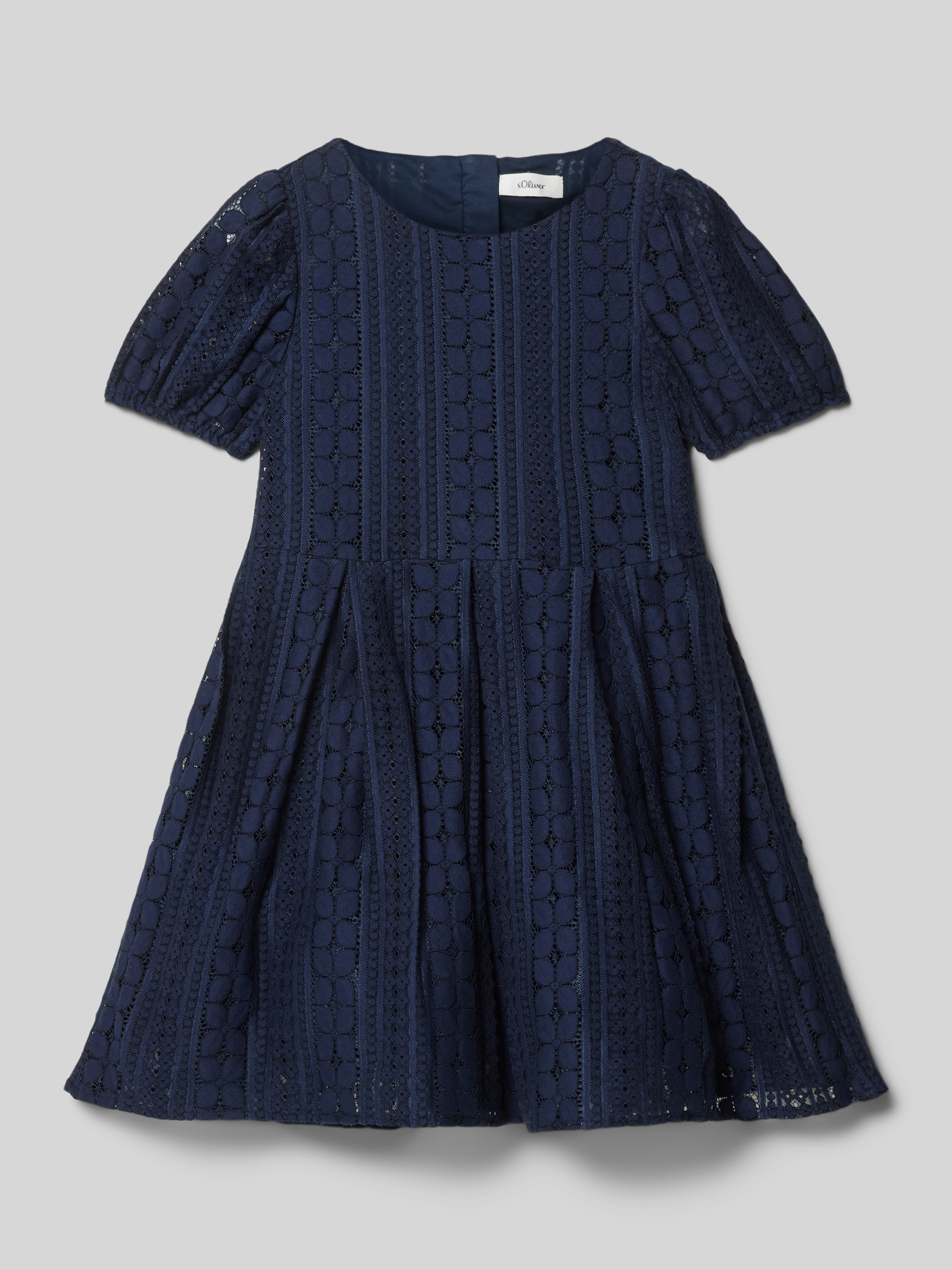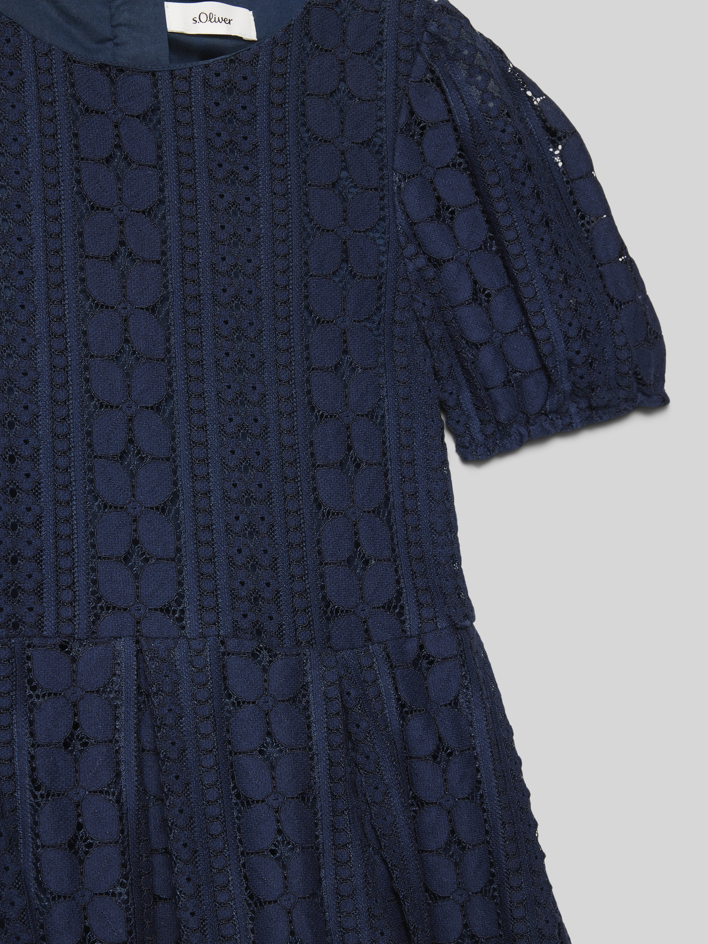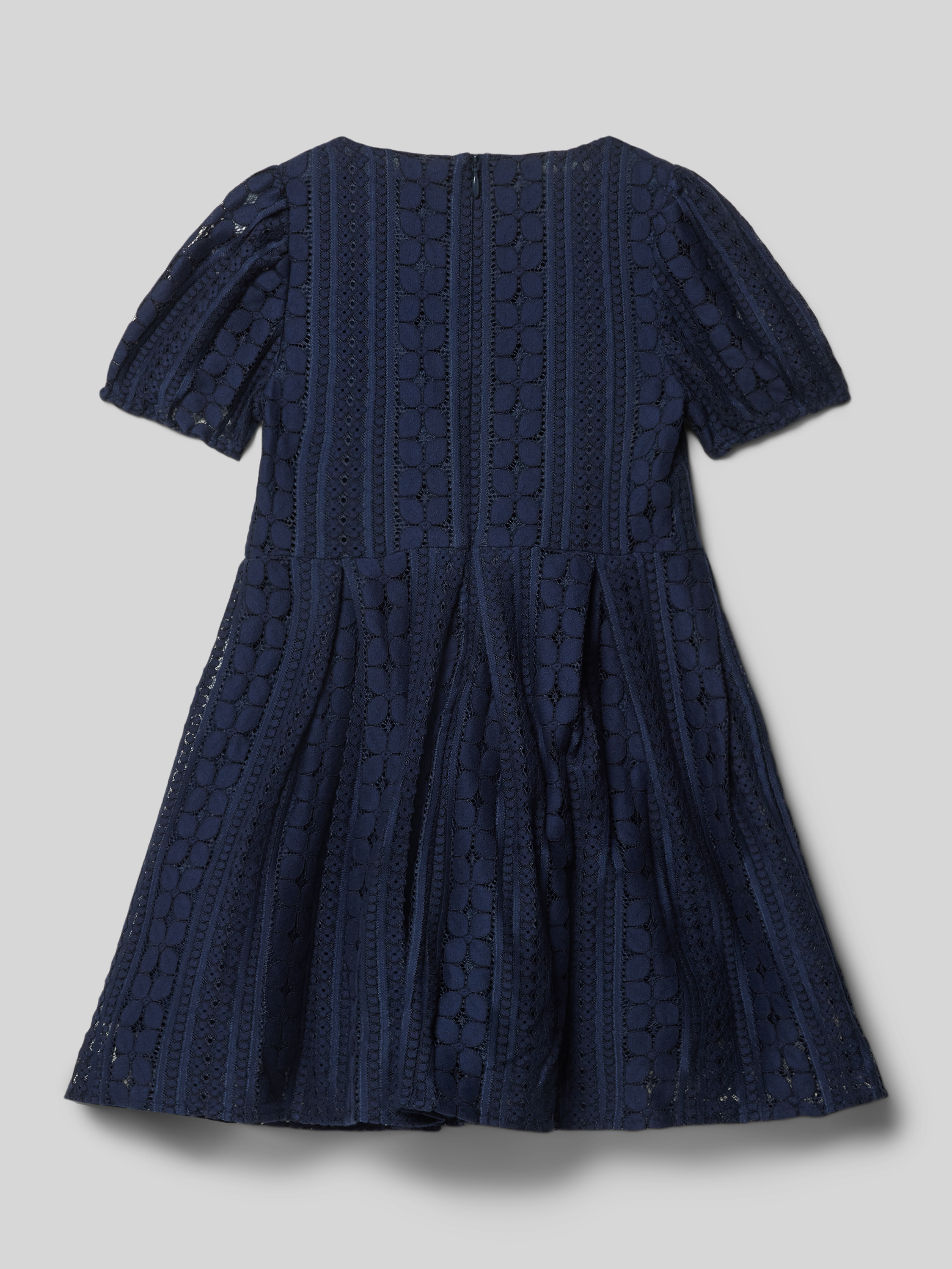 Korte kanten jurk met elastische boordjes aan de mouwen in marineblauw
