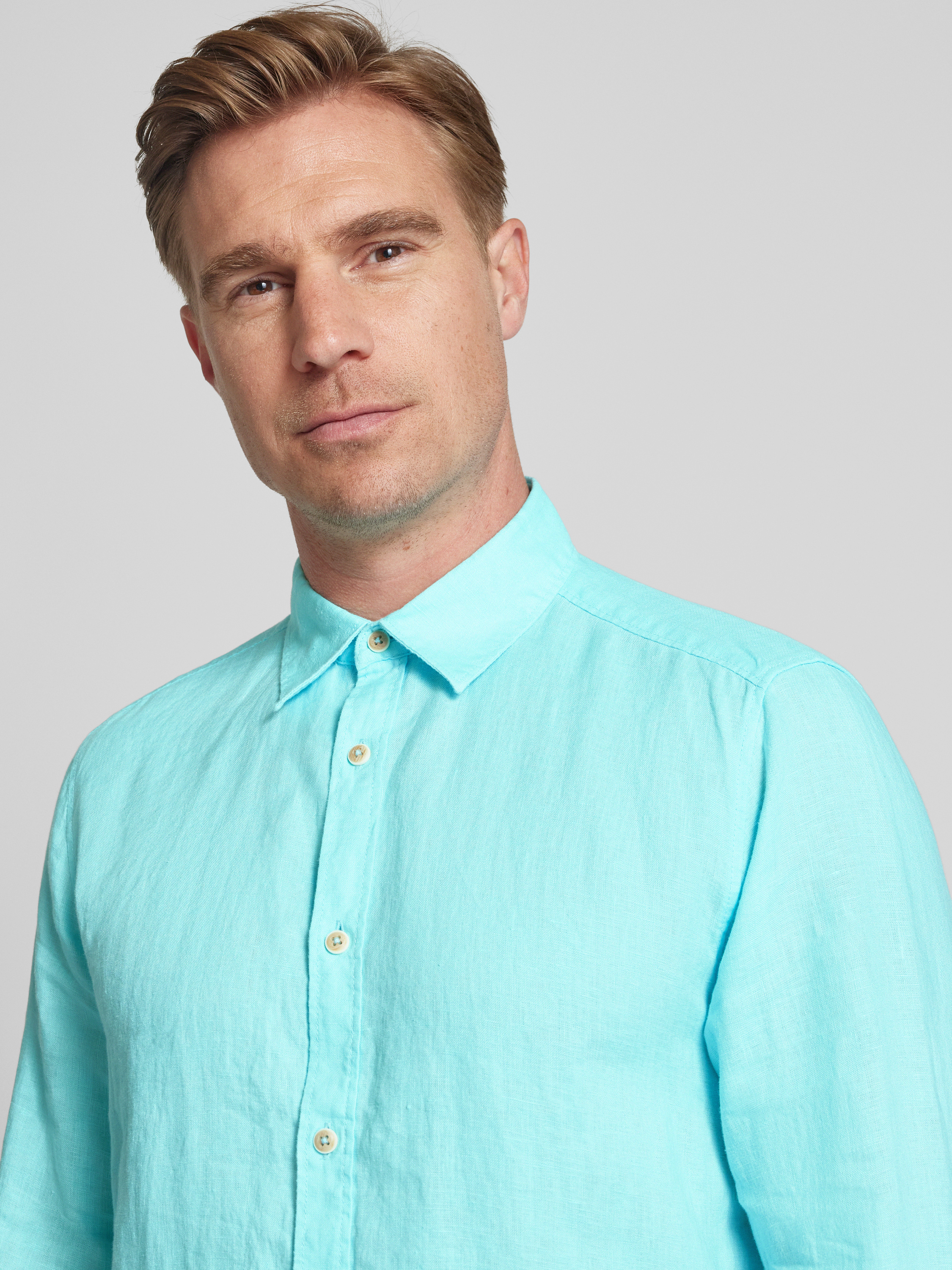 Regular fit linnen overhemd met sportmanchetten in blauw